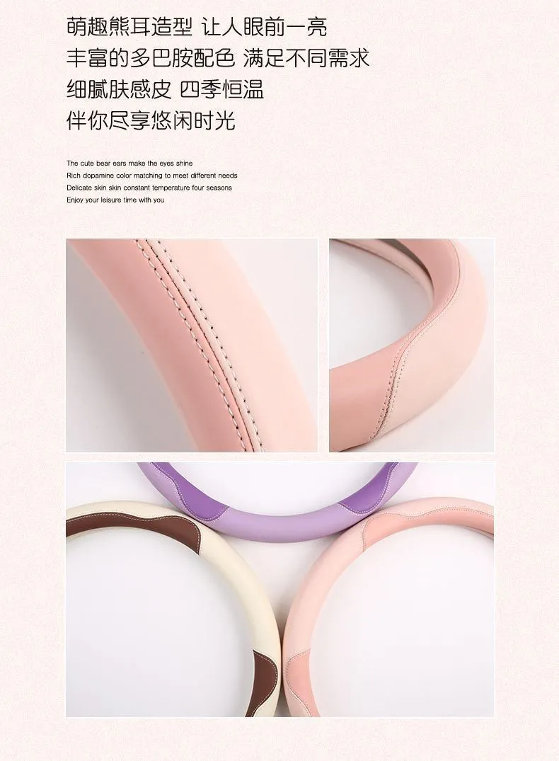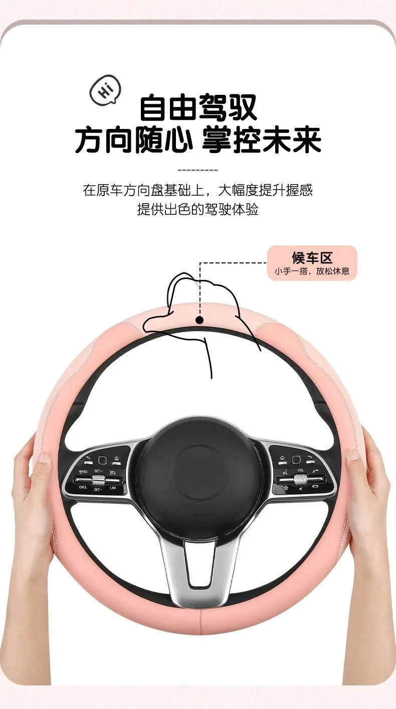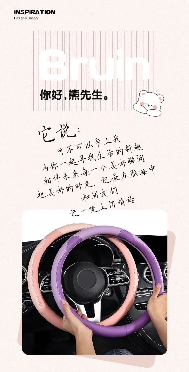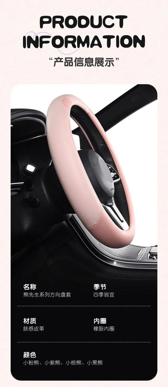 五菱缤果方向盘套可爱小熊皮革把套四季防滑耐磨