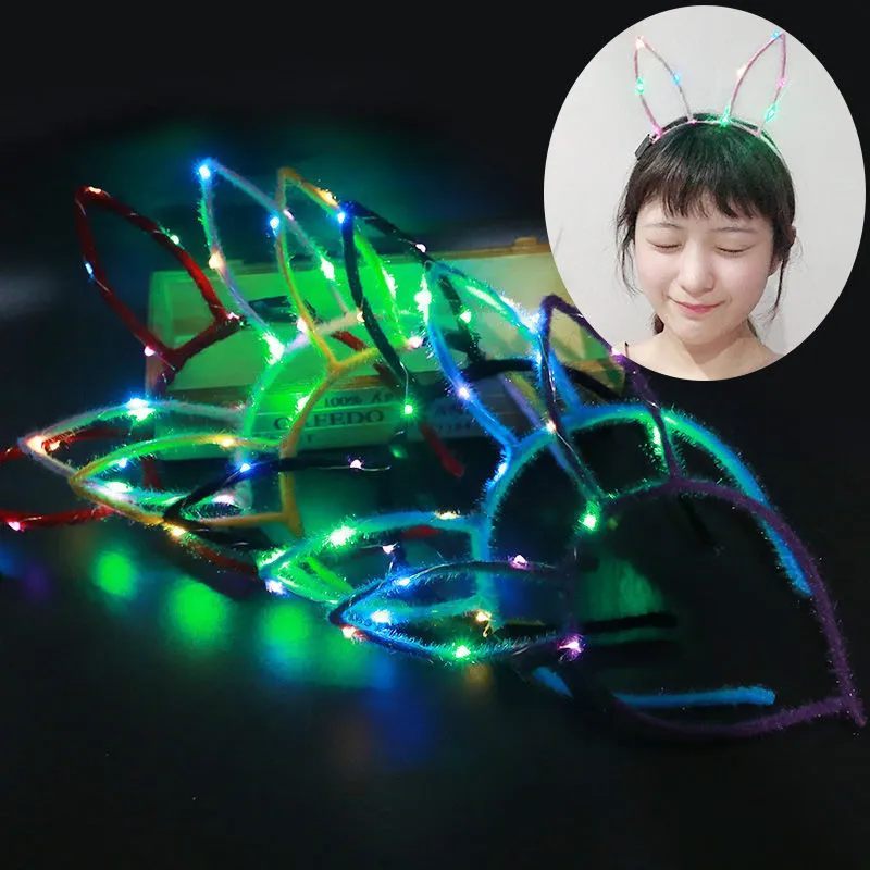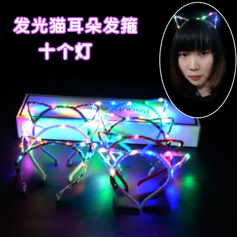 发光猫耳朵发箍网红款夜光头饰七彩闪光米奇发箍地推玩具货源批发