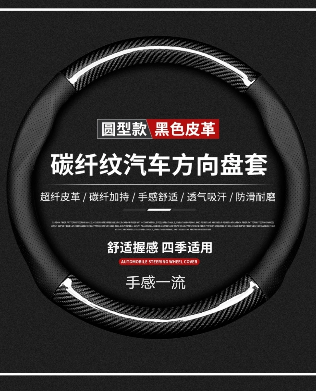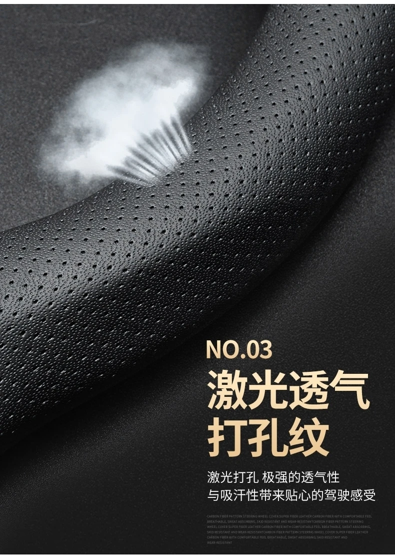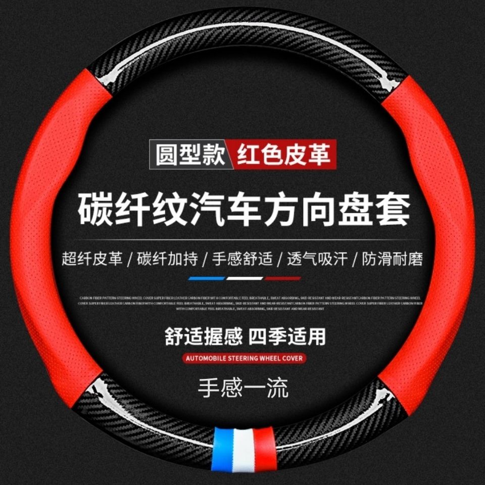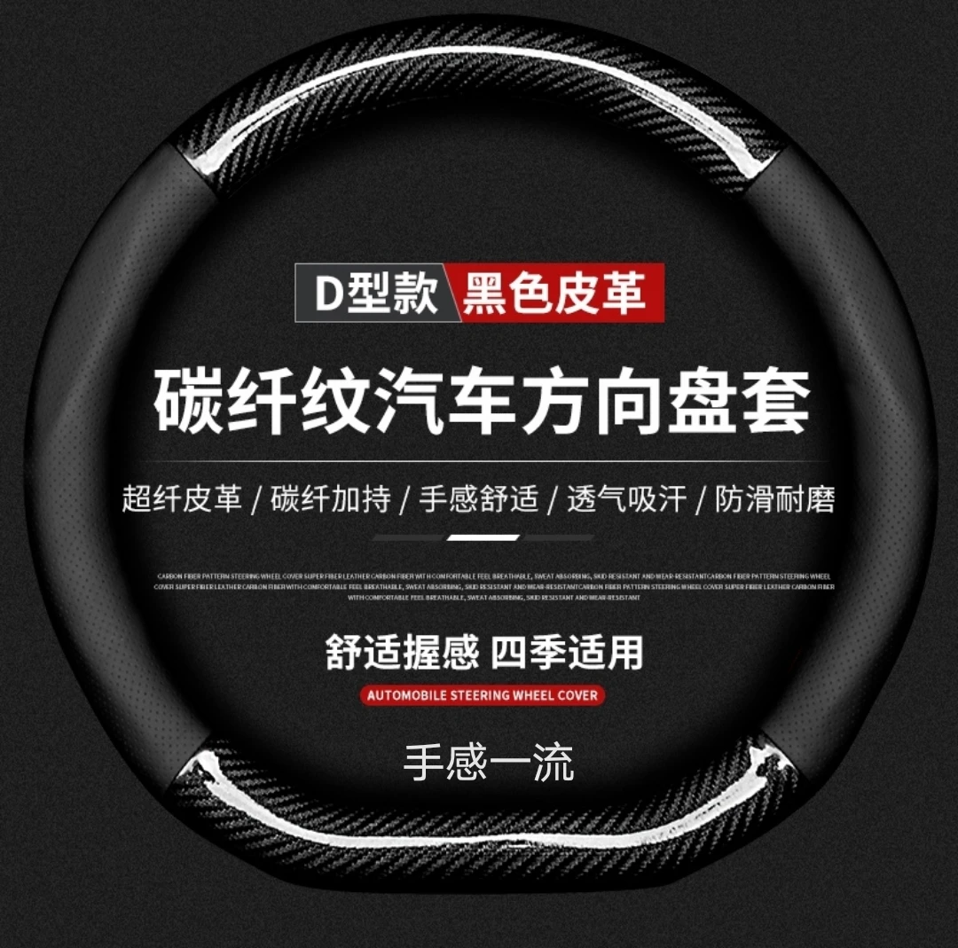 【碳纤打孔皮】汽车方向盘套四季通用防滑耐磨吸汗碳纤真皮把套【