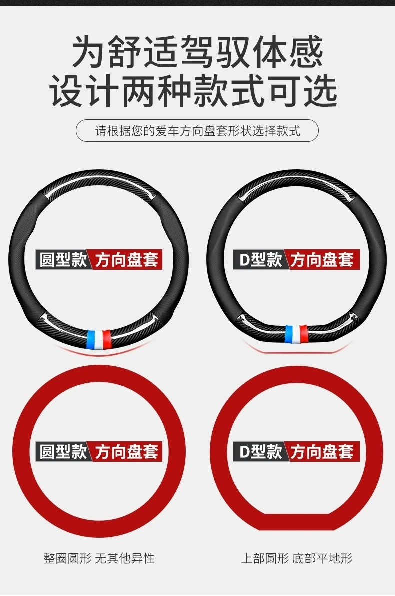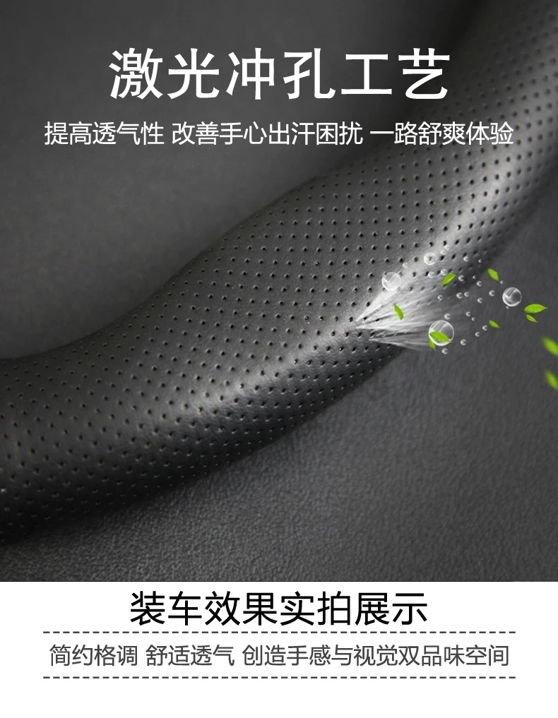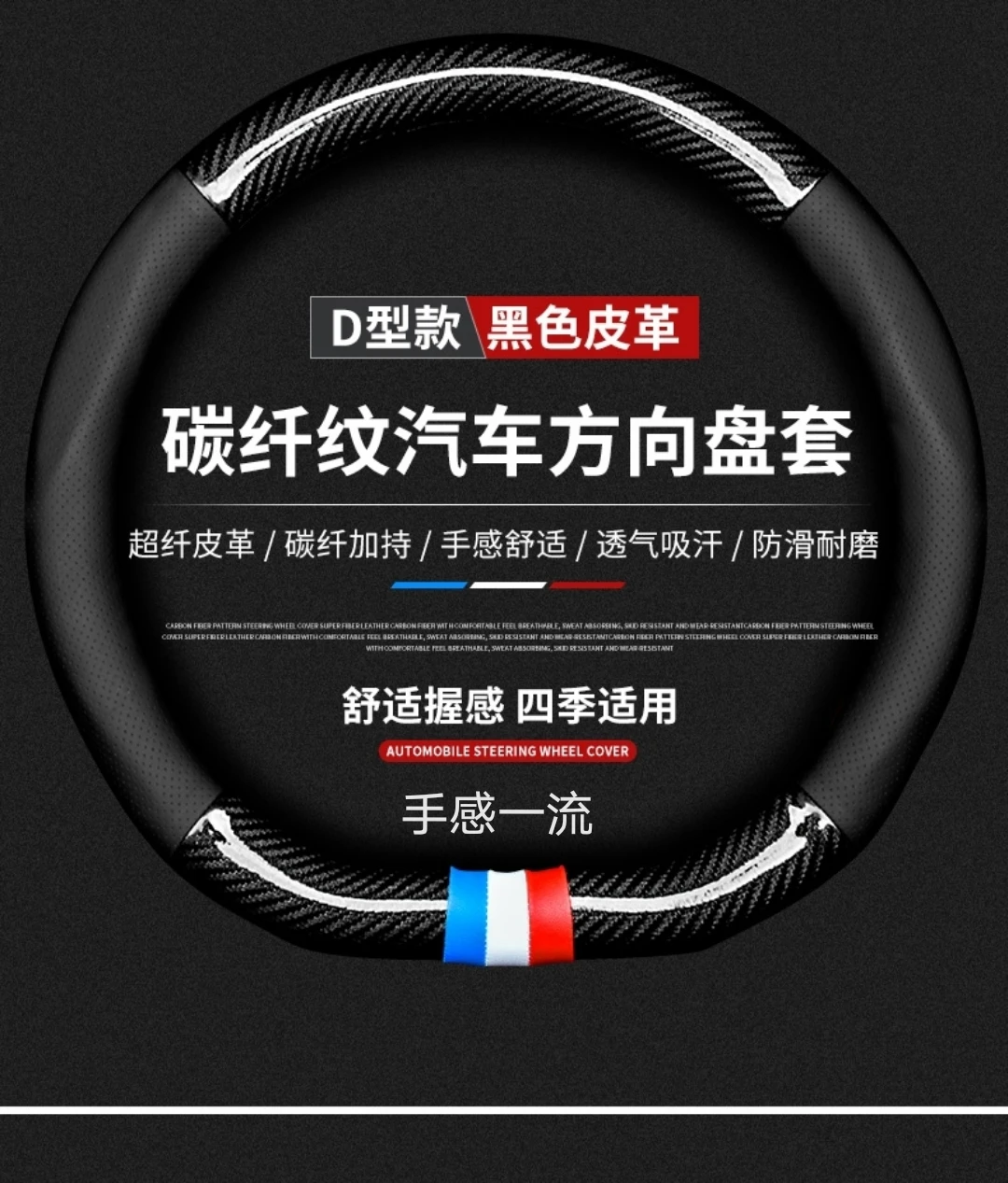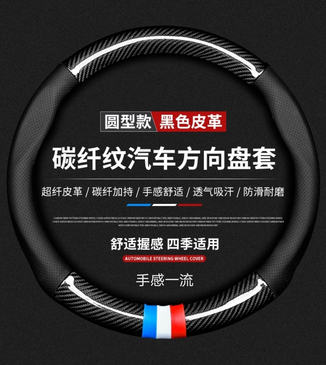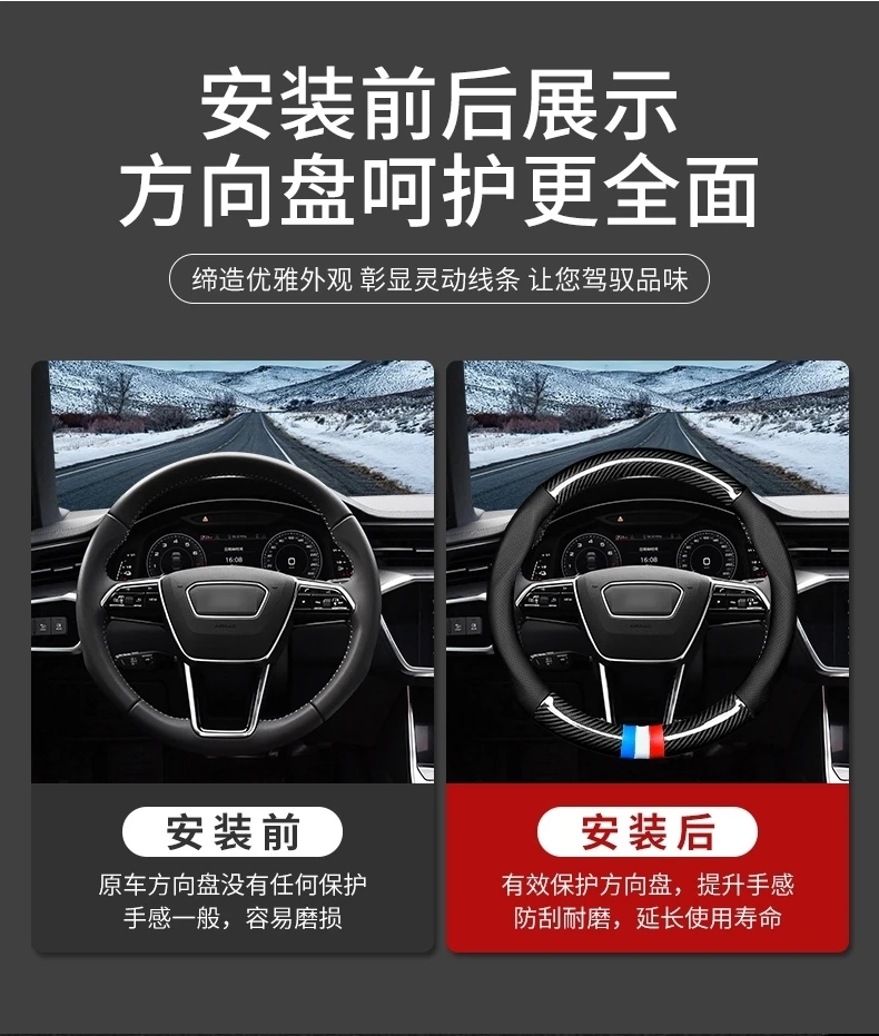 【碳纤打孔皮】汽车方向盘套四季通用防滑耐磨吸汗碳纤真皮把套【