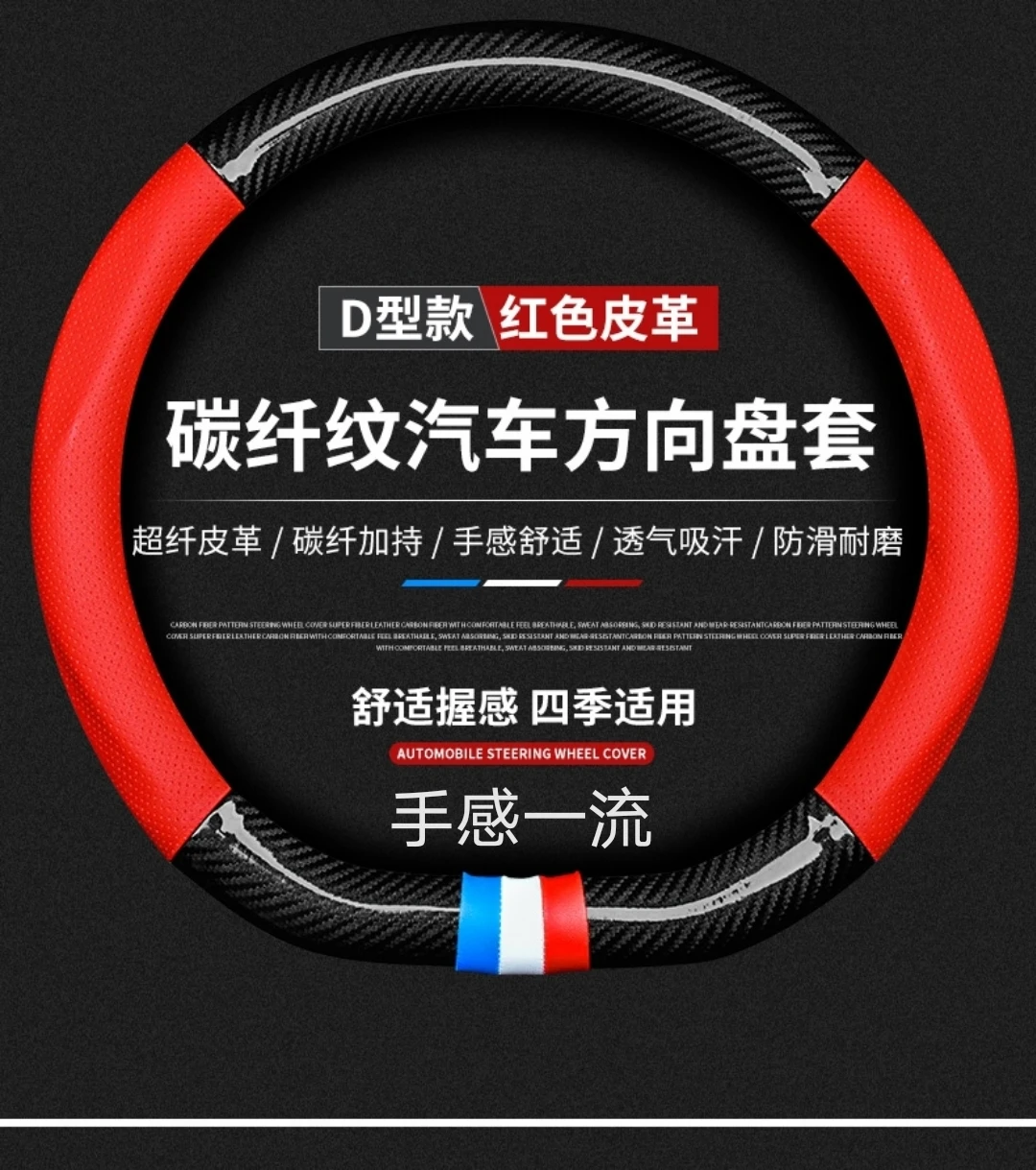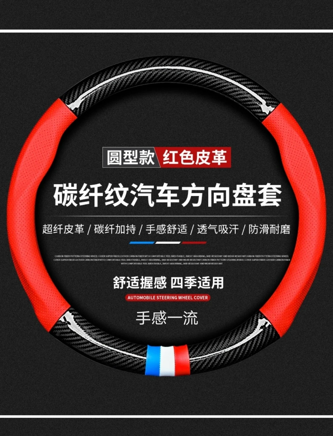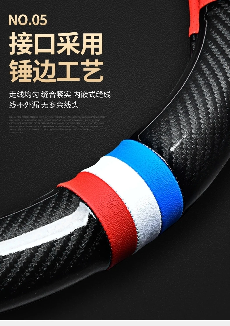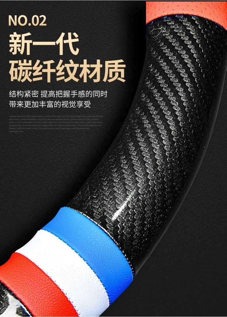 【碳纤打孔皮】汽车方向盘套四季通用防滑耐磨吸汗碳纤真皮把套【
