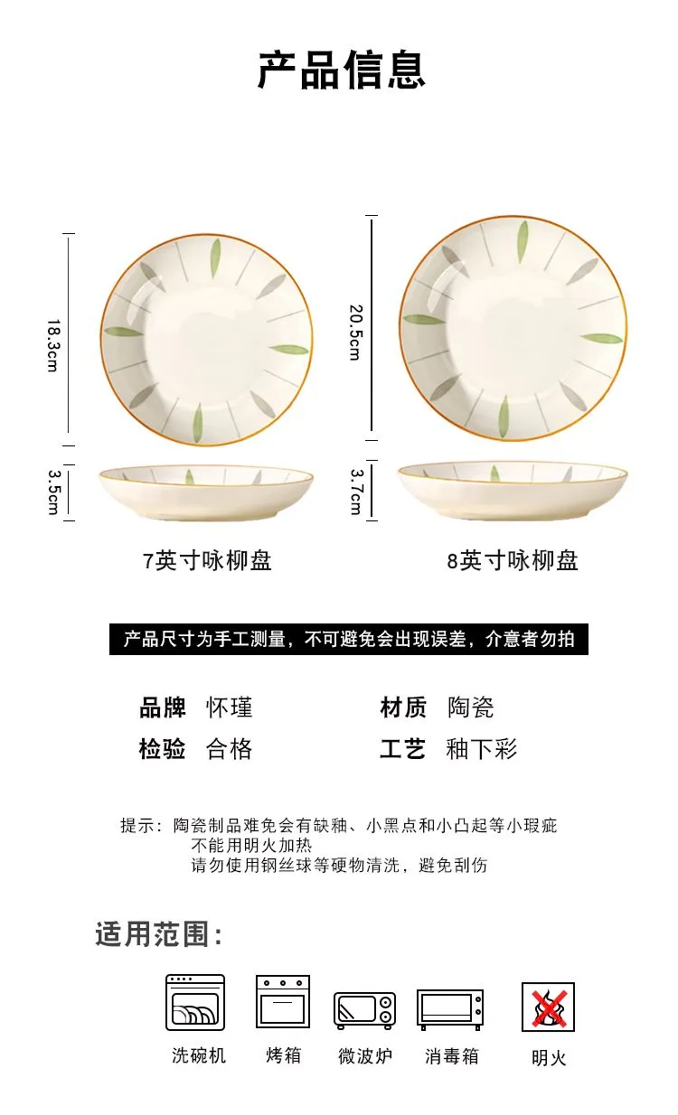 | 7-inch wing willow plate 4(7英寸咏柳盘4个) | USD $3.31 | 999999 piece available |