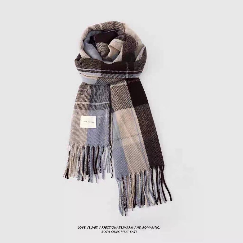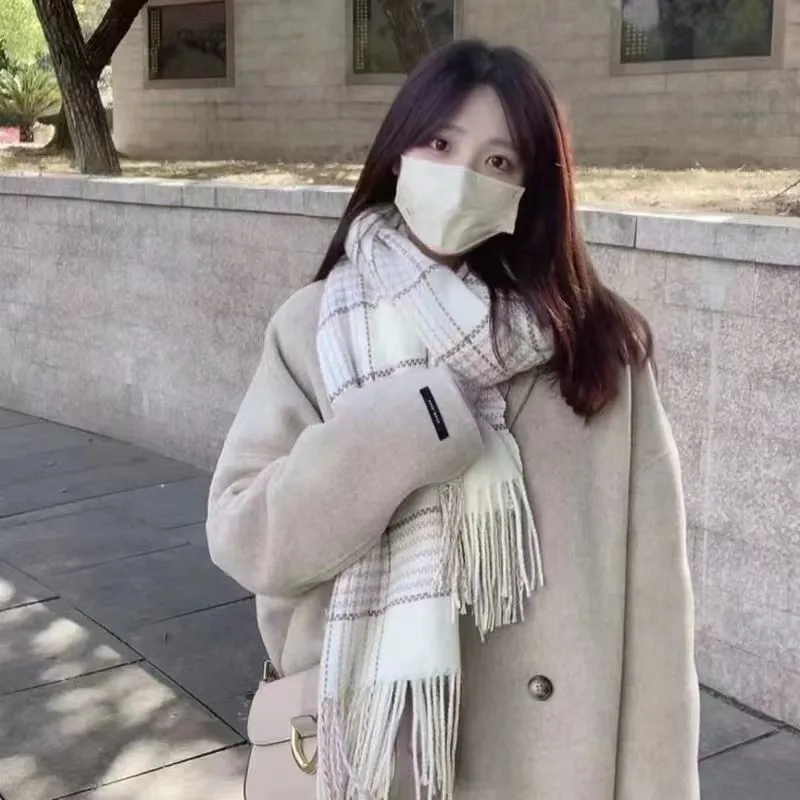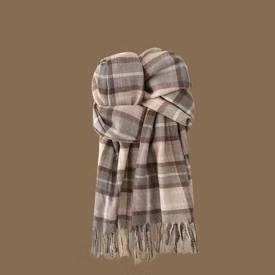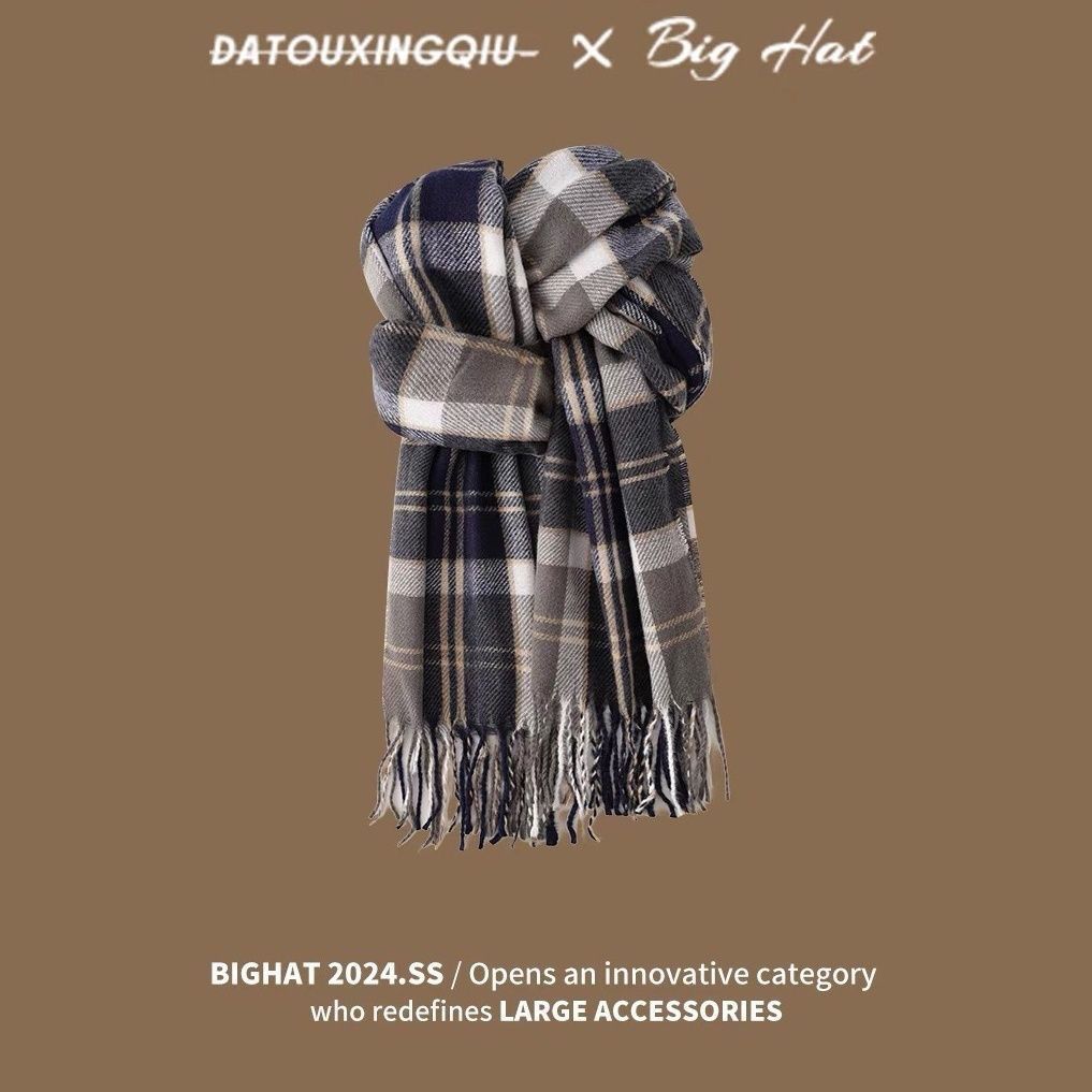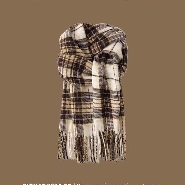 2024格子围巾女冬季韩系新款美拉德日系百搭学生披肩情侣保暖围脖