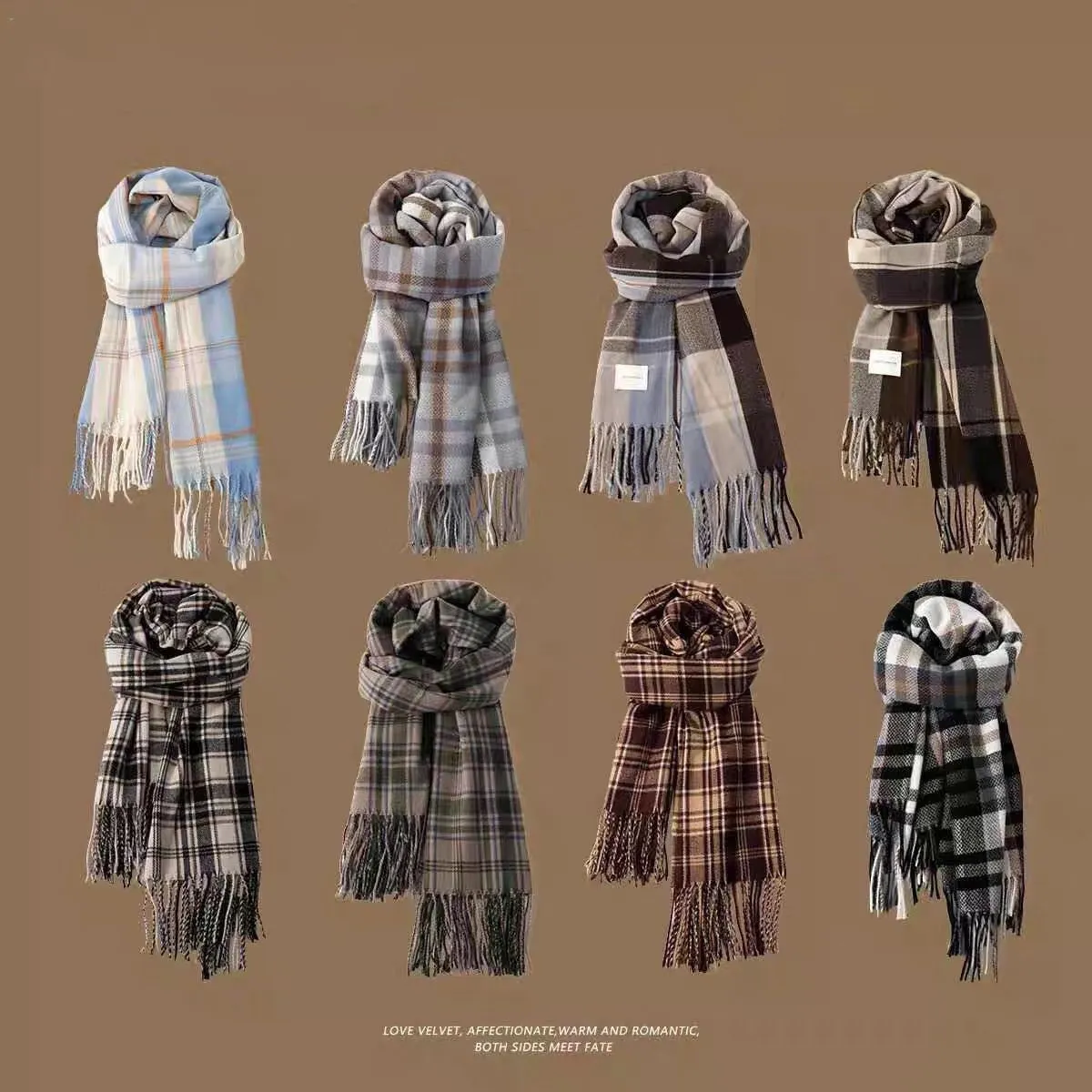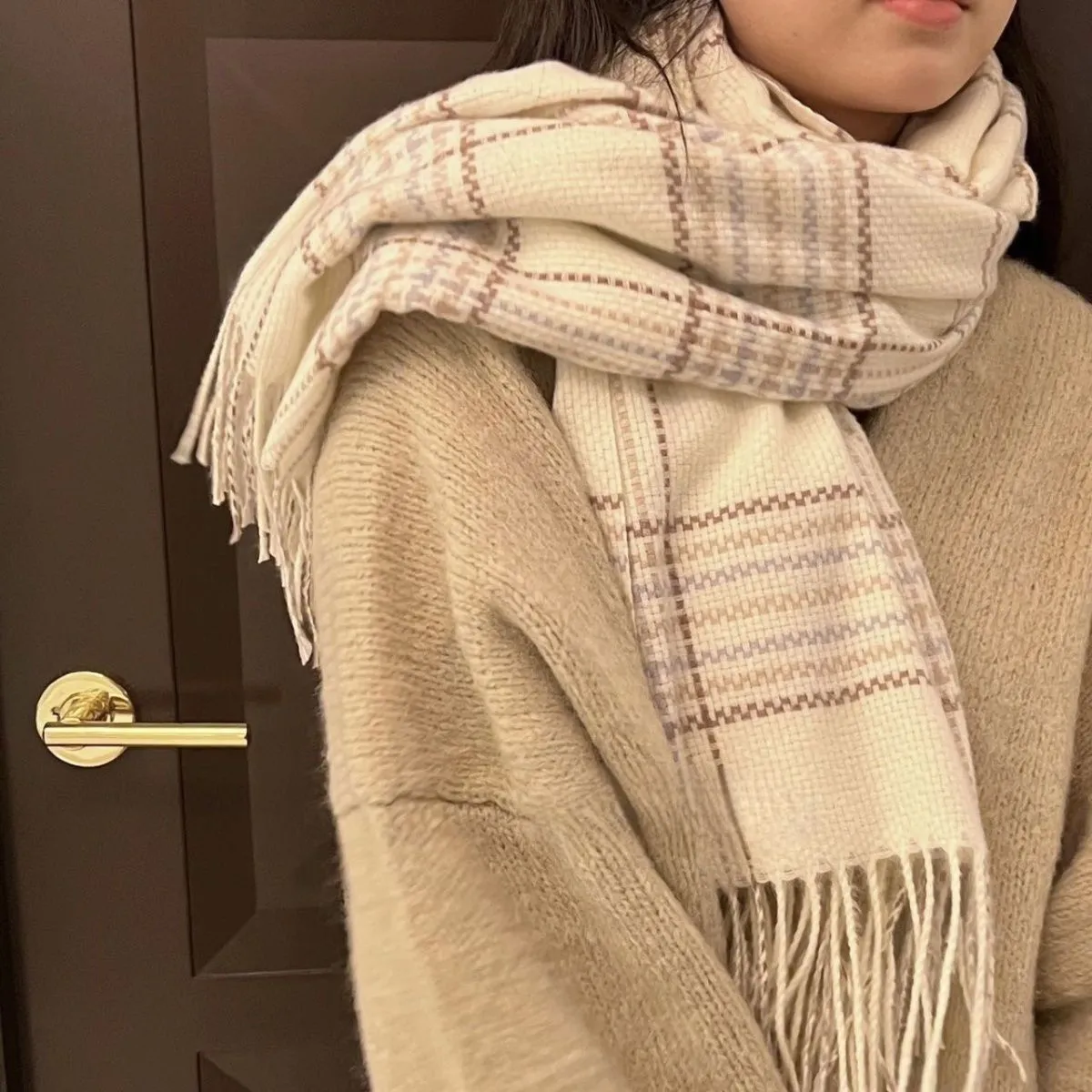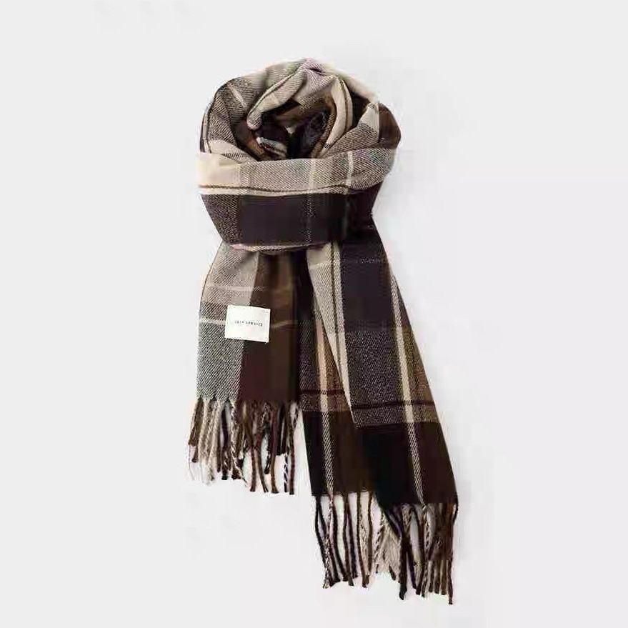 2024格子围巾女冬季韩系新款美拉德日系百搭学生披肩情侣保暖围脖