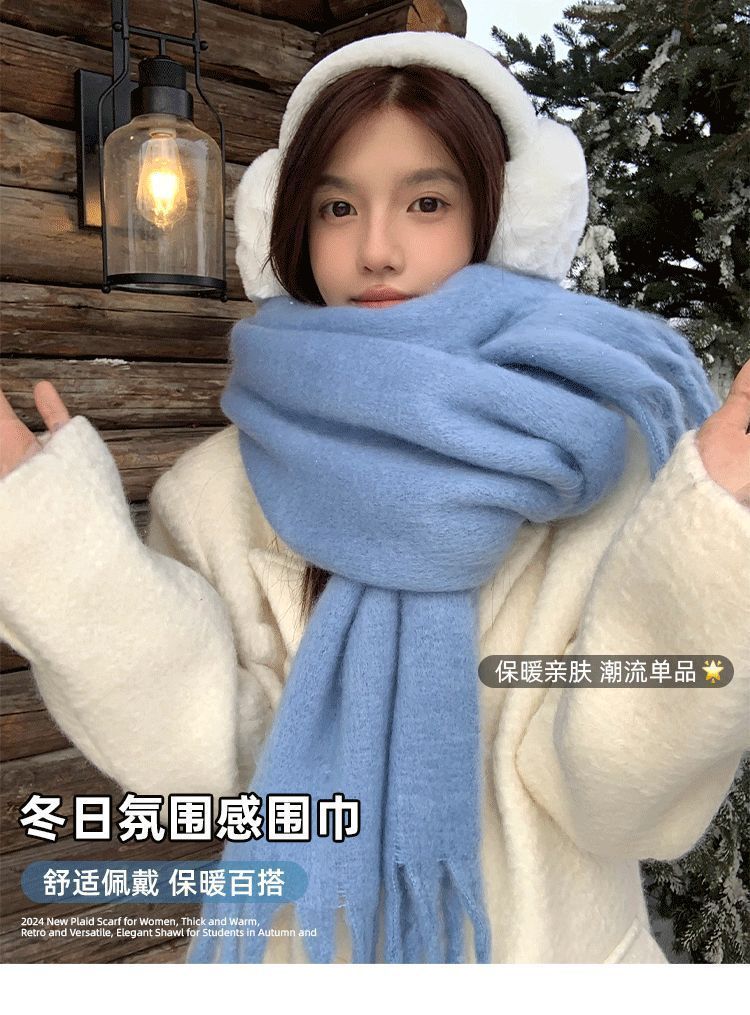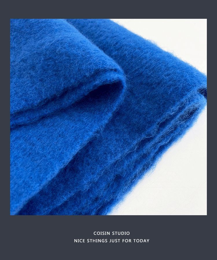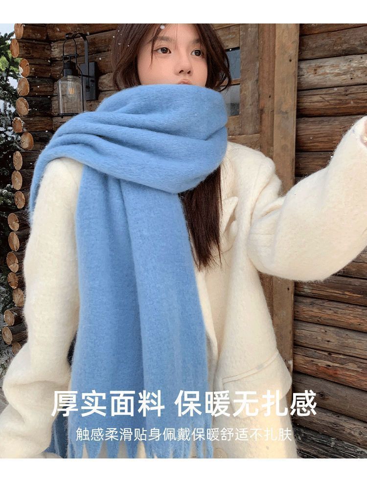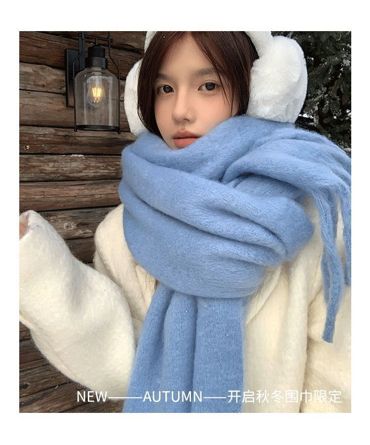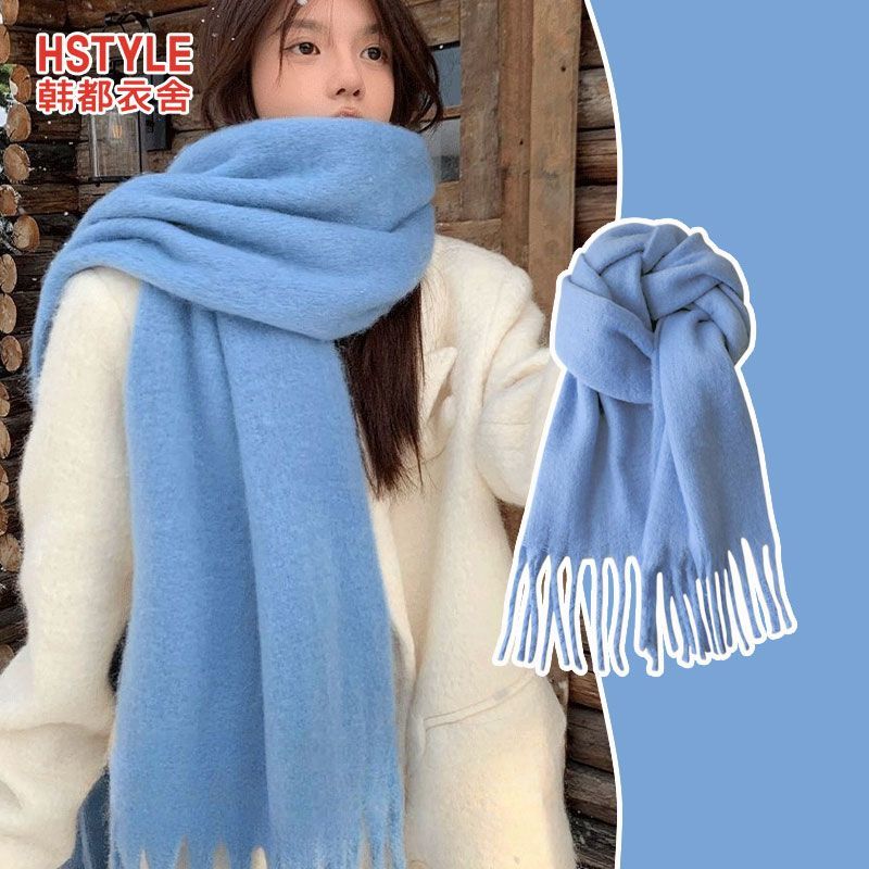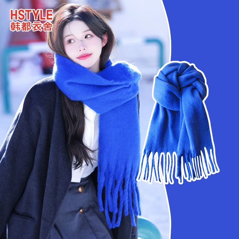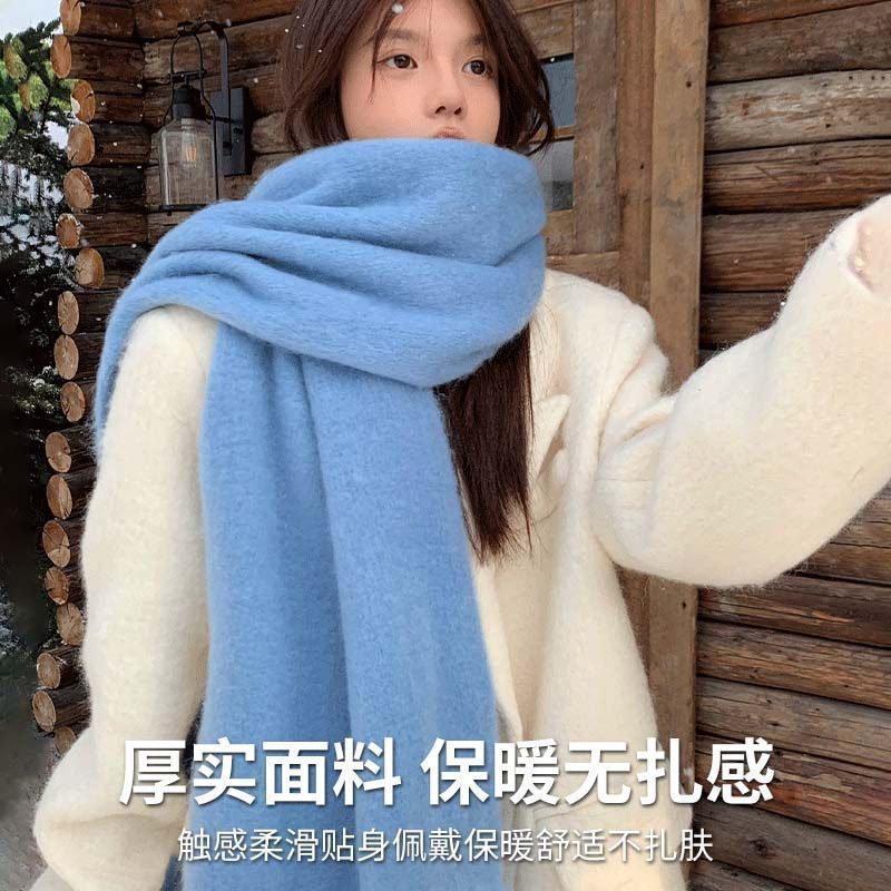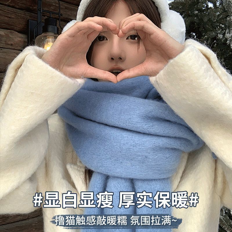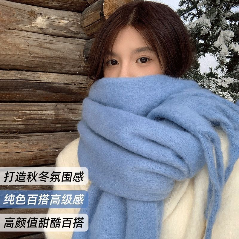 韩都衣舍蓝色围巾冬季学生纯色加厚韩版新款氛围百搭披肩围脖保暖