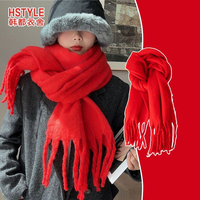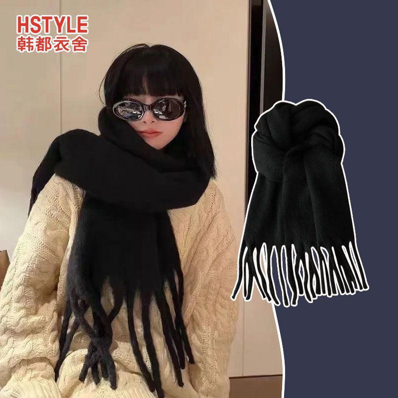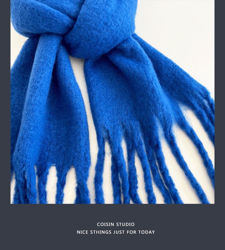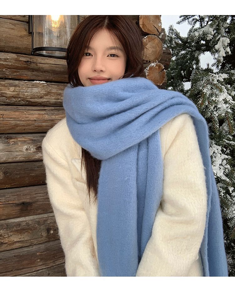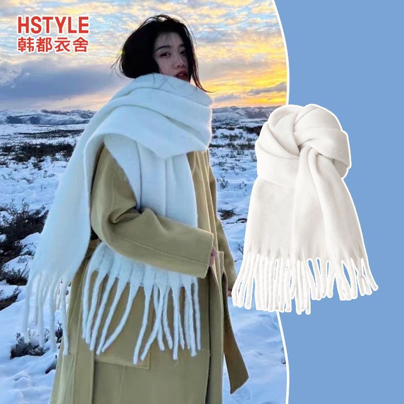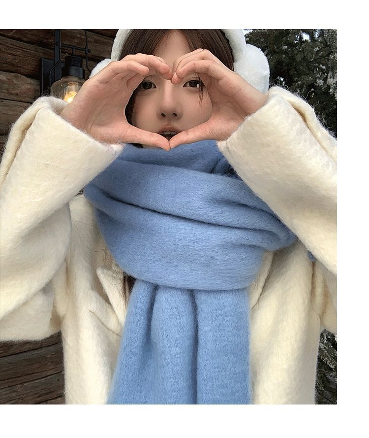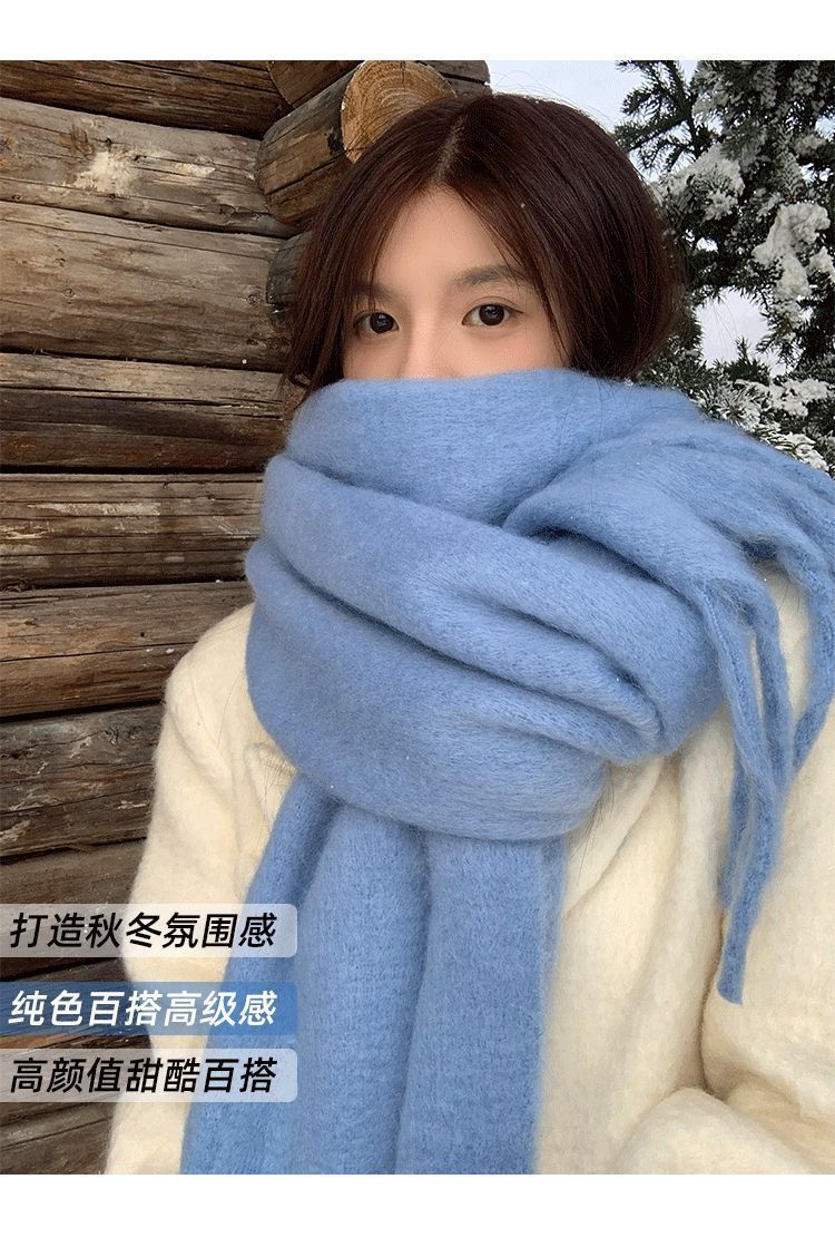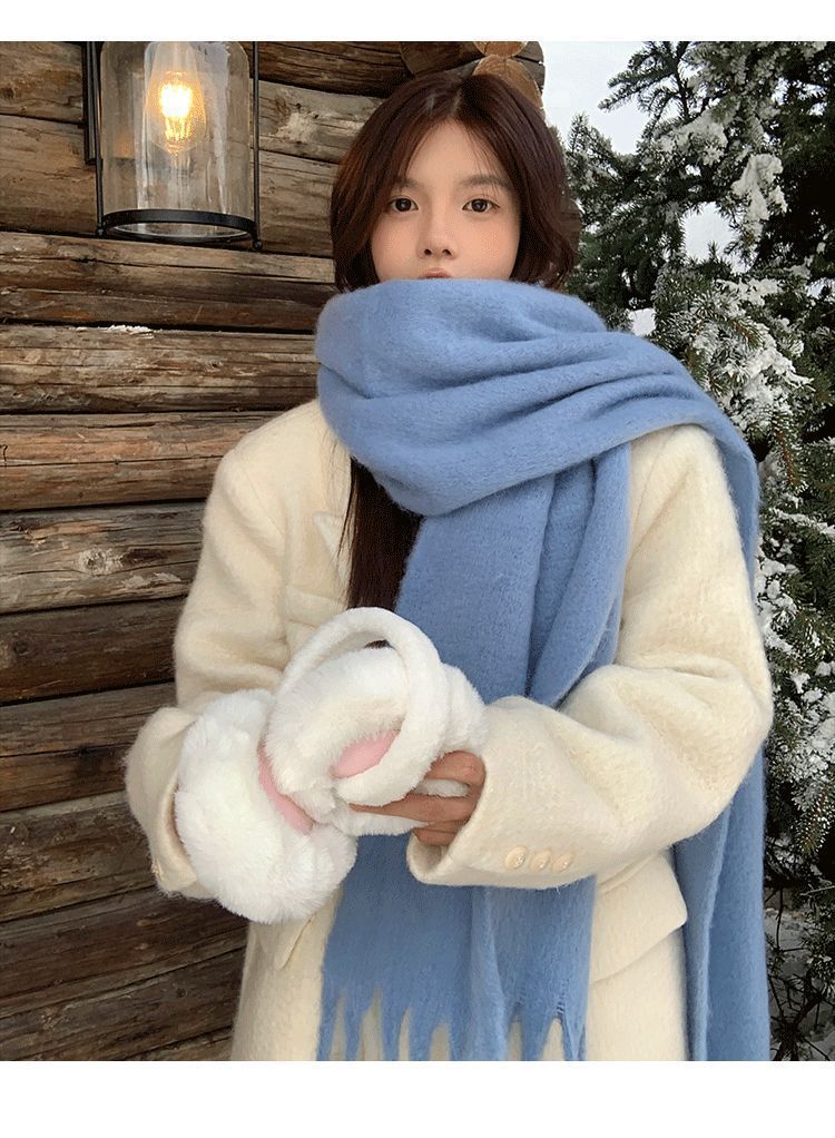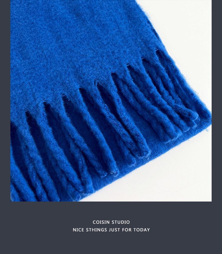 韩都衣舍蓝色围巾冬季学生纯色加厚韩版新款氛围百搭披肩围脖保暖