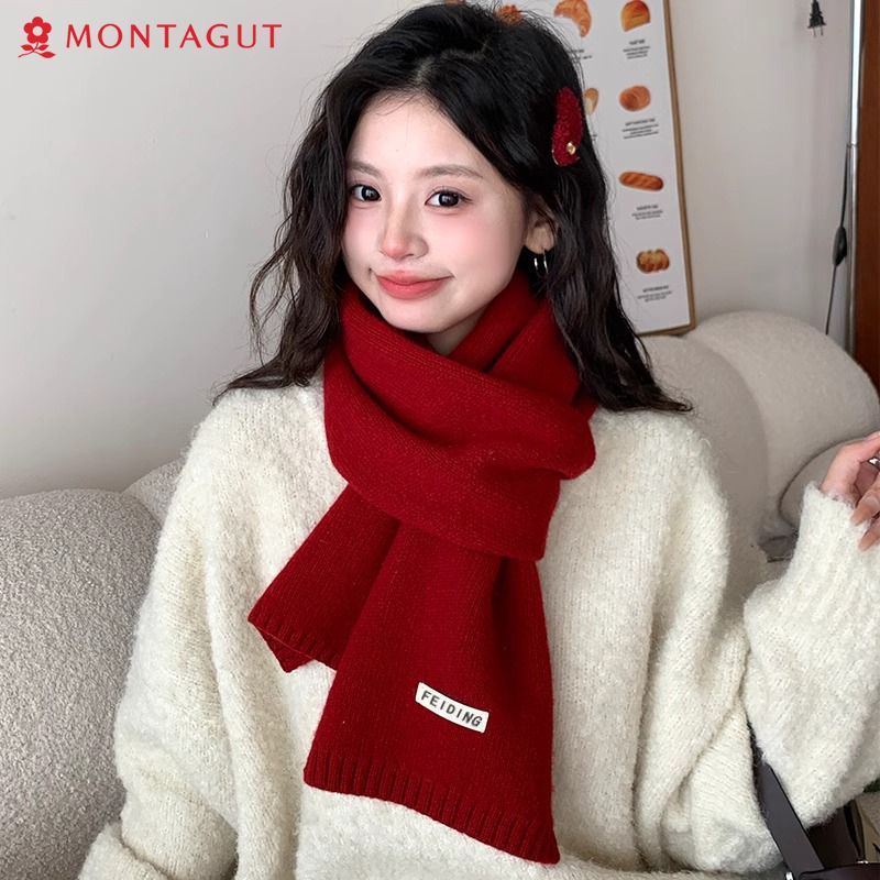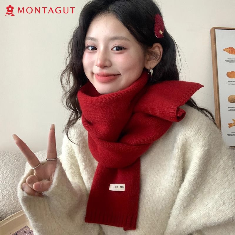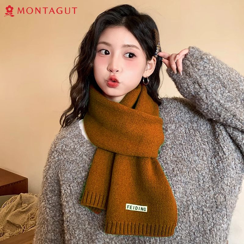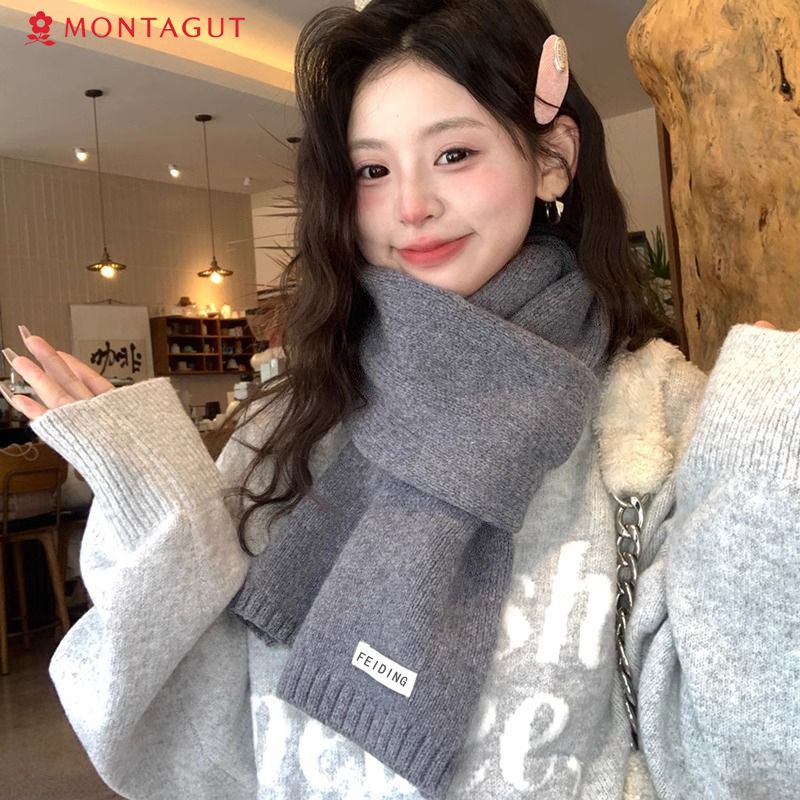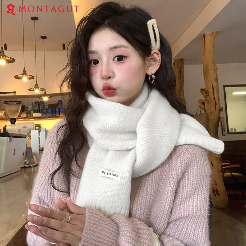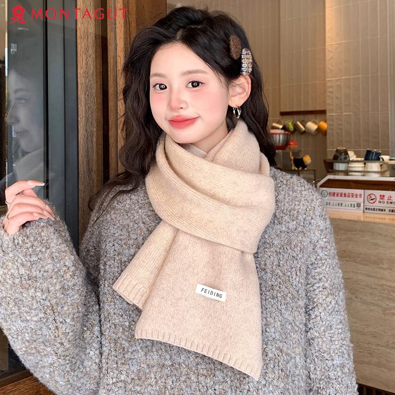 梦特娇新款百搭保暖纯色秋冬季毛线加厚围巾男女情侣学生针织围脖