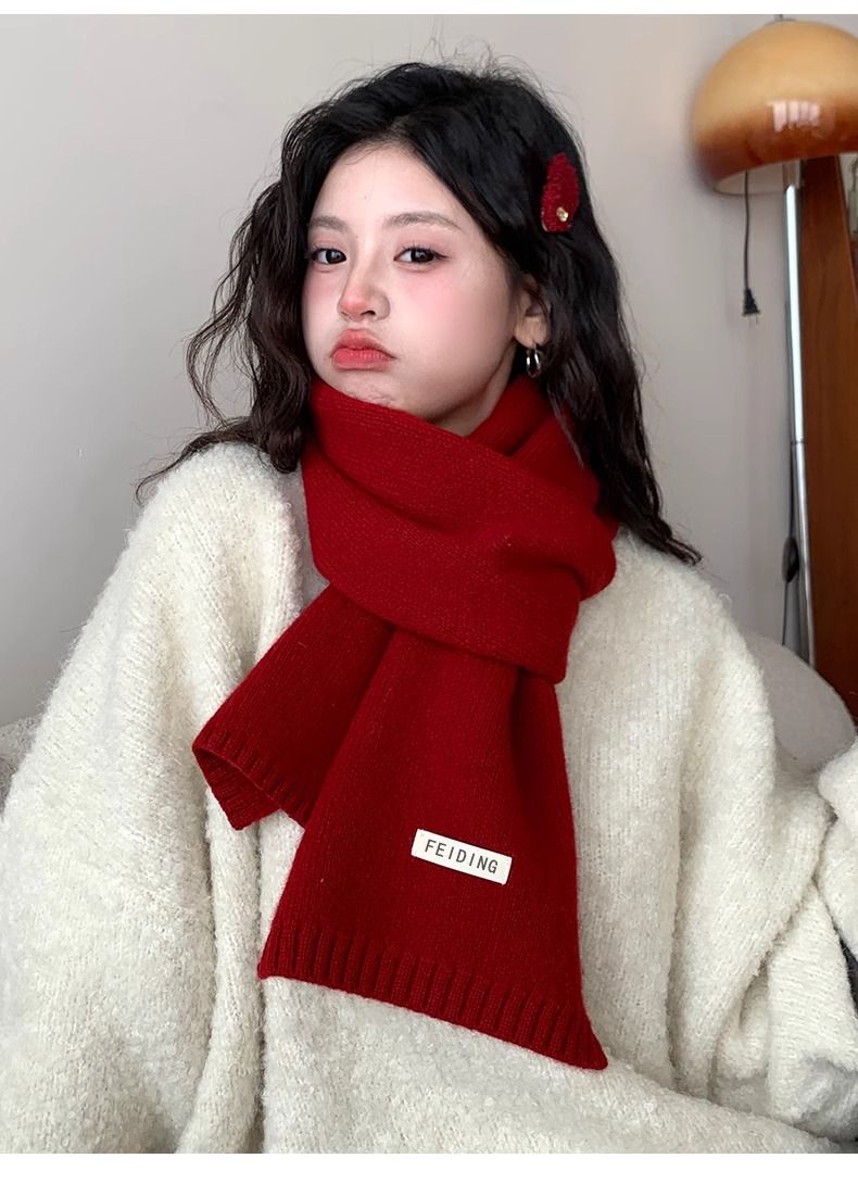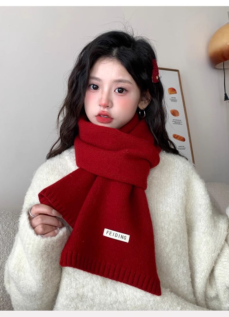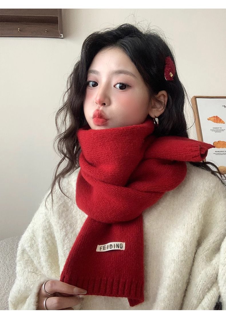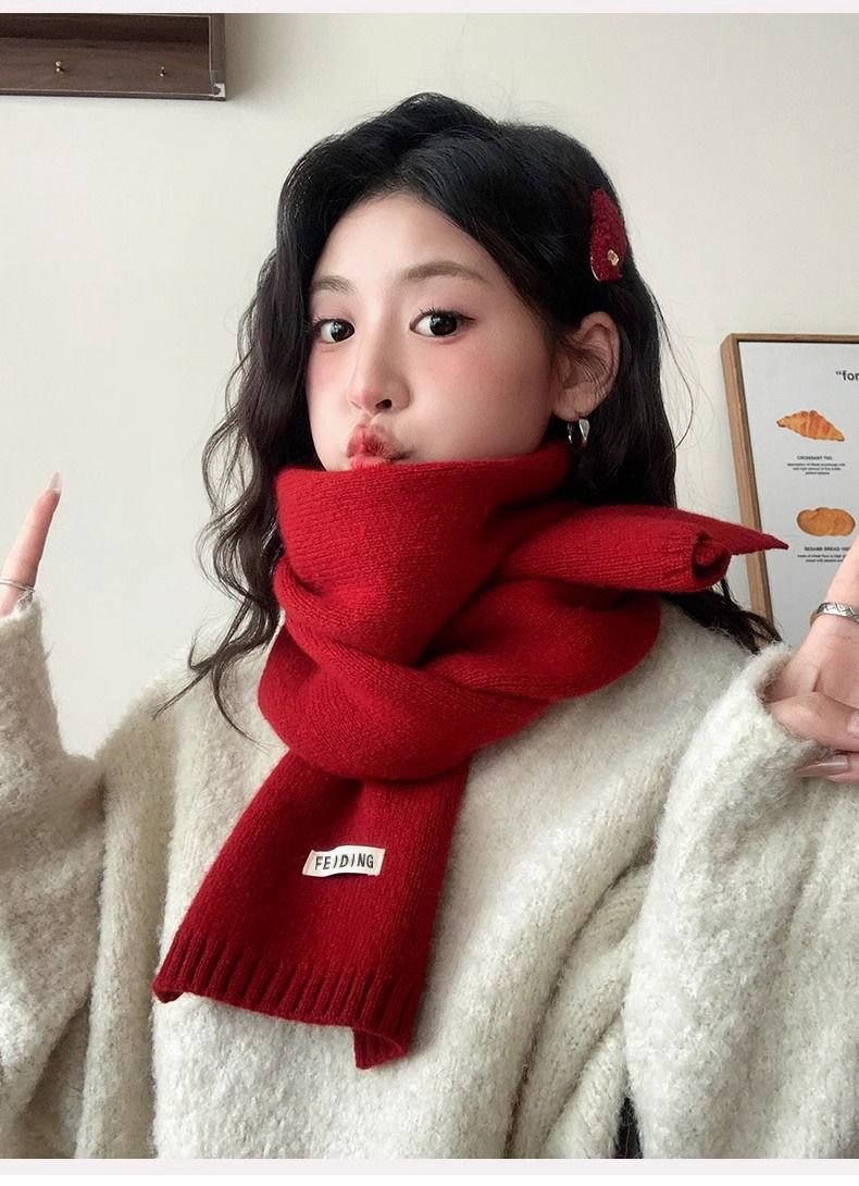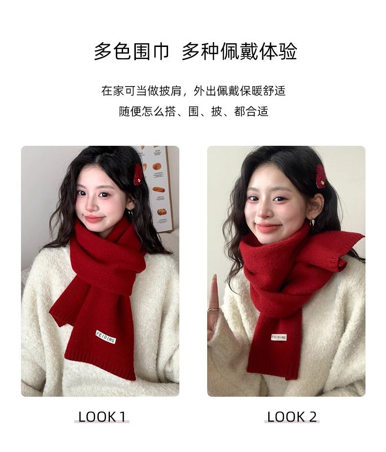 梦特娇新款百搭保暖纯色秋冬季毛线加厚围巾男女情侣学生针织围脖