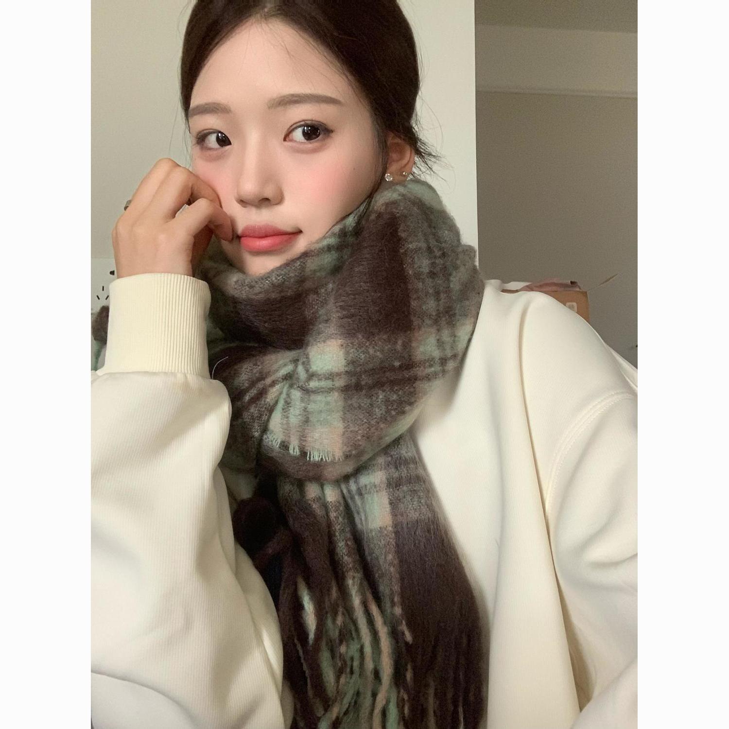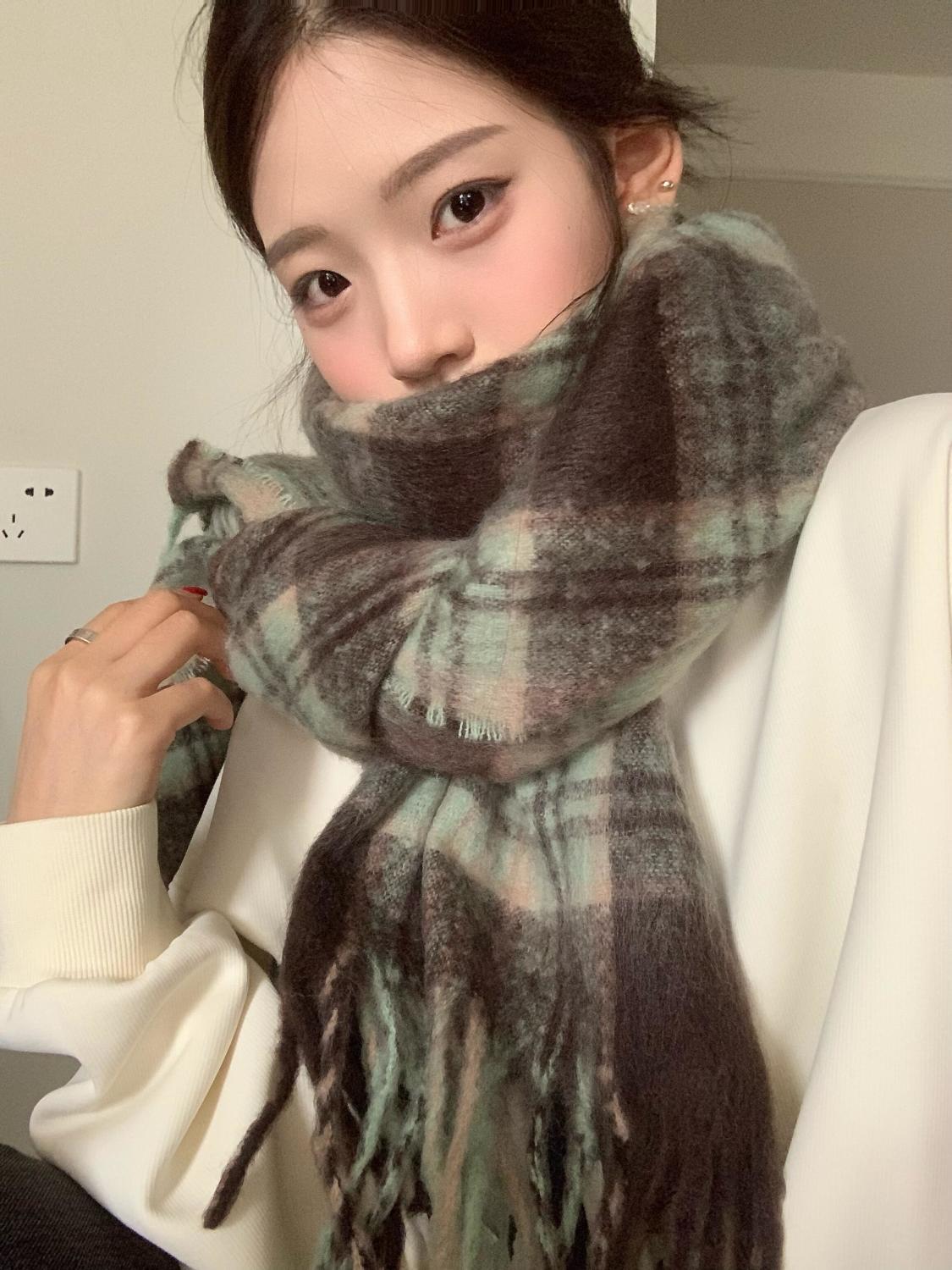 2024新款美拉德高级感格子围巾女冬季韩版披肩两用春秋加厚保暖潮