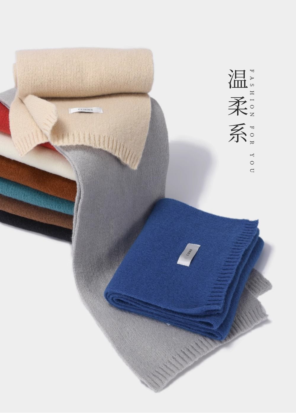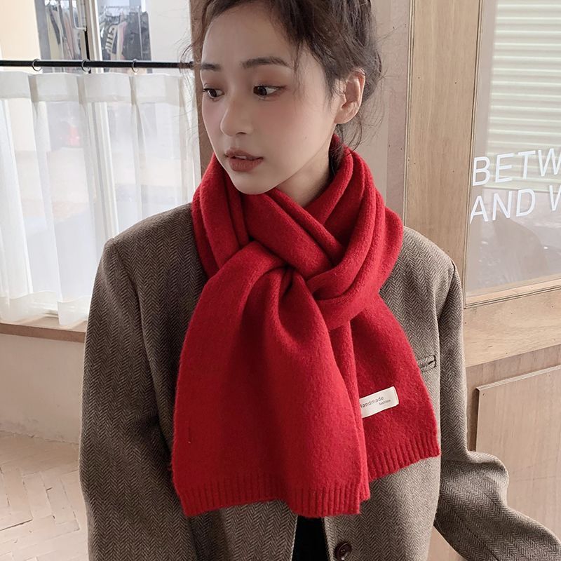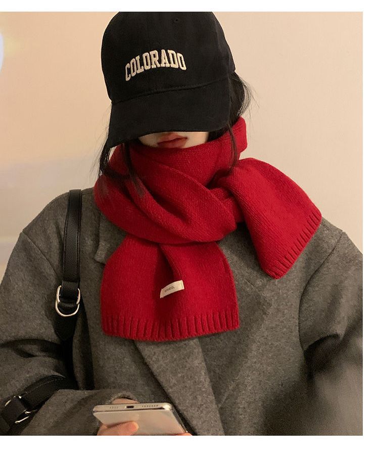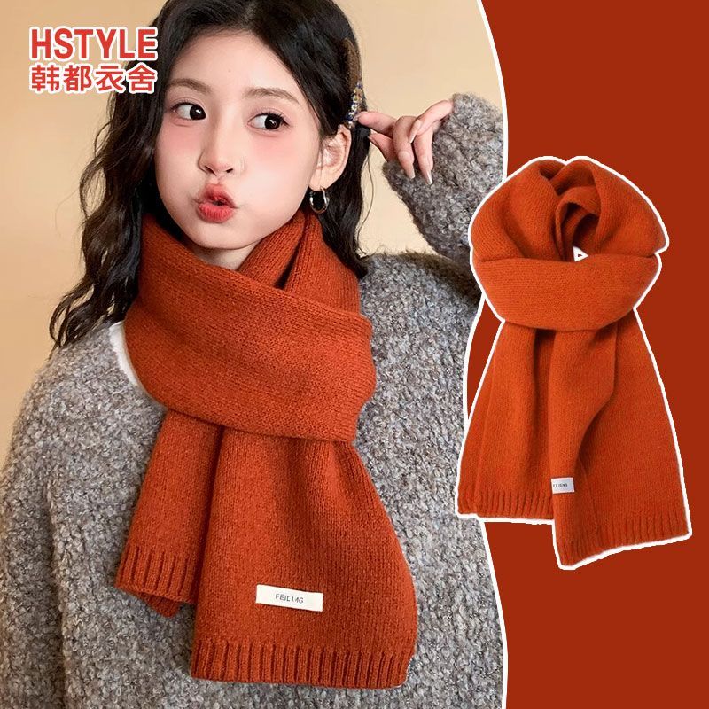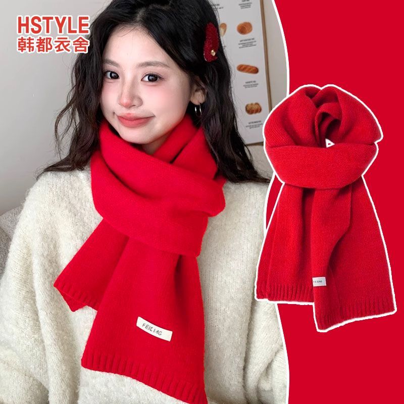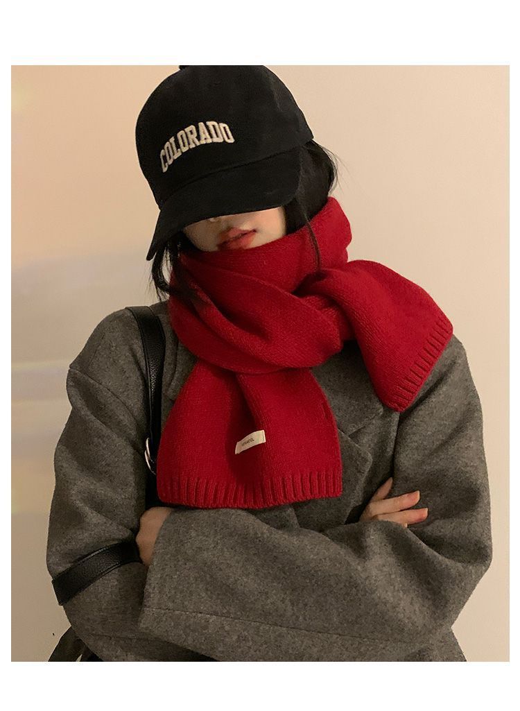 韩都衣舍韩版纯色围巾冬季加厚保暖针织学生情侣红色百搭围脖男女