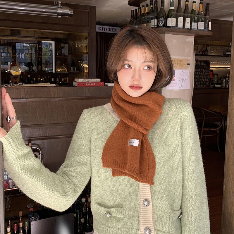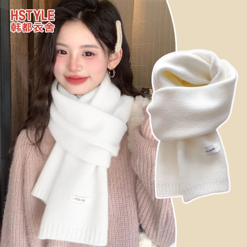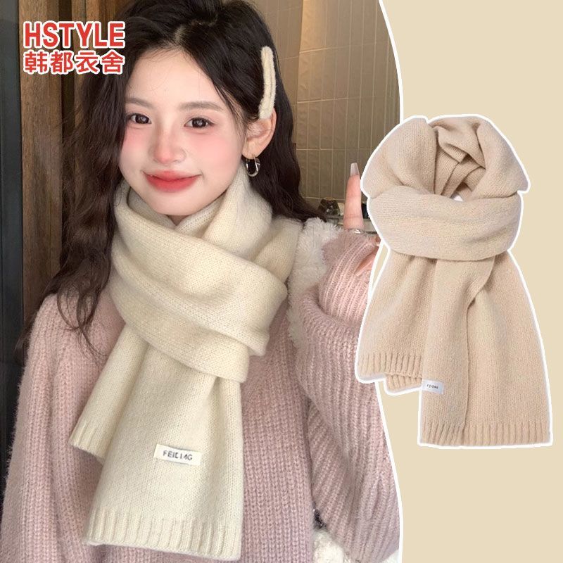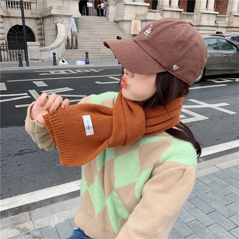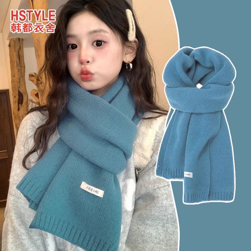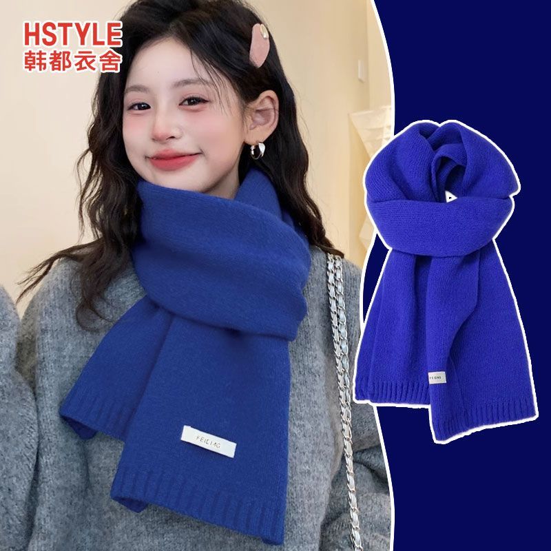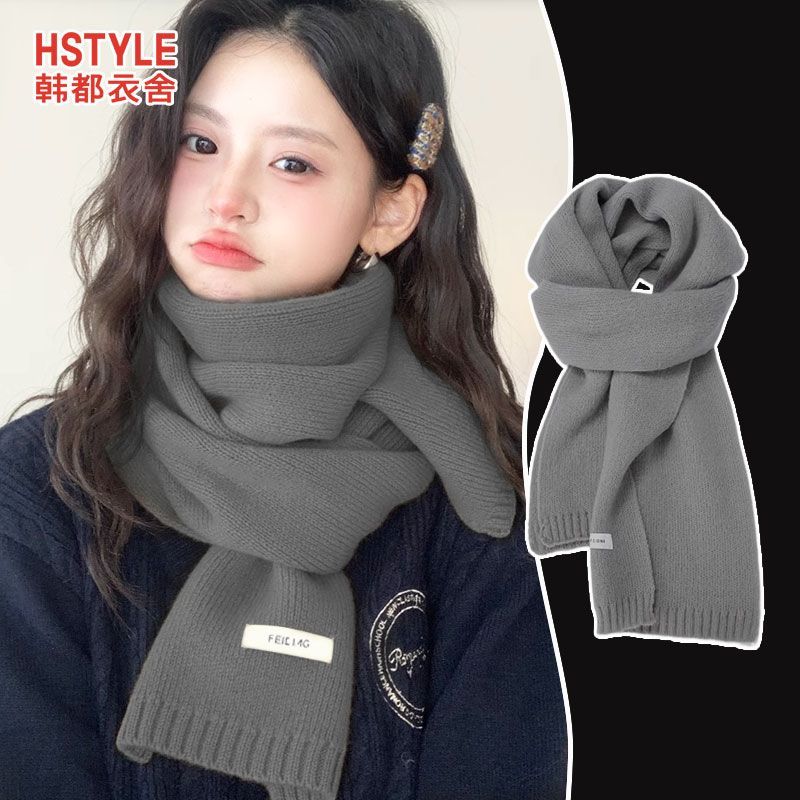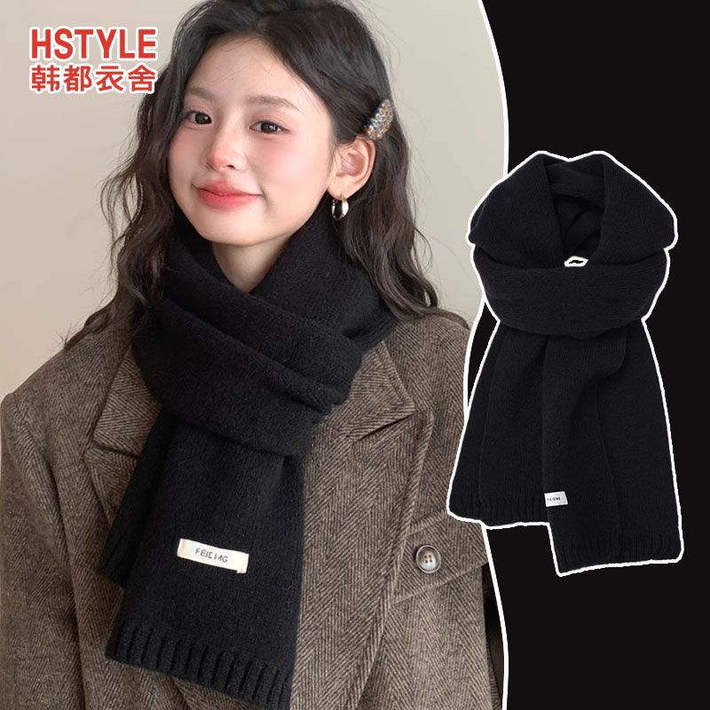 韩都衣舍韩版纯色围巾冬季加厚保暖针织学生情侣红色百搭围脖男女