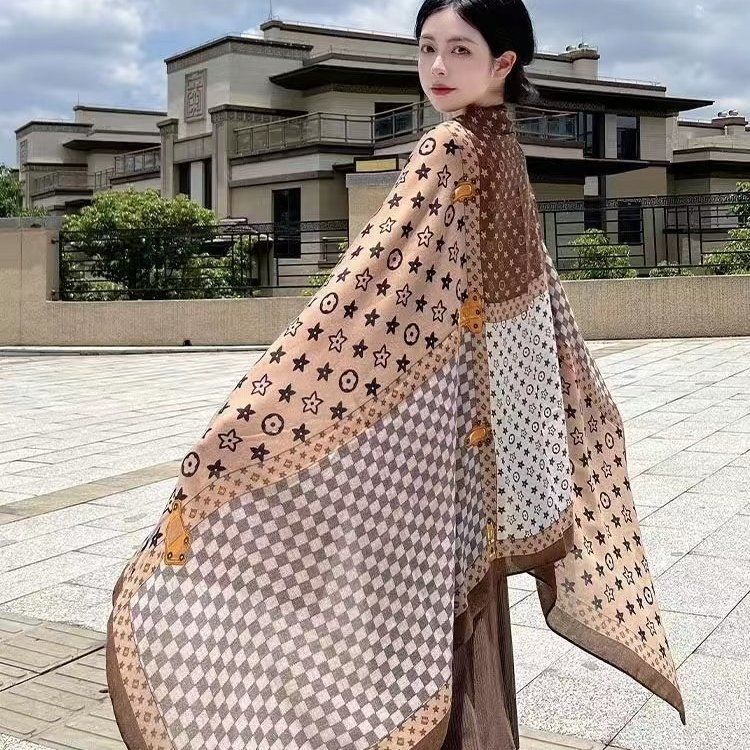 25新款格子时尚棉麻围巾女新款两用披肩冬季洋气保暖百搭显白披肩