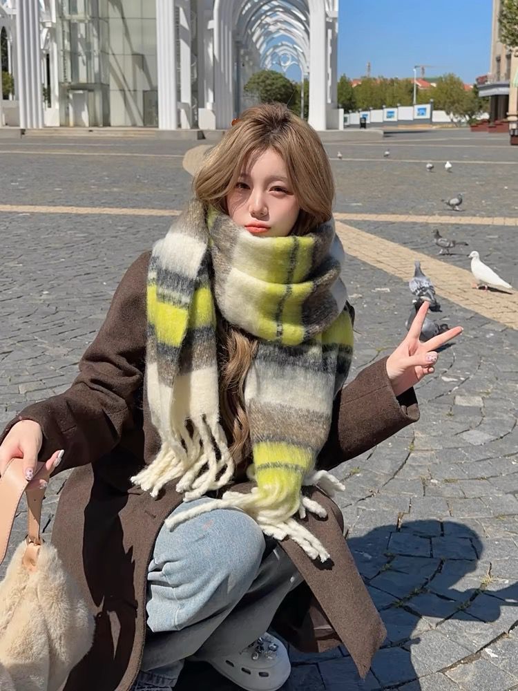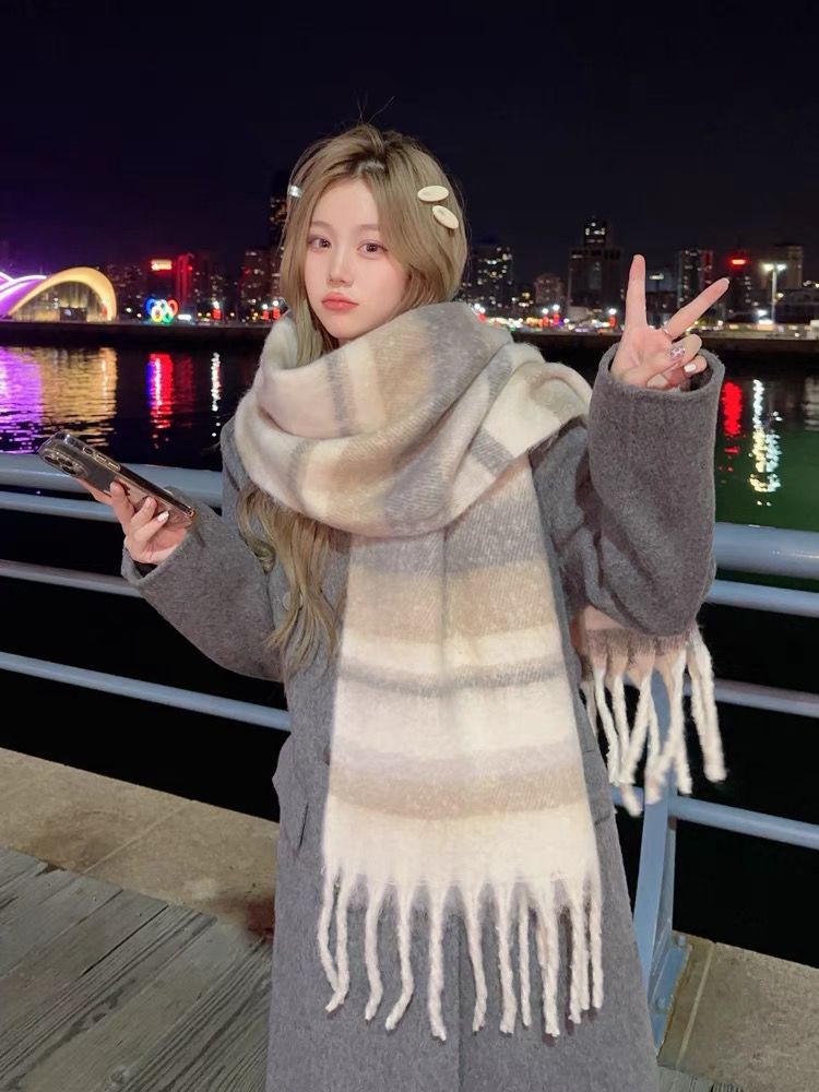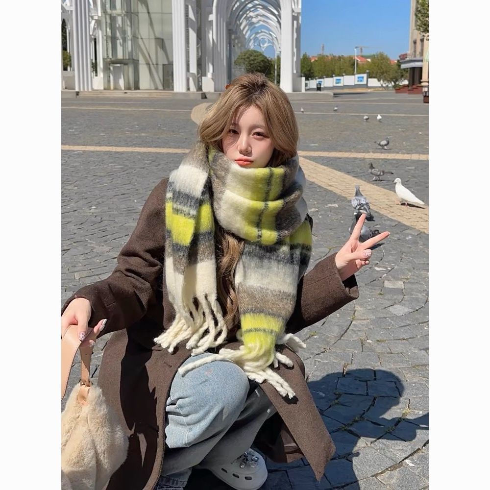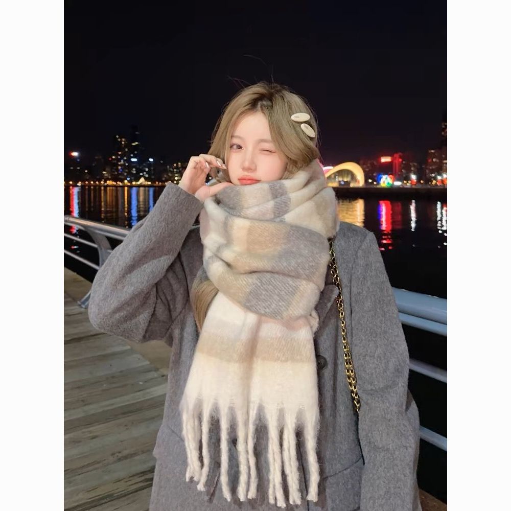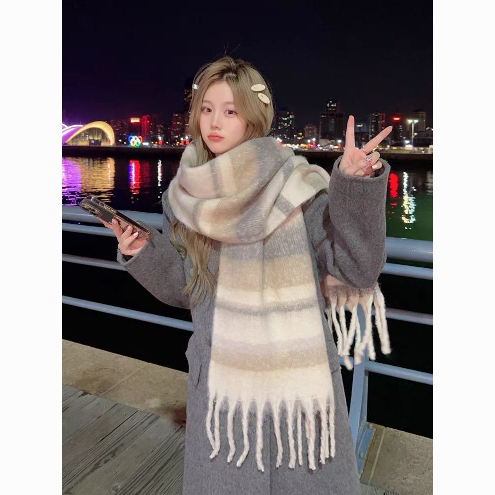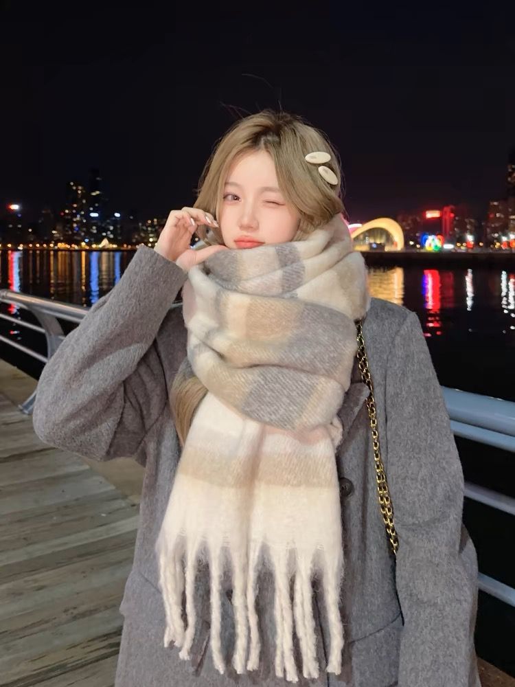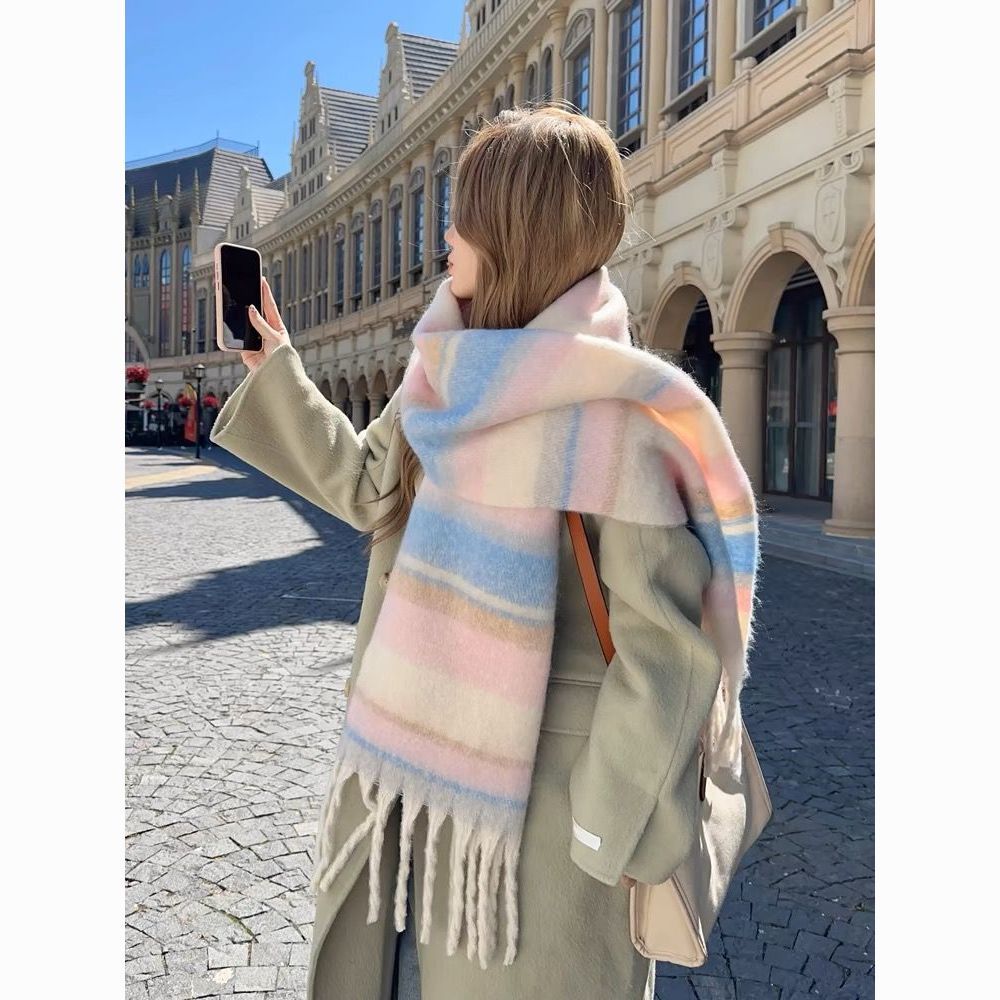 美拉德高级氛围感围巾女冬季2024新款韩版百搭加厚马海毛绒围脖秋