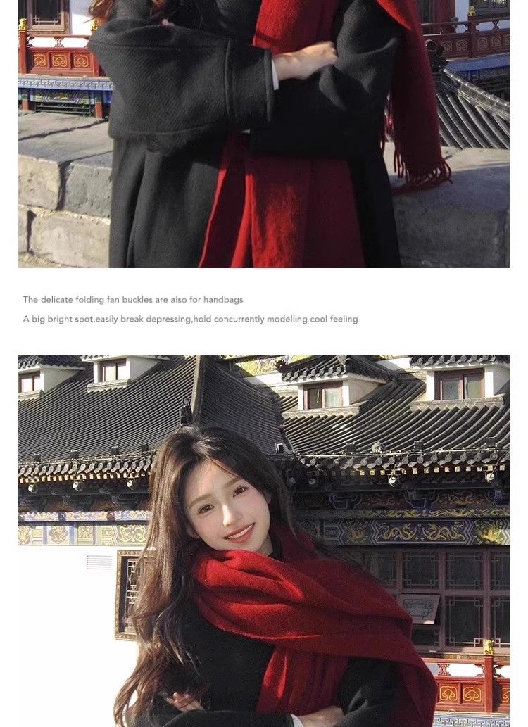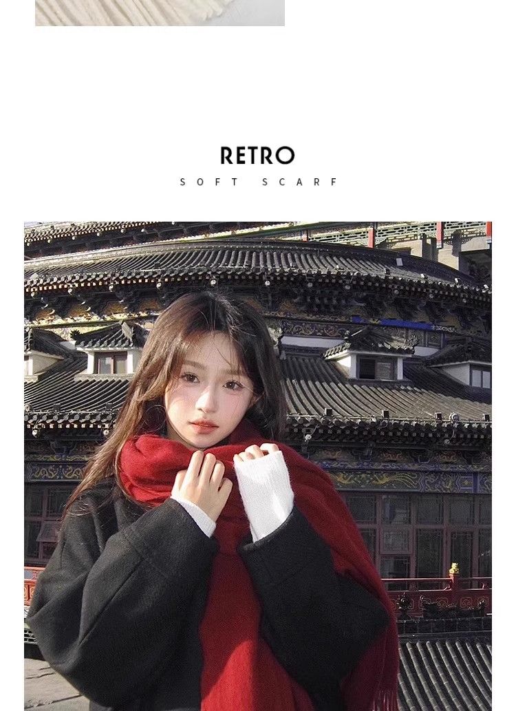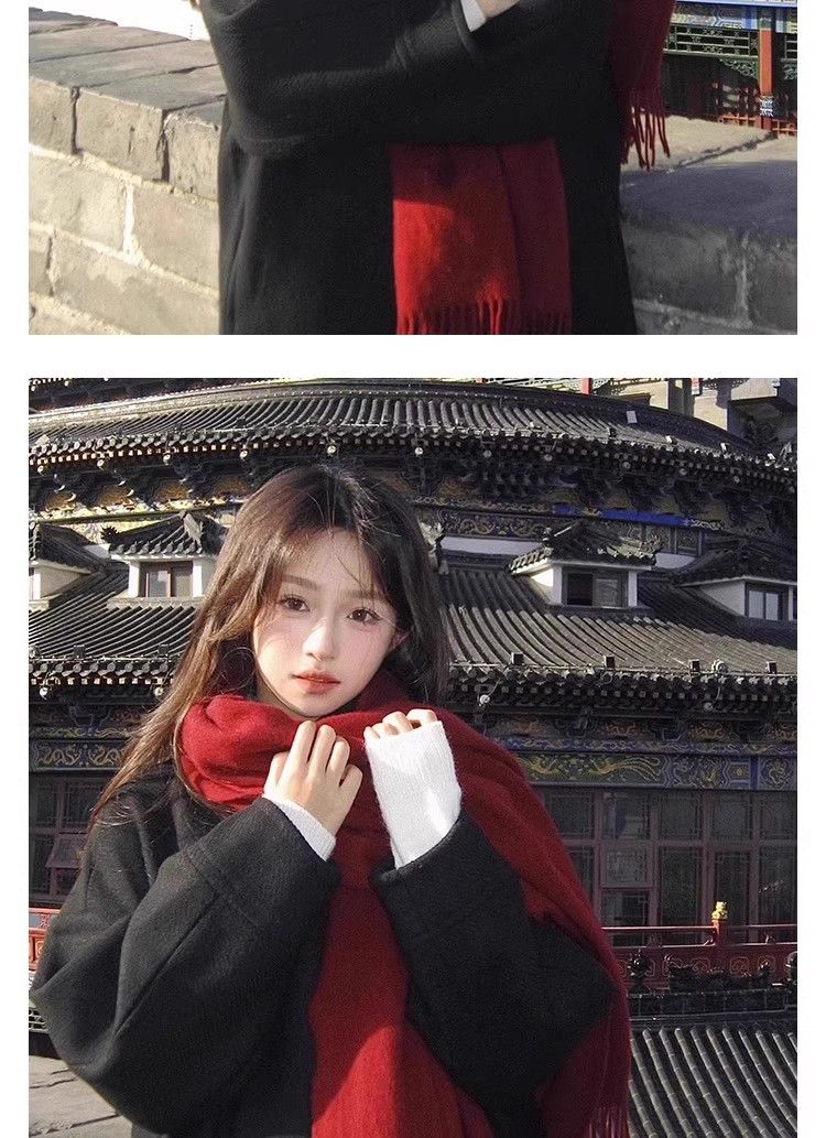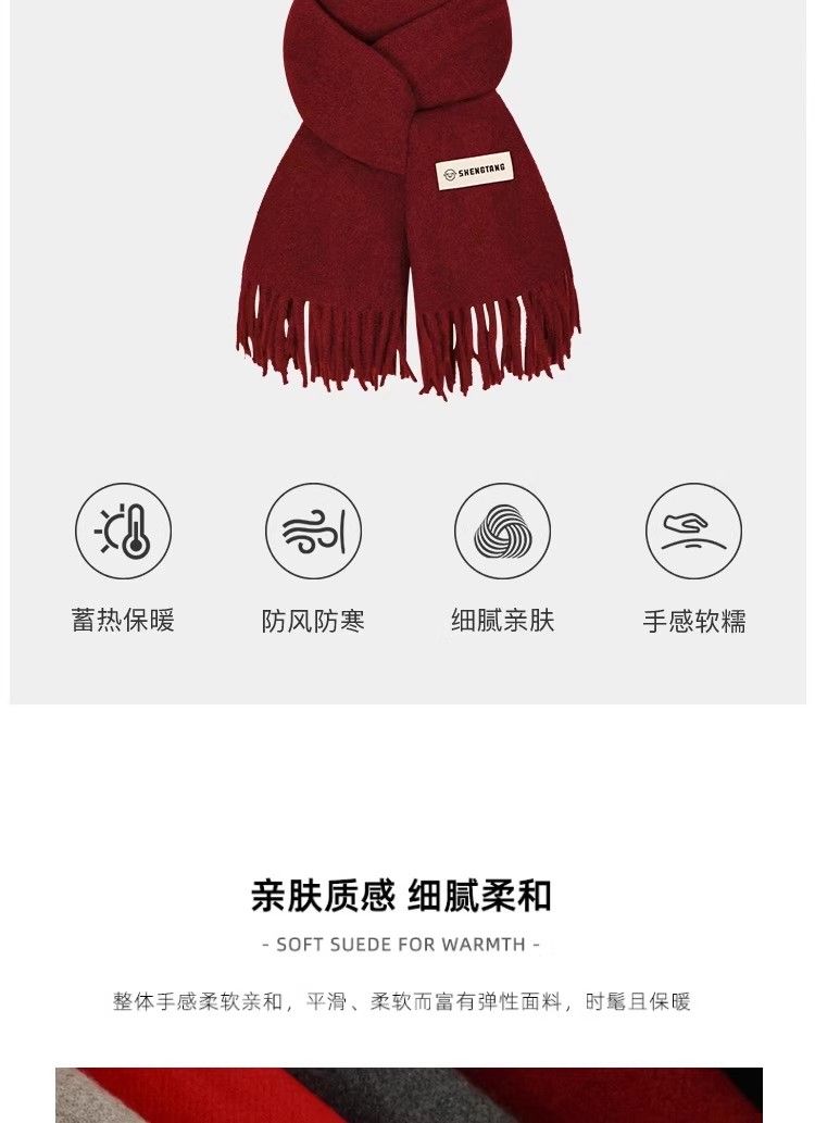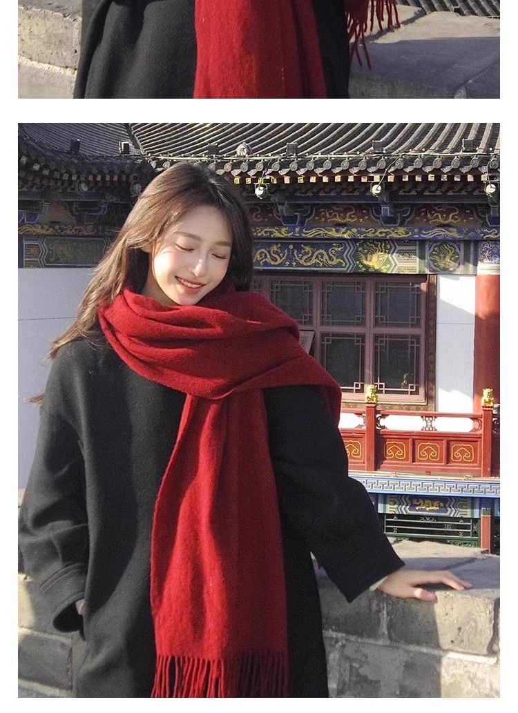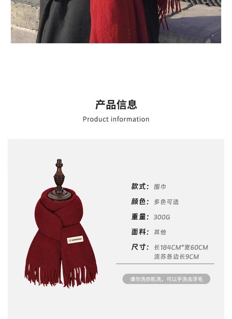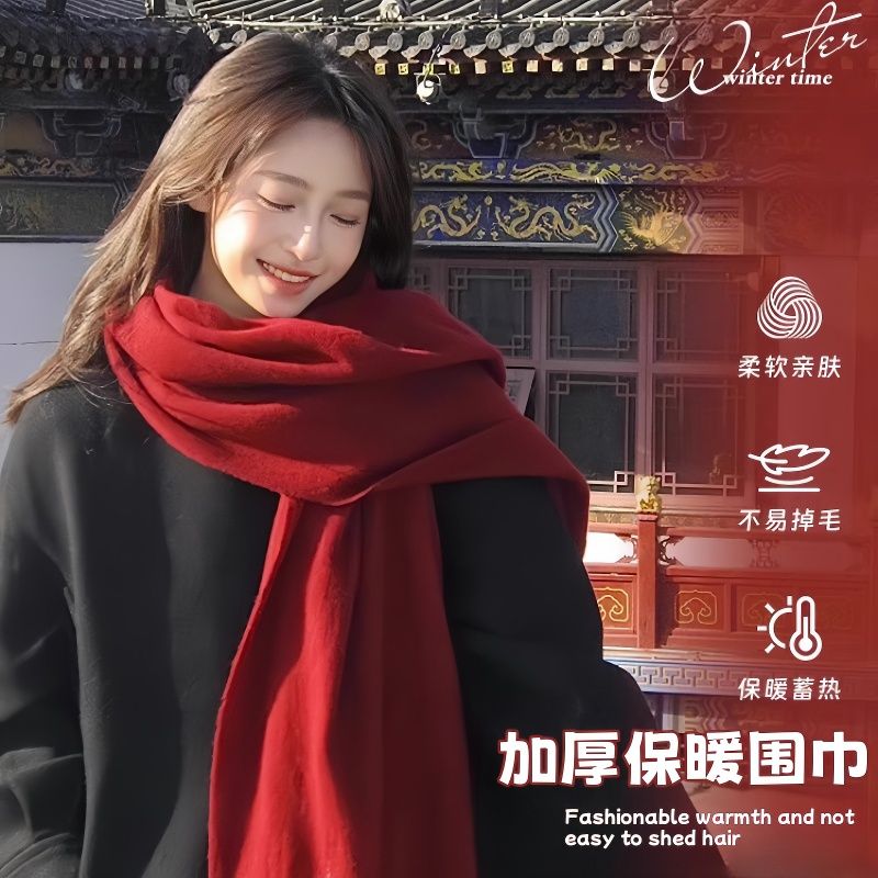 酒红色围巾女秋冬季2024新款韩系百搭氛围感本命新年礼物保暖围脖