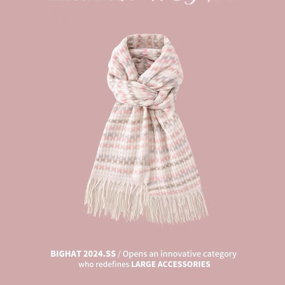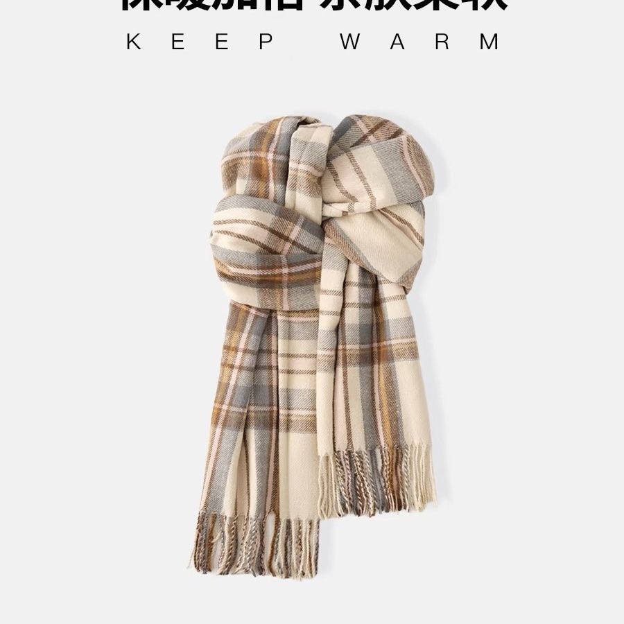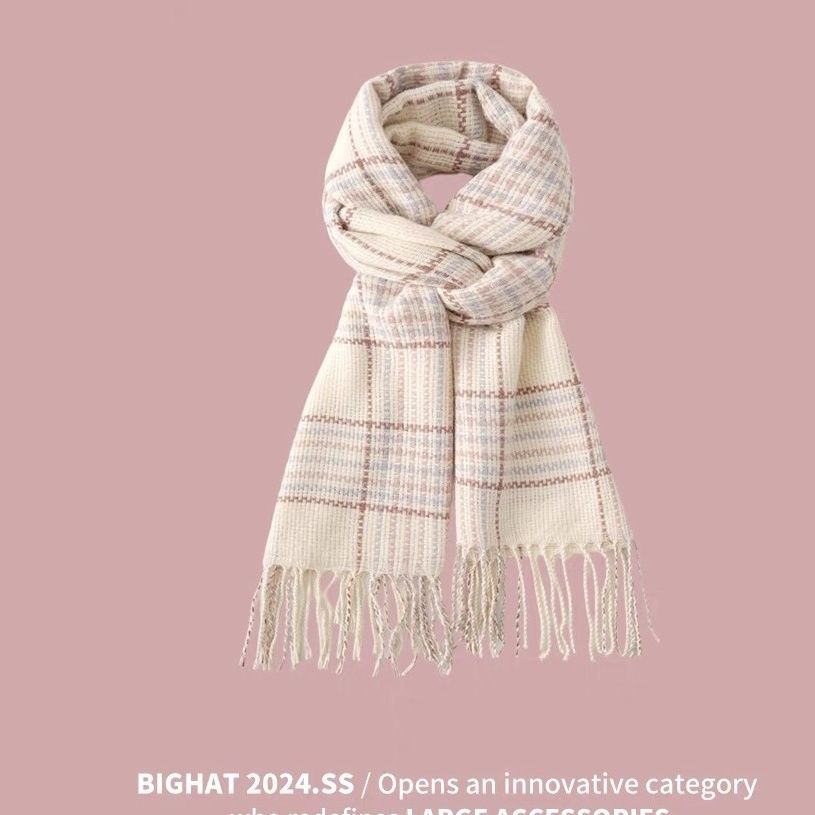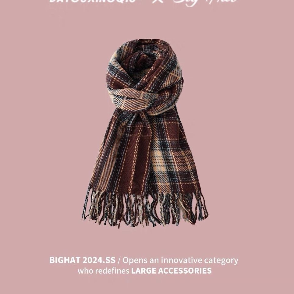 日系复古条纹格子围脖2024新款氛围感女秋冬季百搭韩系文艺风围巾