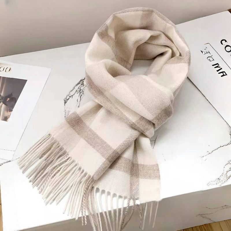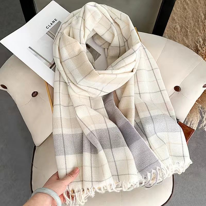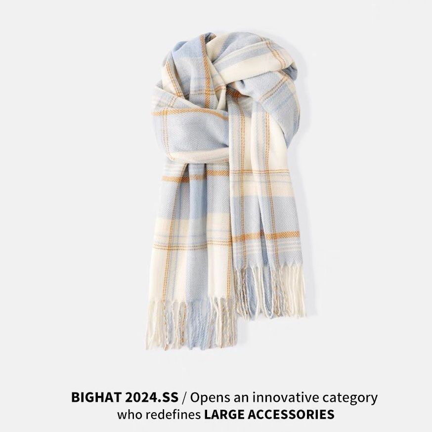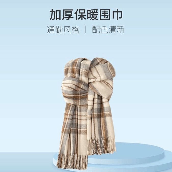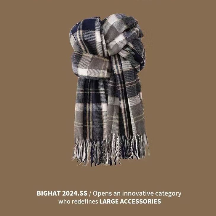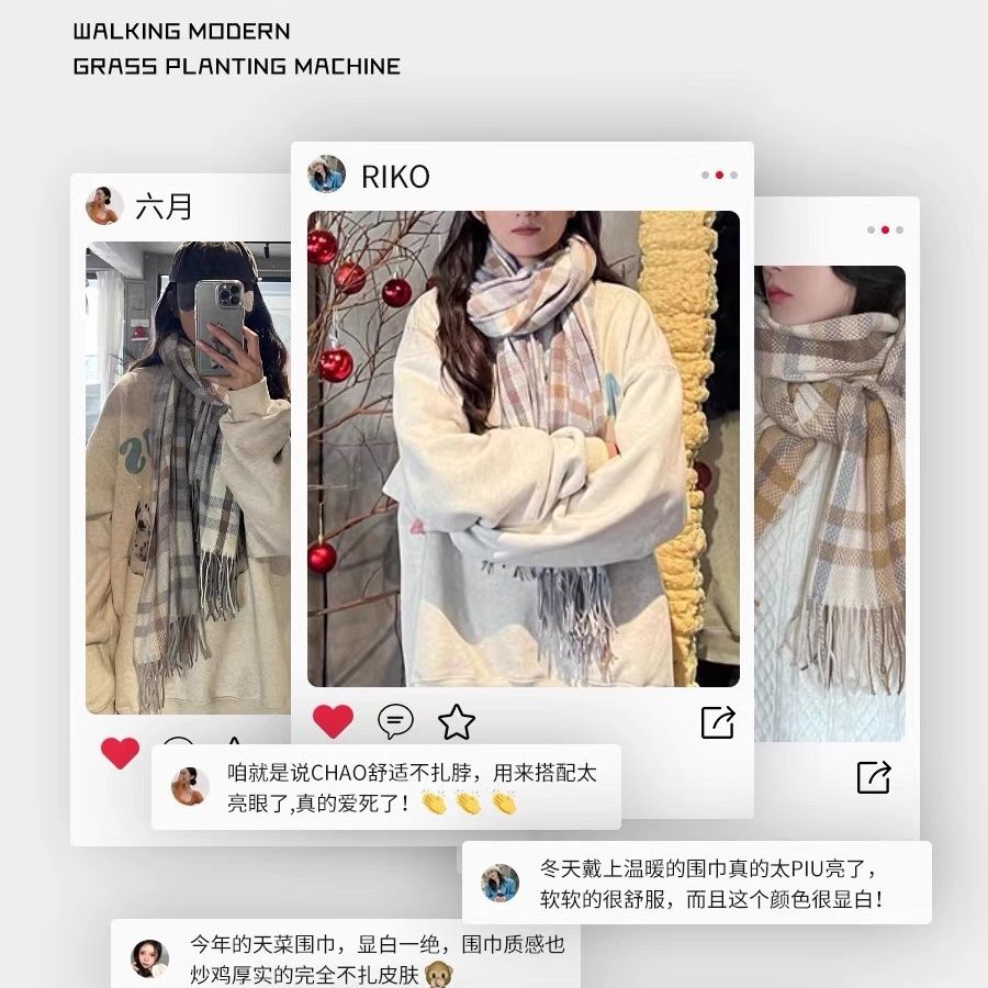日系复古条纹格子围脖2024新款氛围感女秋冬季百搭韩系文艺风围巾