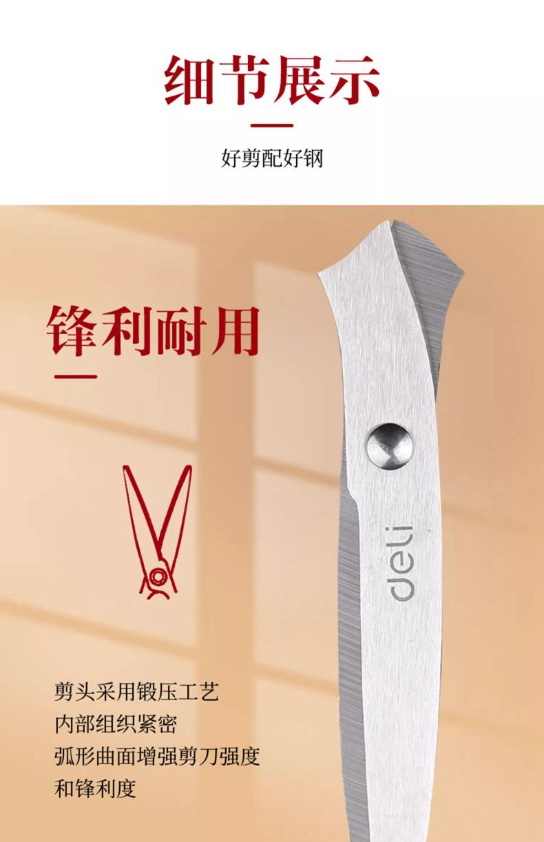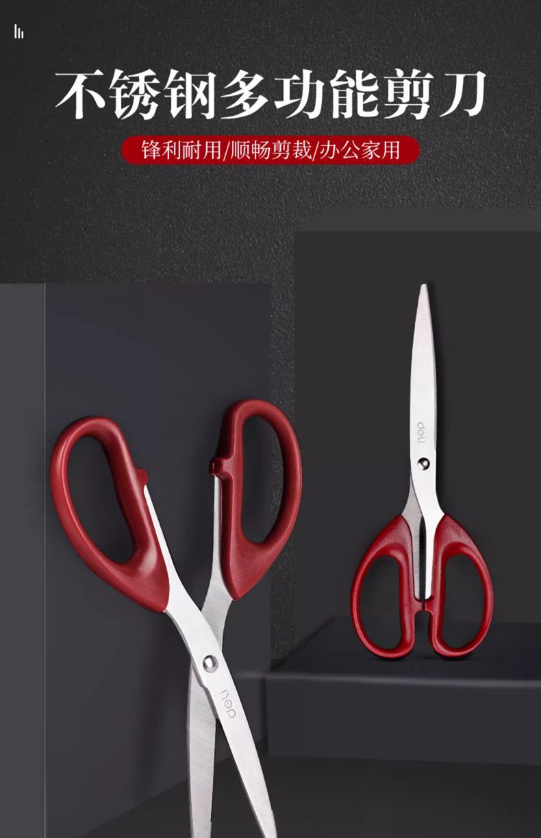 得力剪刀家用办公剪刀大号不锈钢手工小剪子剪纸美工拆快递剪线头