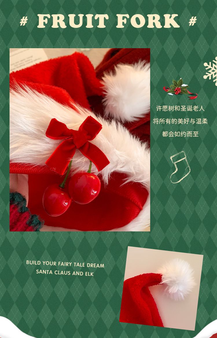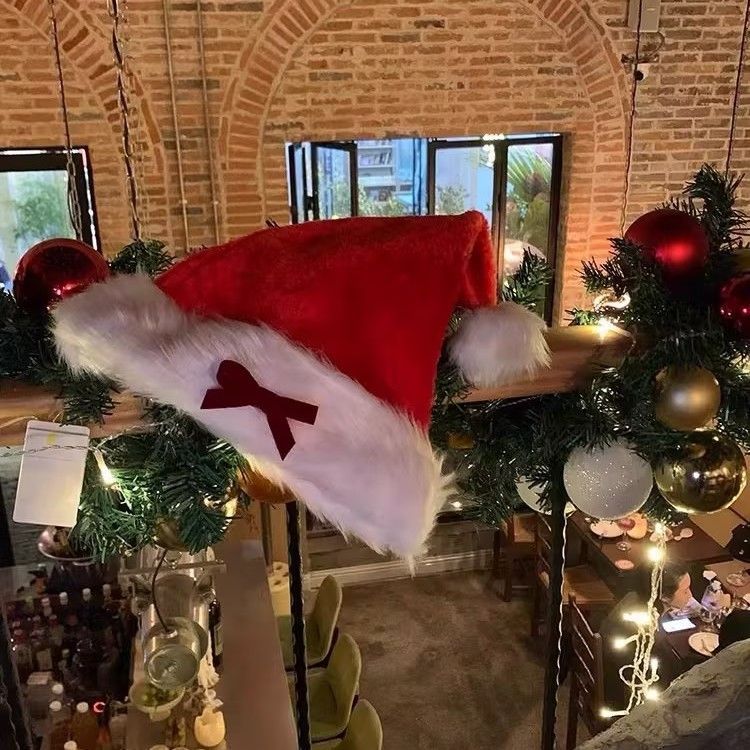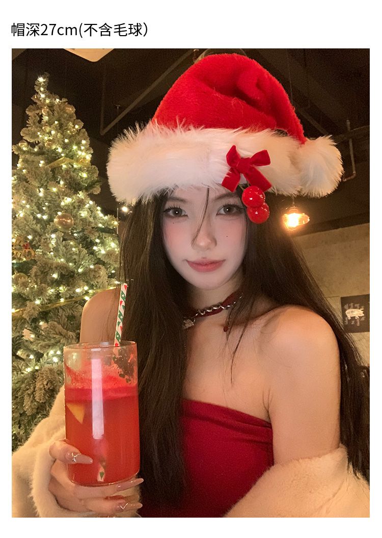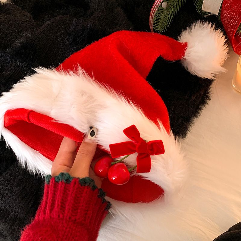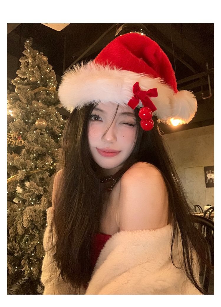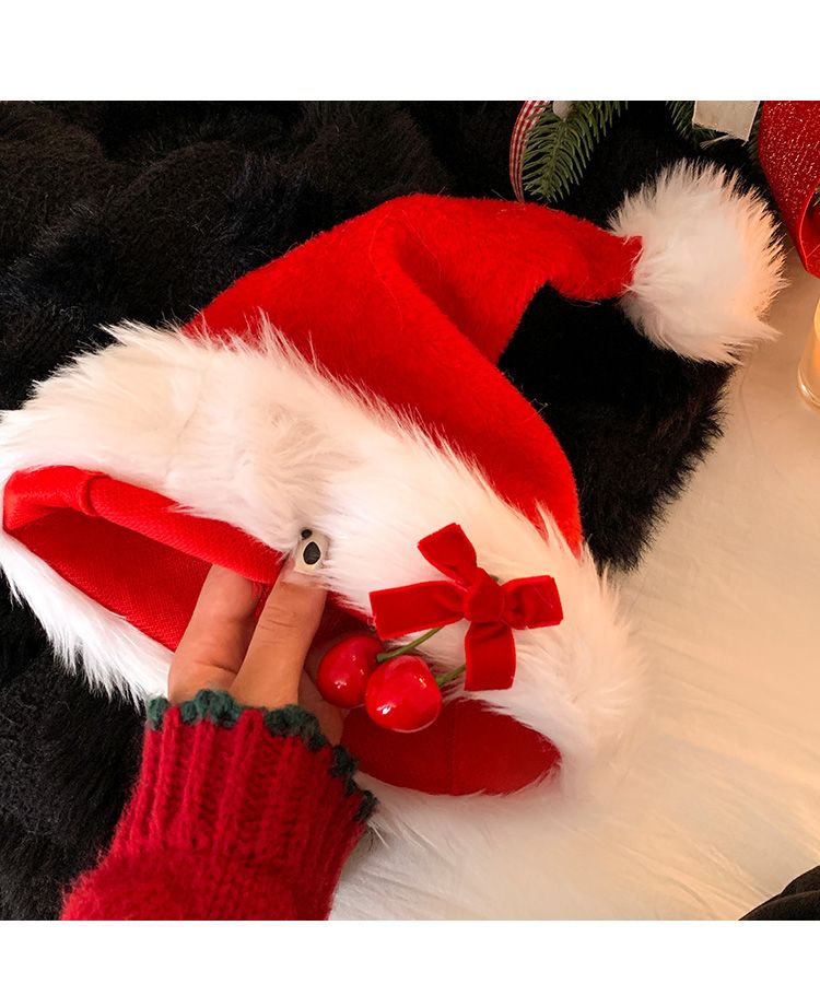 氛围感圣诞节蝴蝶结樱桃红色圣诞帽女2024年冬季装饰拍摄道具帽子