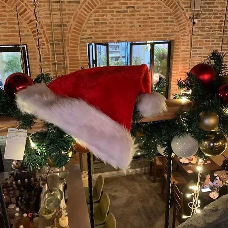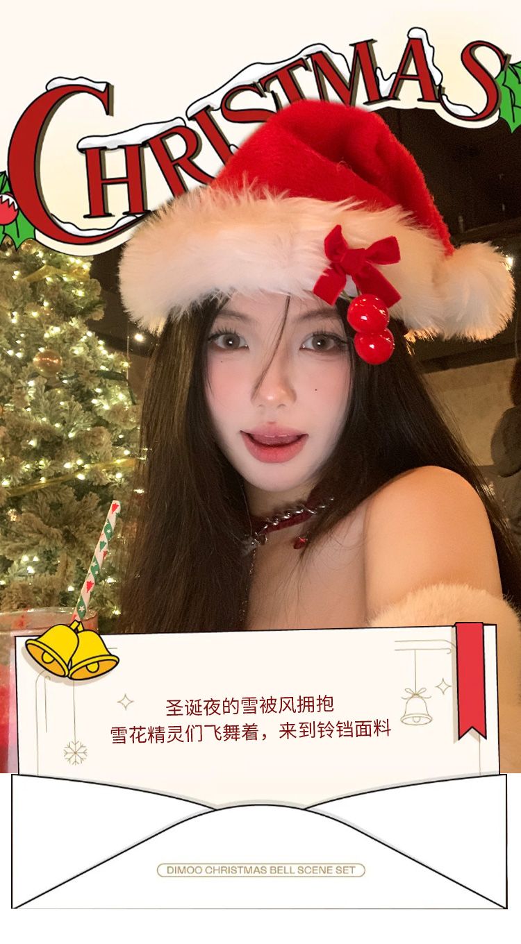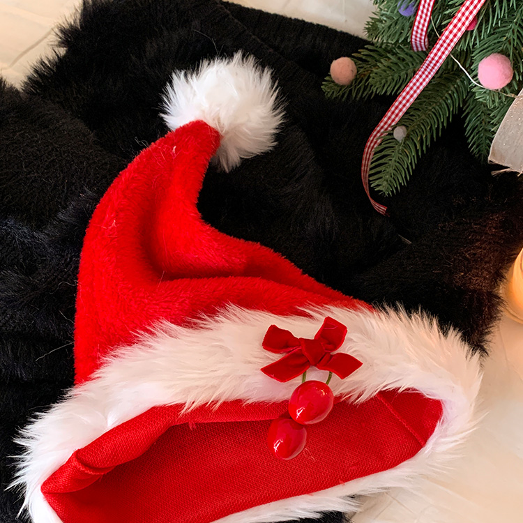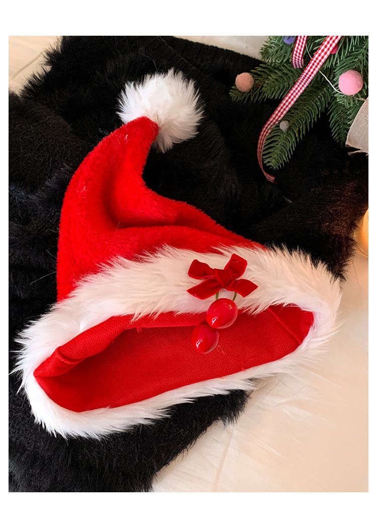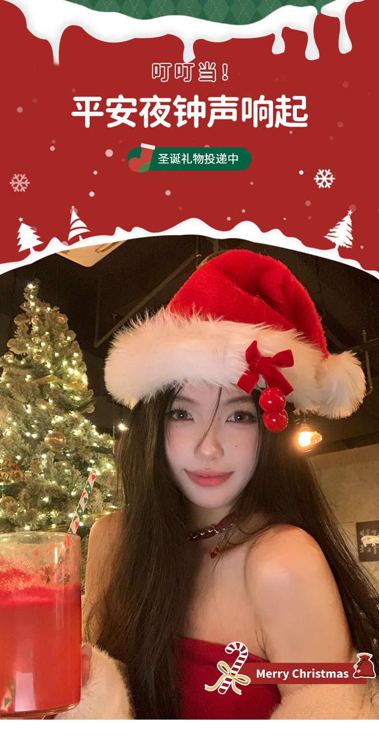 氛围感圣诞节蝴蝶结樱桃红色圣诞帽女2024年冬季装饰拍摄道具帽子