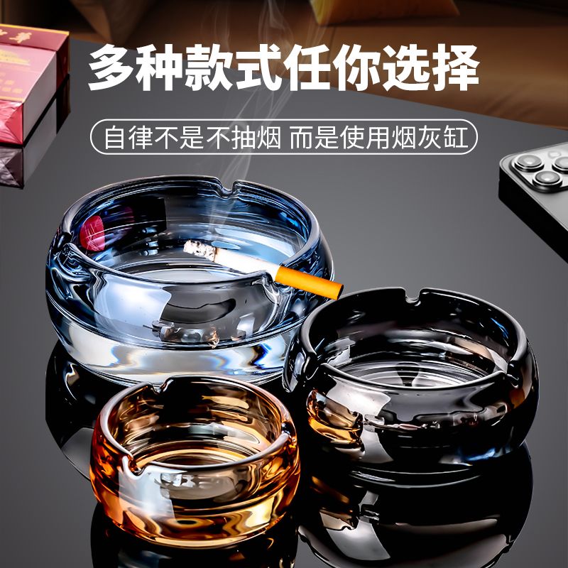 简约玻璃烟灰缸高端大气上档次家用客厅办公室时尚商用轻奢烟缸碟