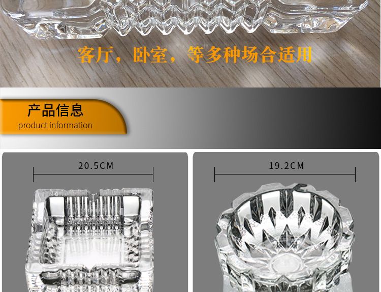 烟灰缸大号摆件礼品大号创意小号烟灰缸酒店客厅家用卧室玻璃烟缸