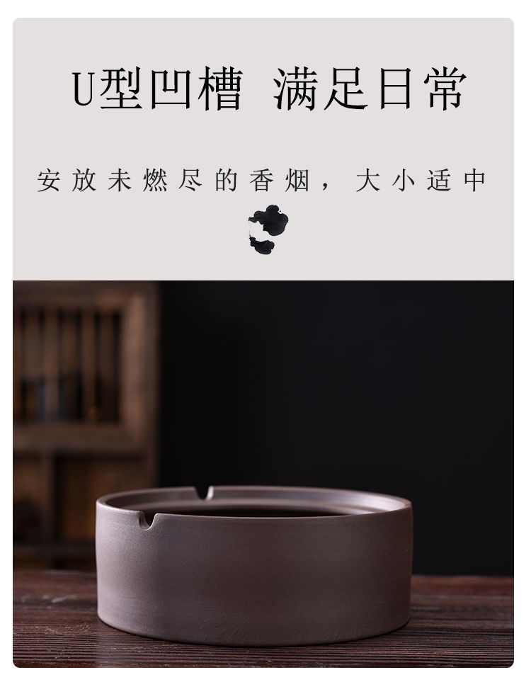 紫砂烟灰缸带盖防风复古家用客厅摆件防飞灰密封大号多功能烟灰缸