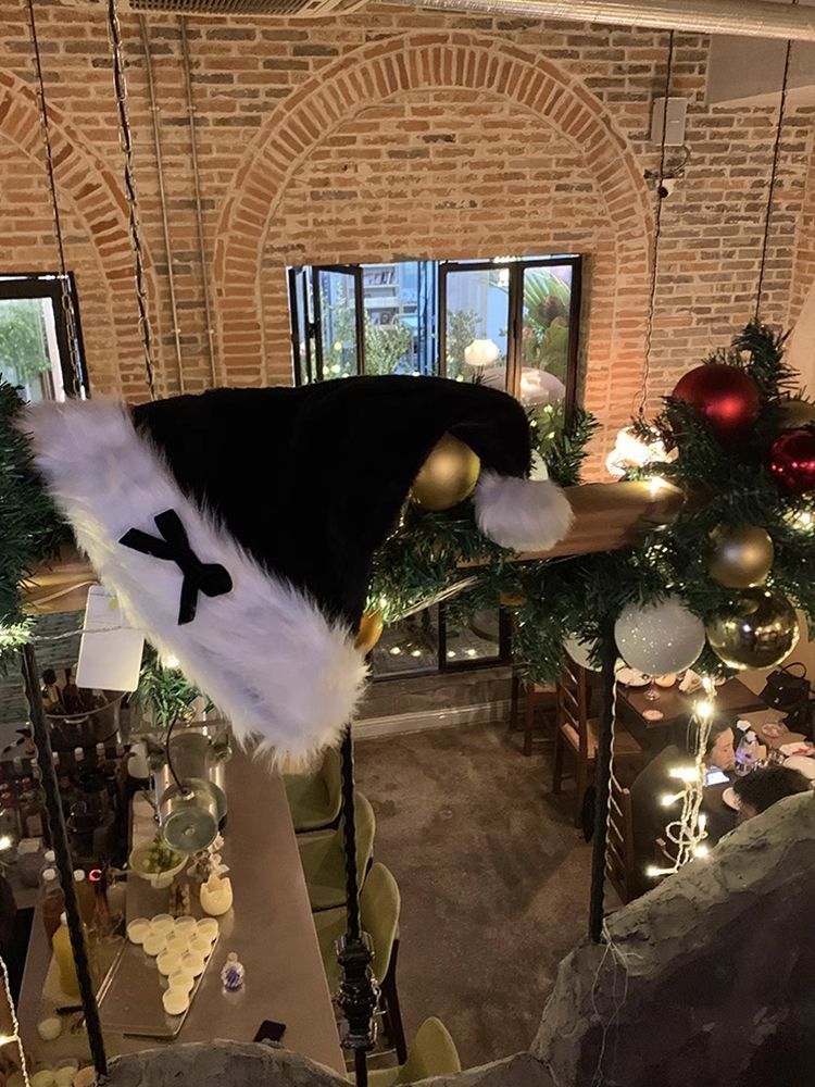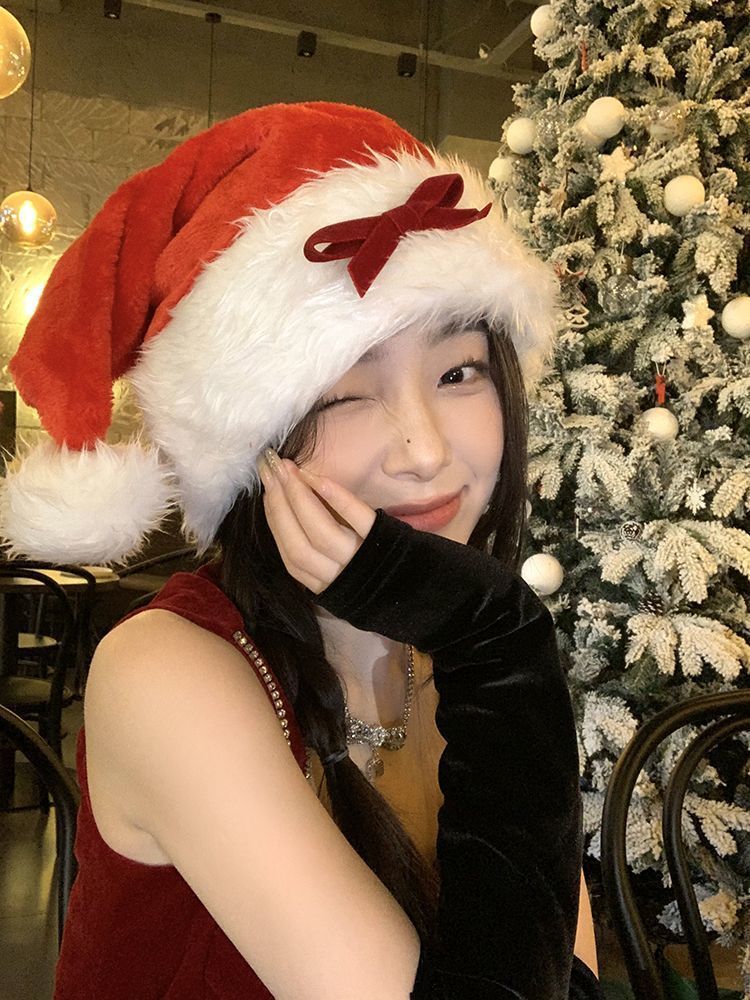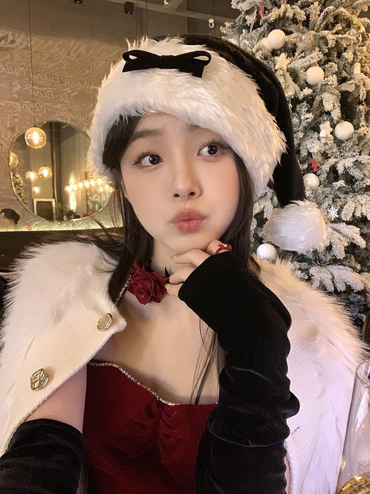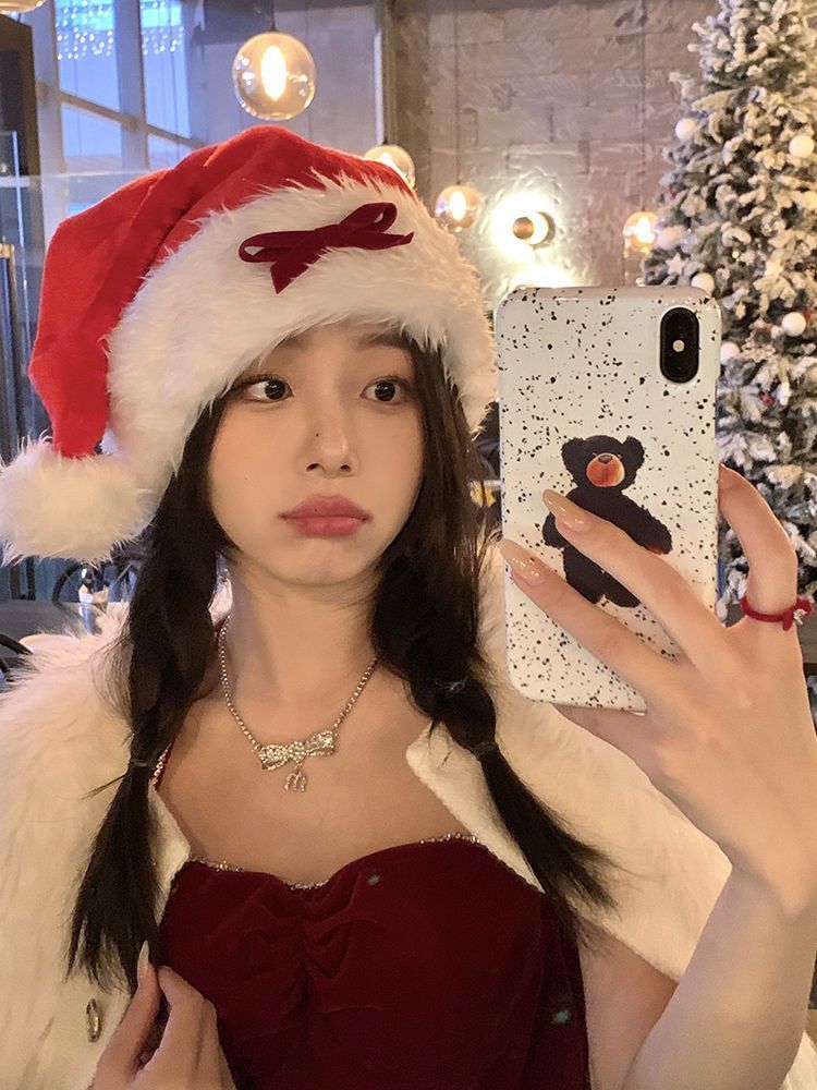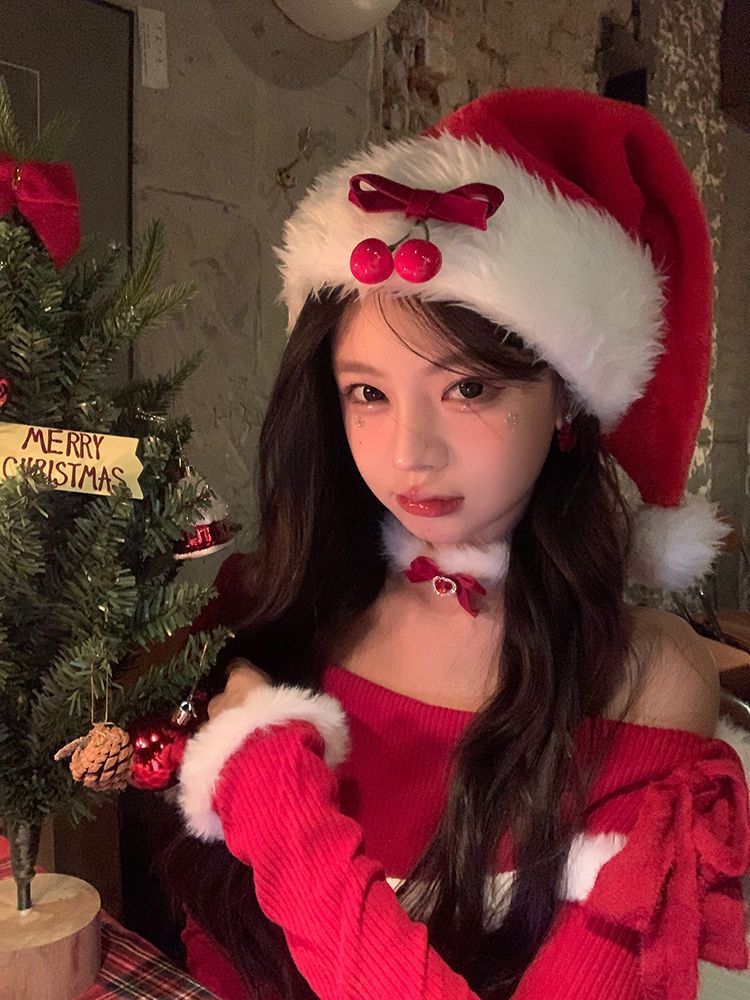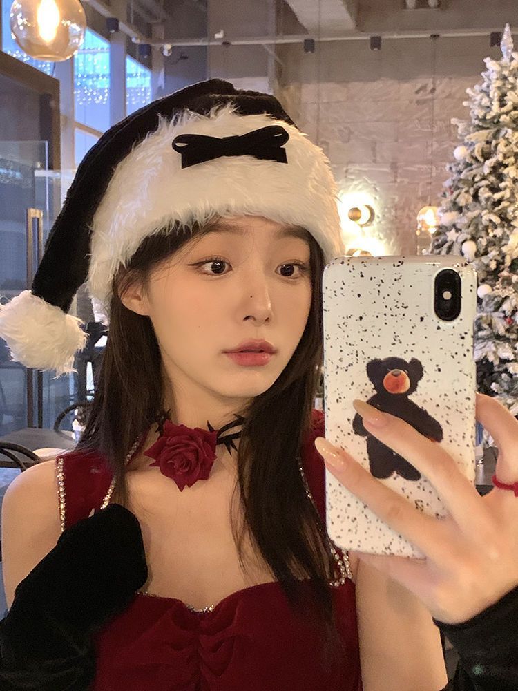 原创秋冬樱桃蝴蝶结毛绒圣诞老人帽圣诞节cos服装拍照头饰圣诞帽