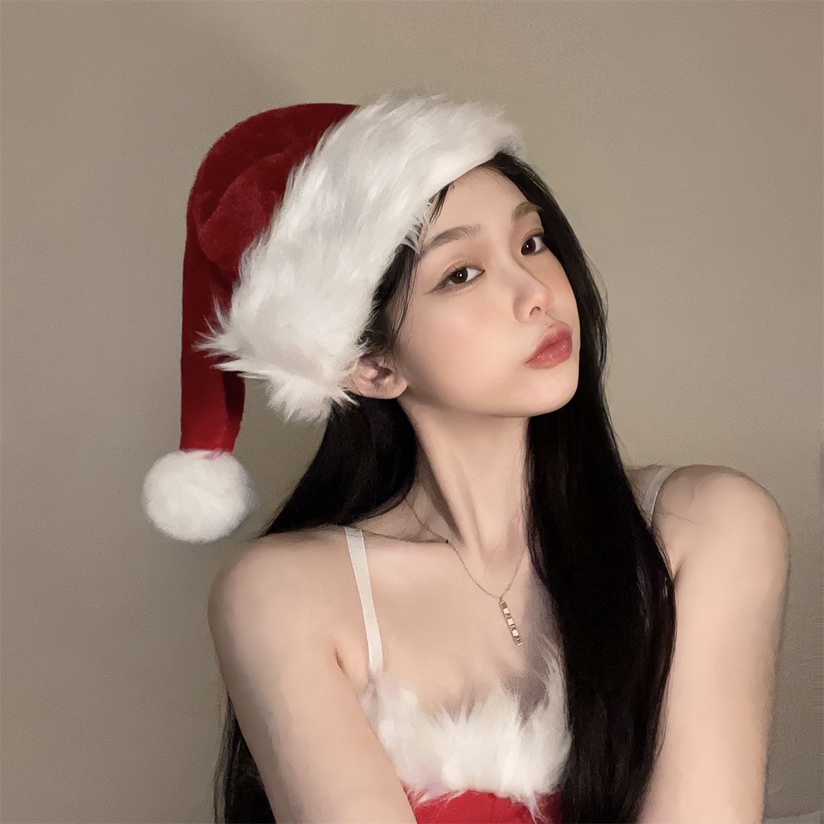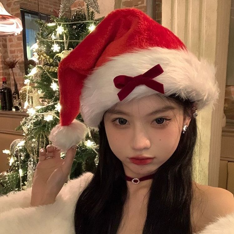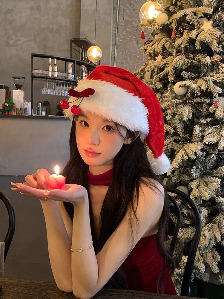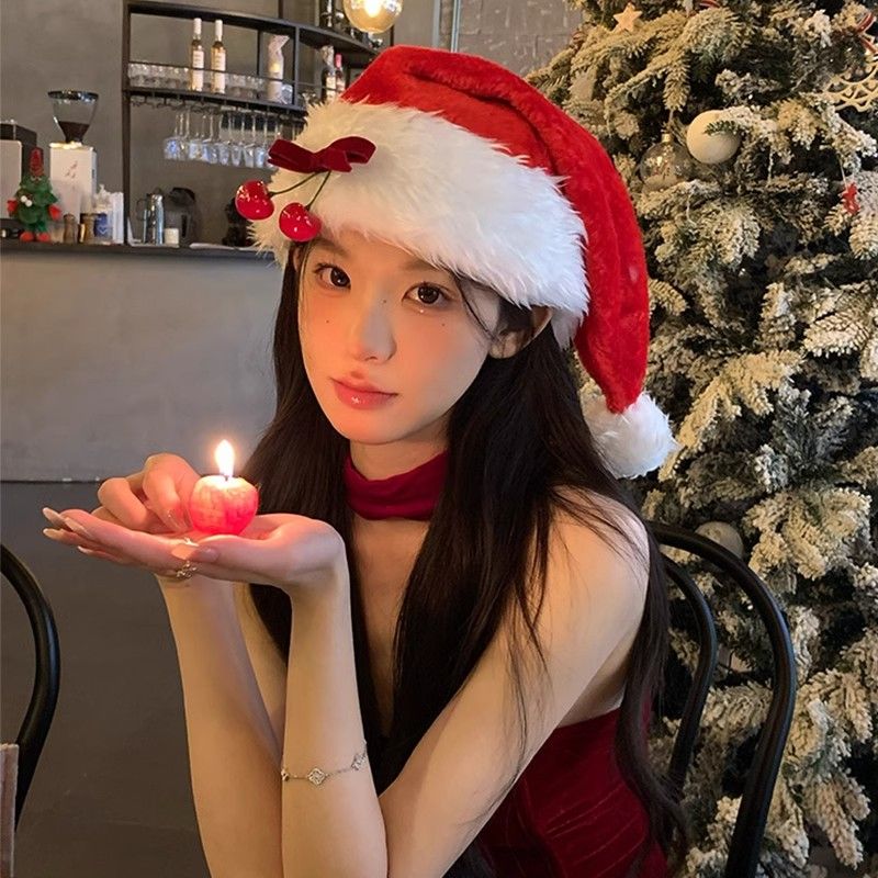 圣诞帽圣诞节氛围感樱桃蝴蝶结红色帽子成人装饰拍照节日道具穿搭