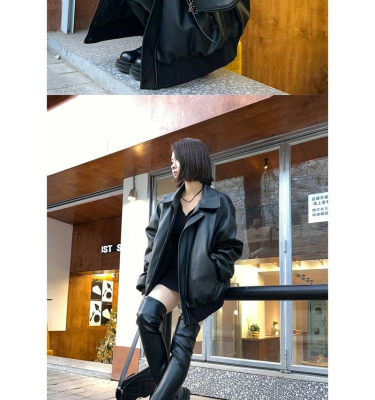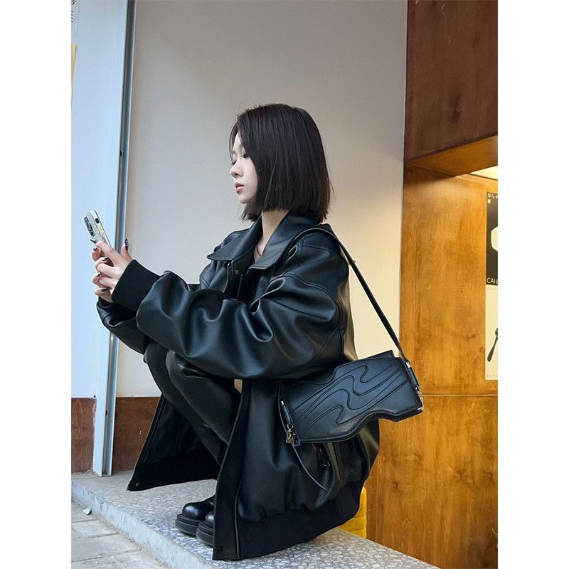 春秋学生pu皮黑色皮夹克外套女美式复古高级感显瘦机车上衣ins潮