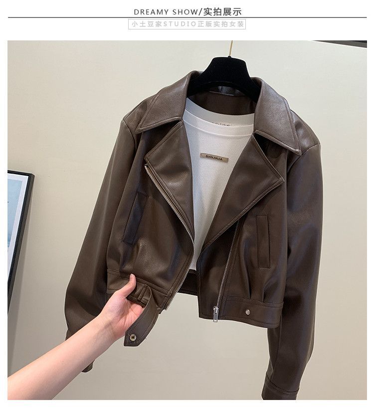欧货皮衣外套女加绒秋季新款气质翻领小个子短款PU皮显瘦百搭夹克