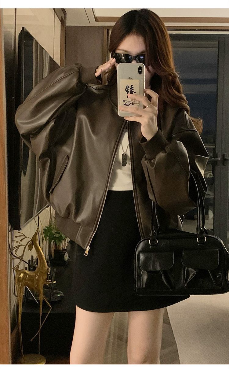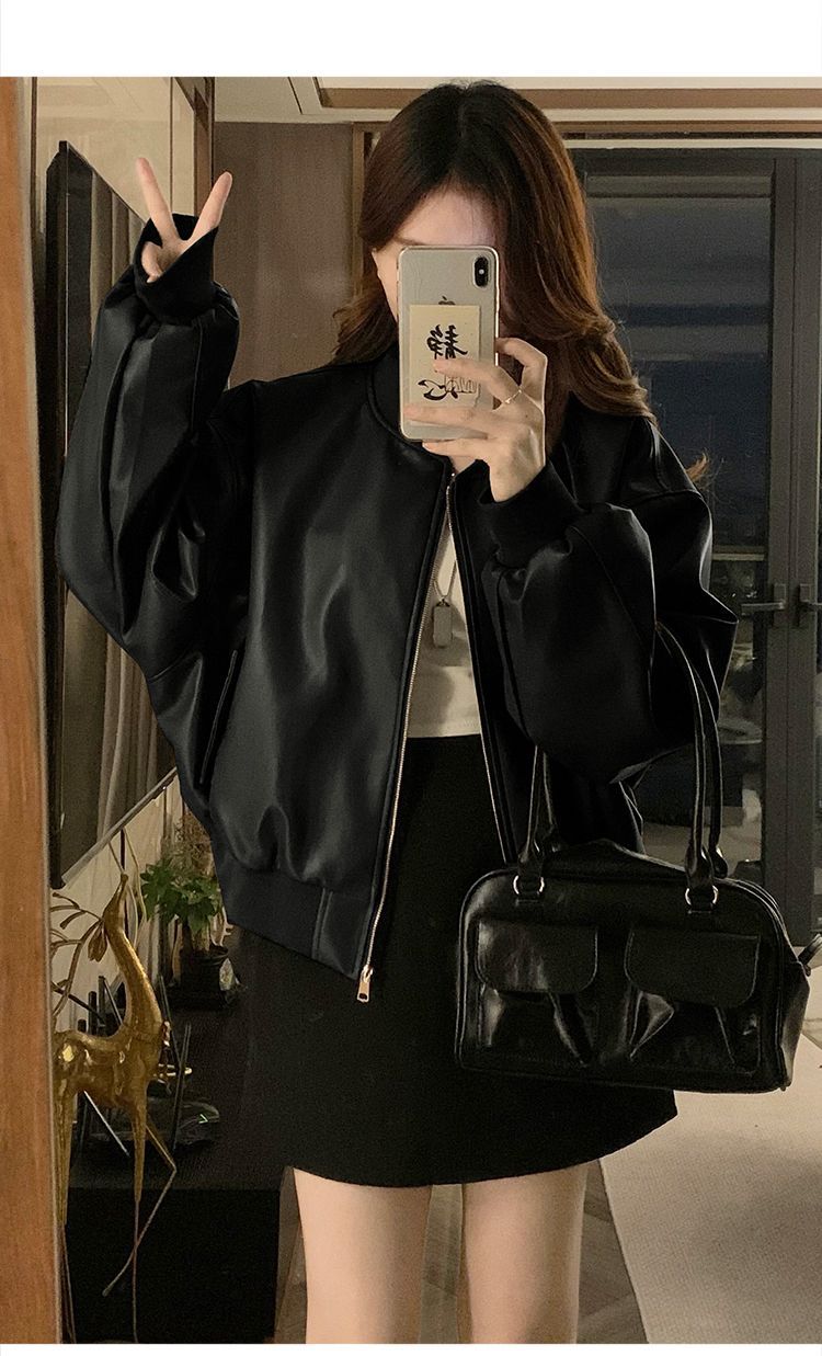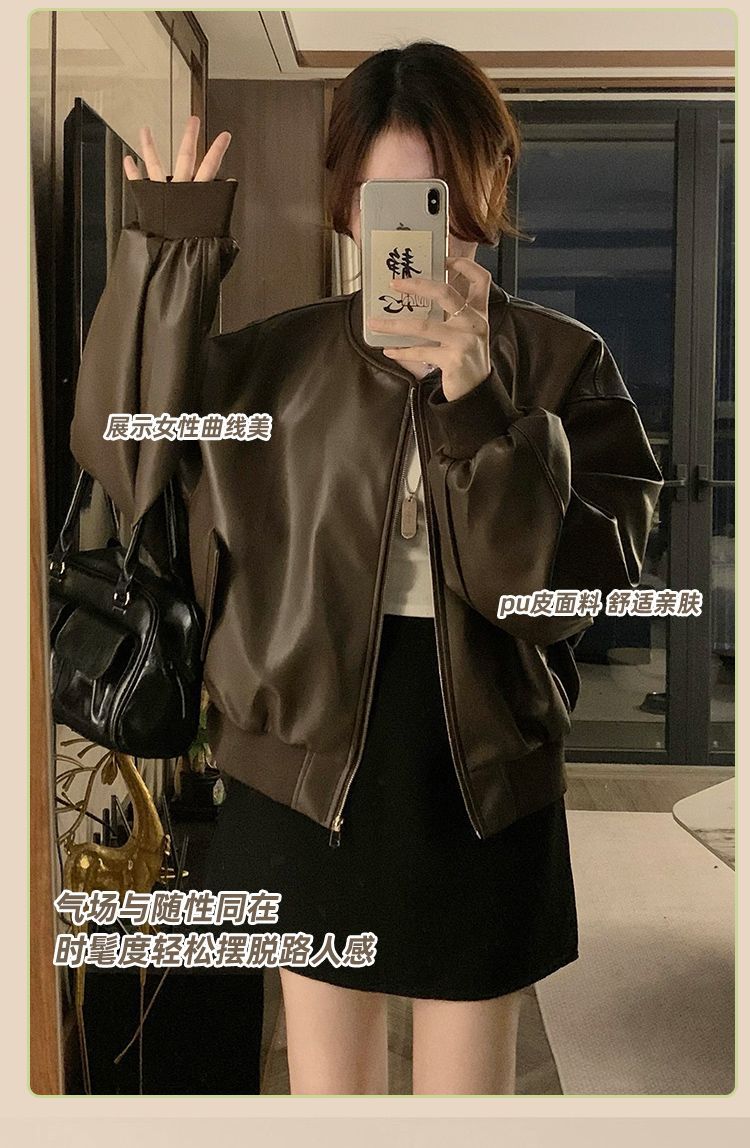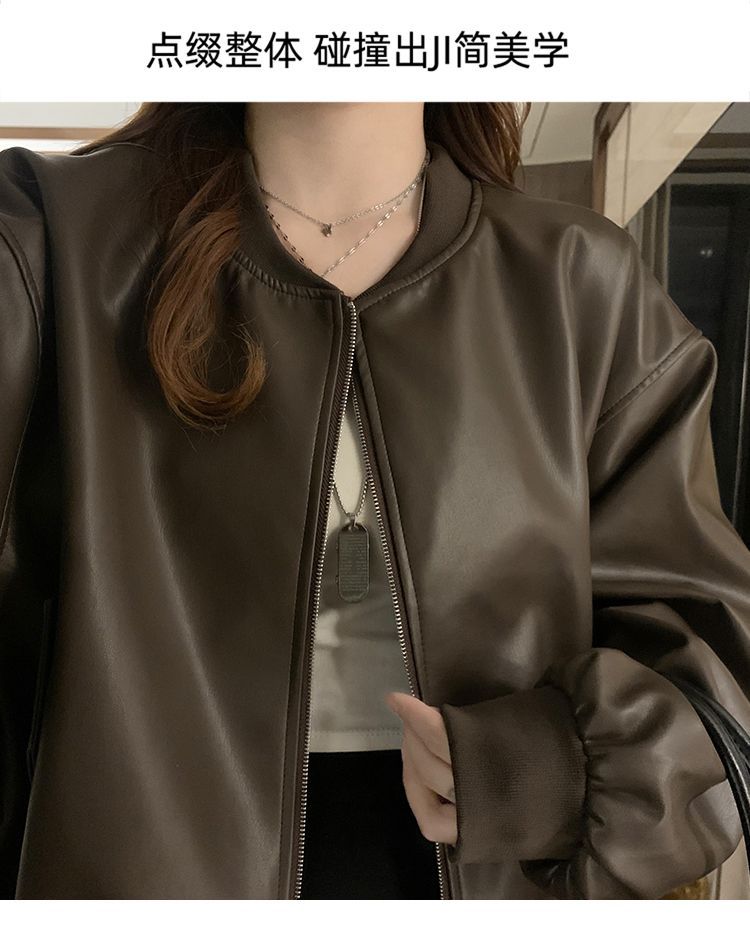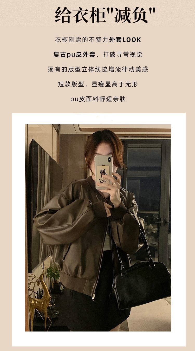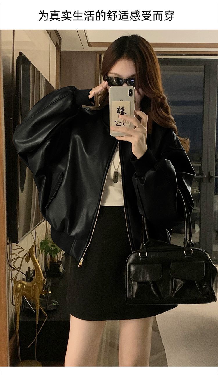 黑色复古廓形皮衣外套皮夹克女春季新款甜酷风机车服棒球服上衣潮