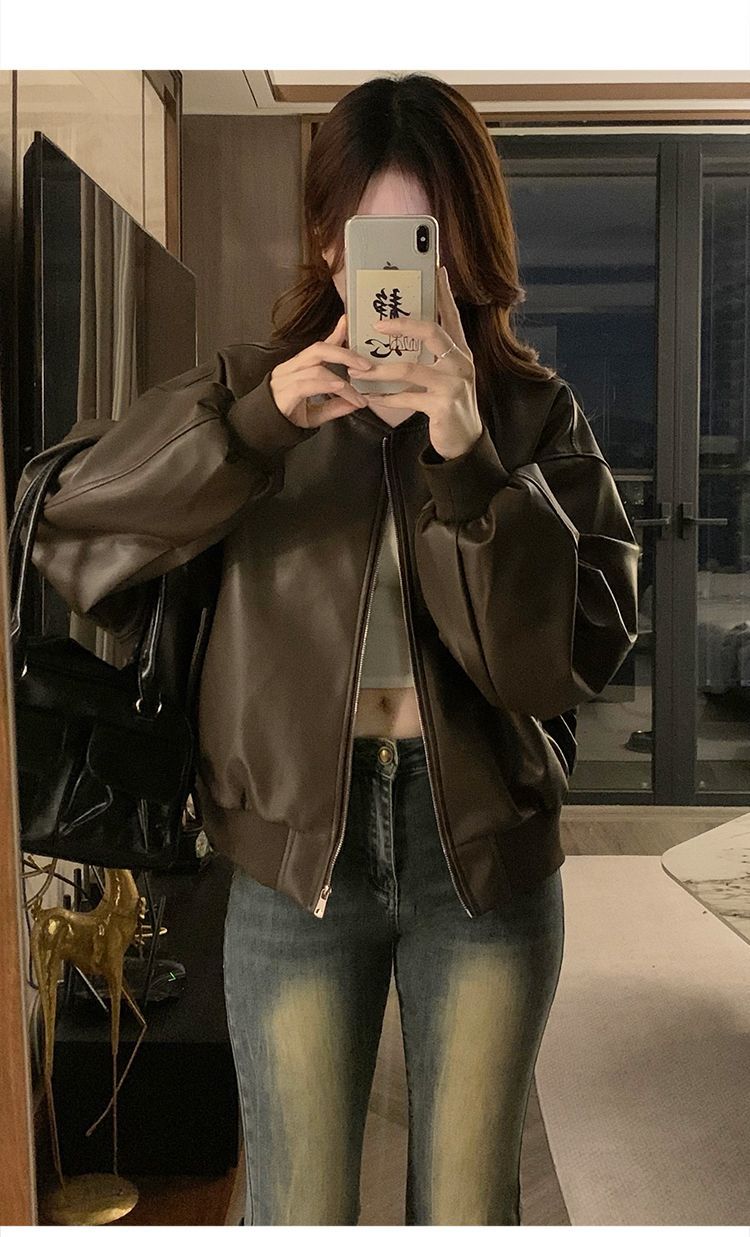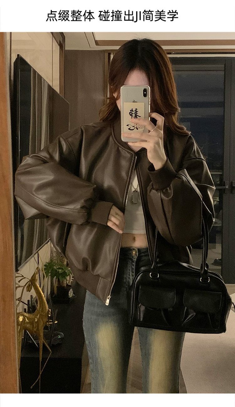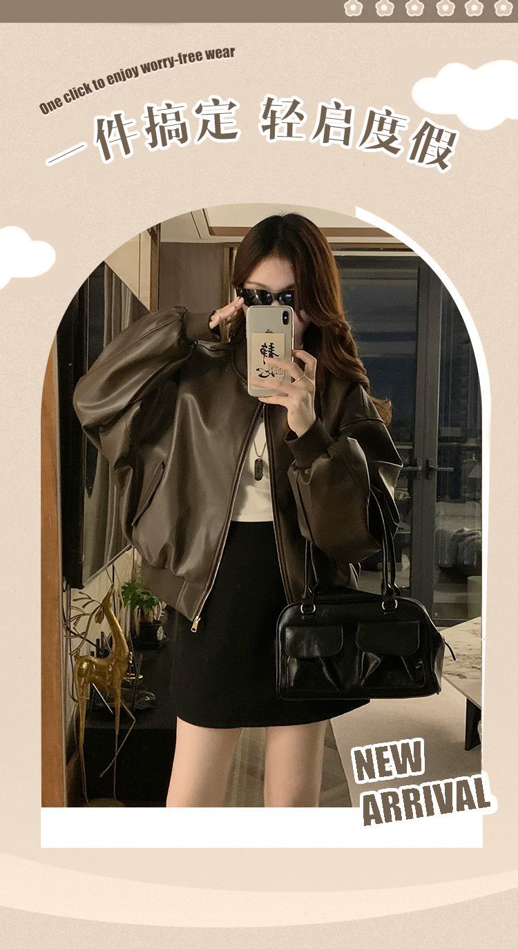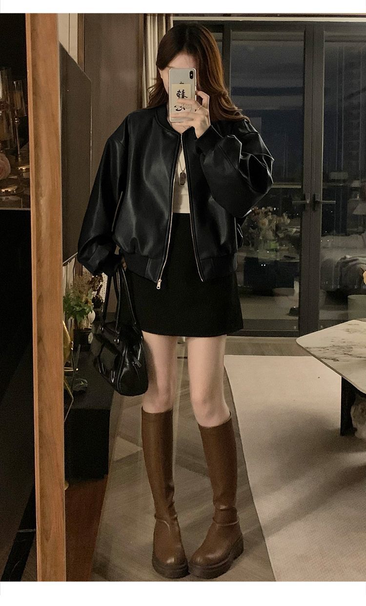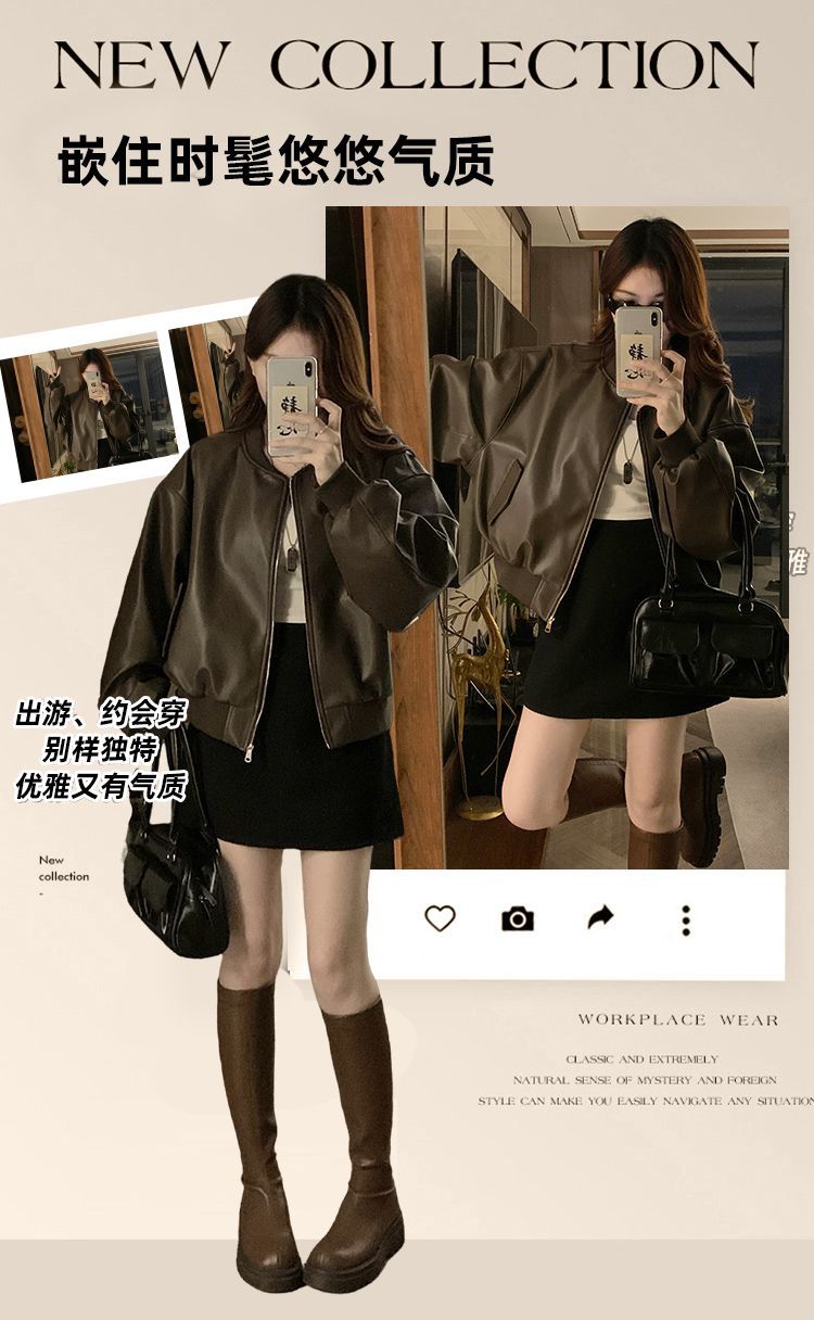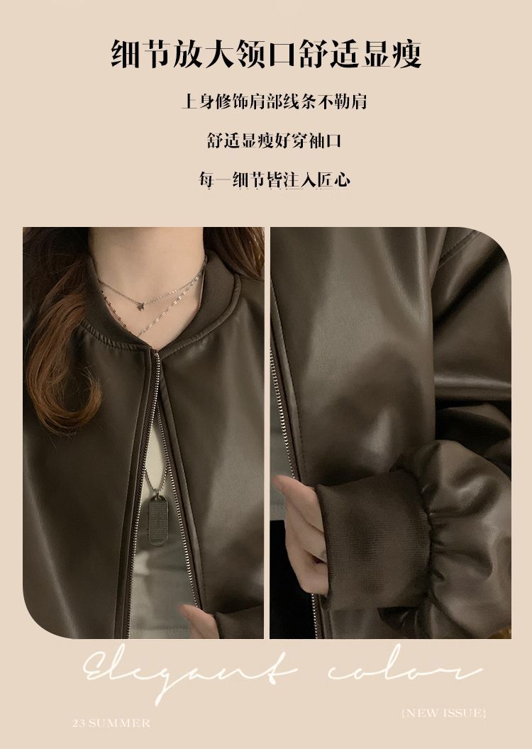 黑色复古廓形皮衣外套皮夹克女春季新款甜酷风机车服棒球服上衣潮