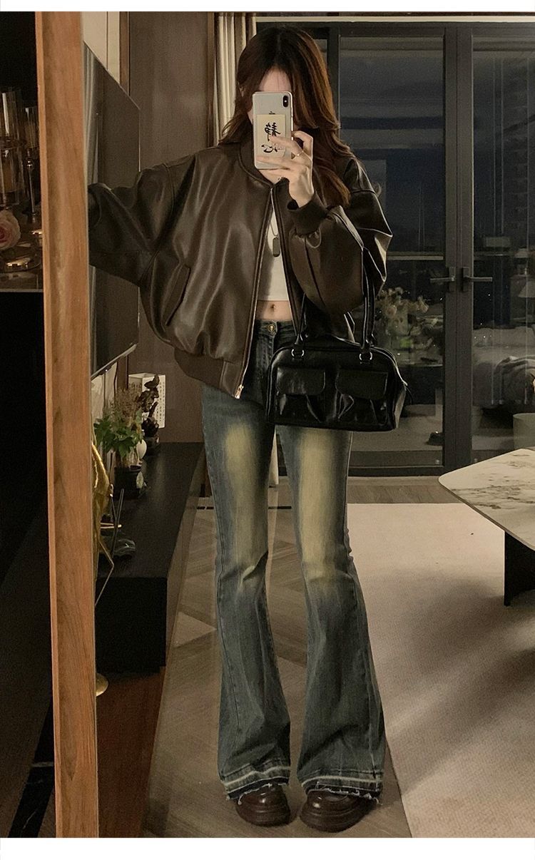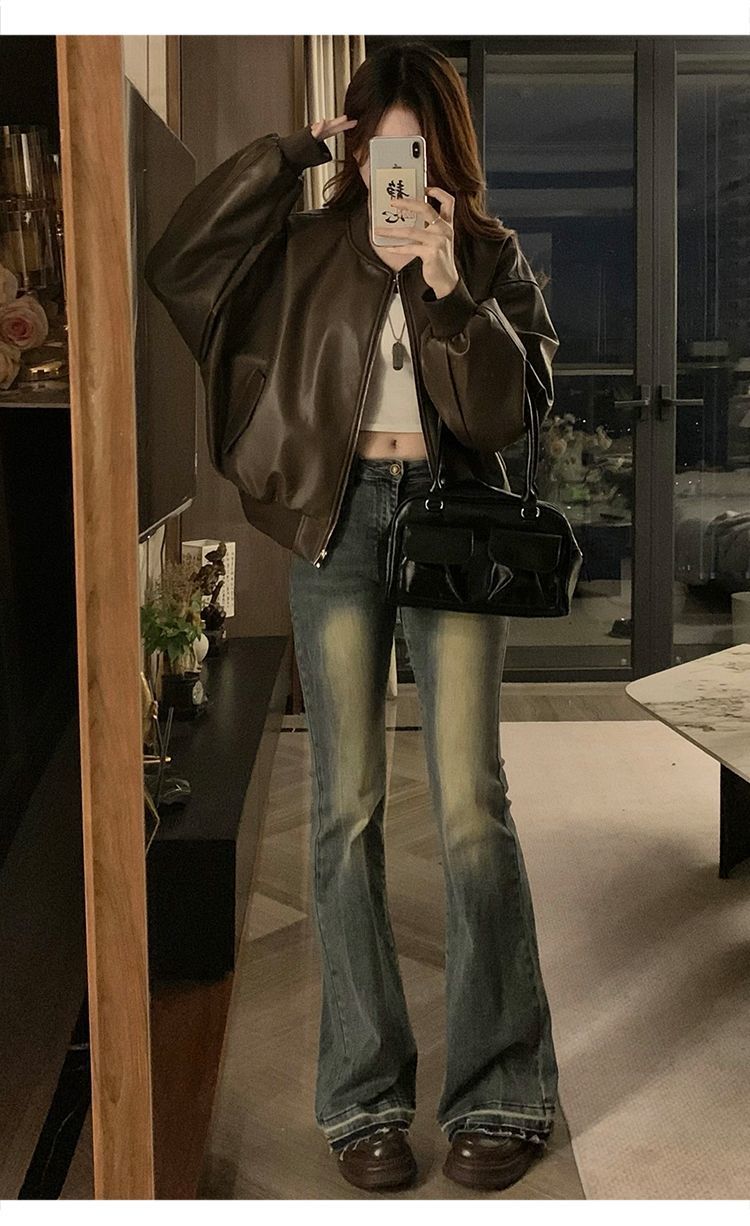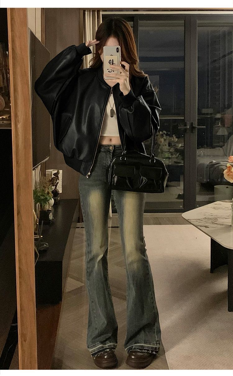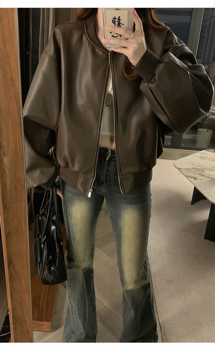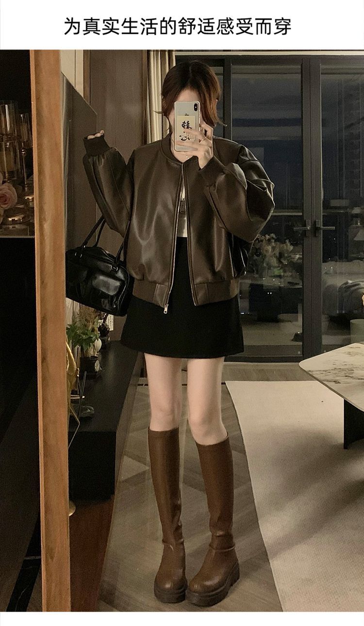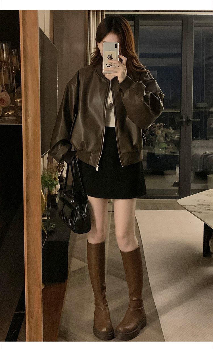 黑色复古廓形皮衣外套皮夹克女春季新款甜酷风机车服棒球服上衣潮