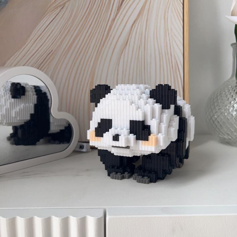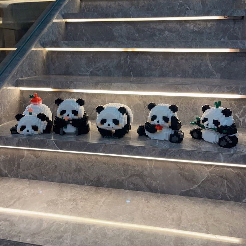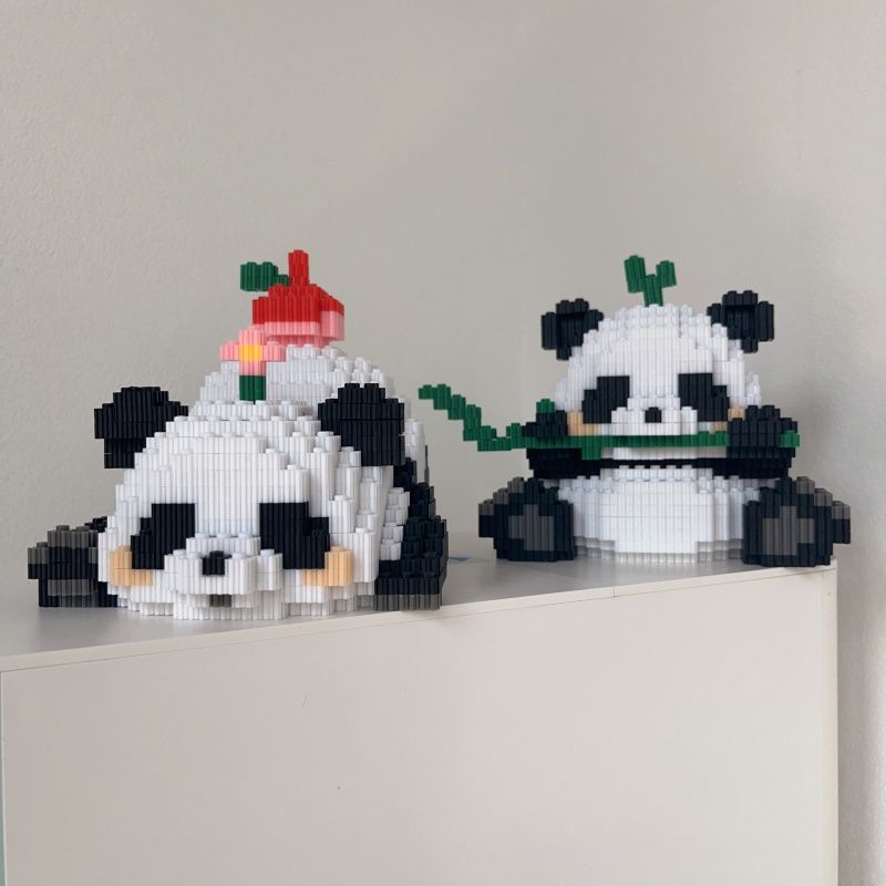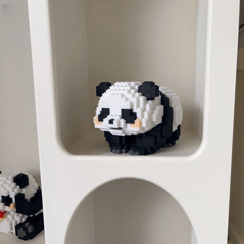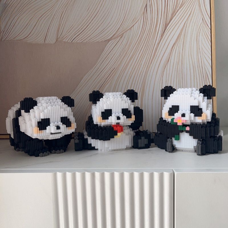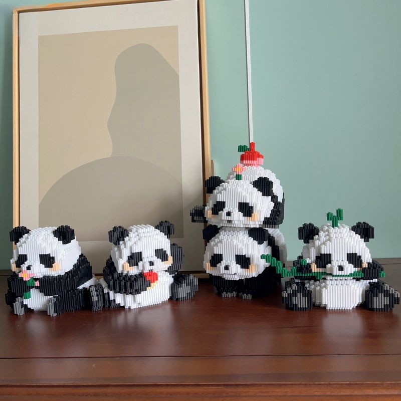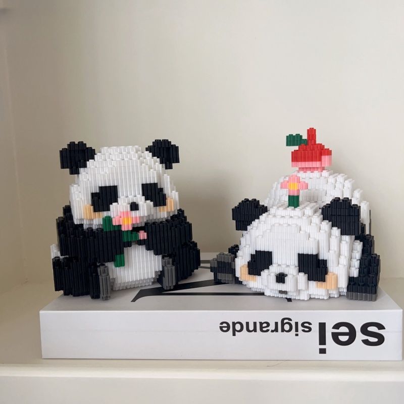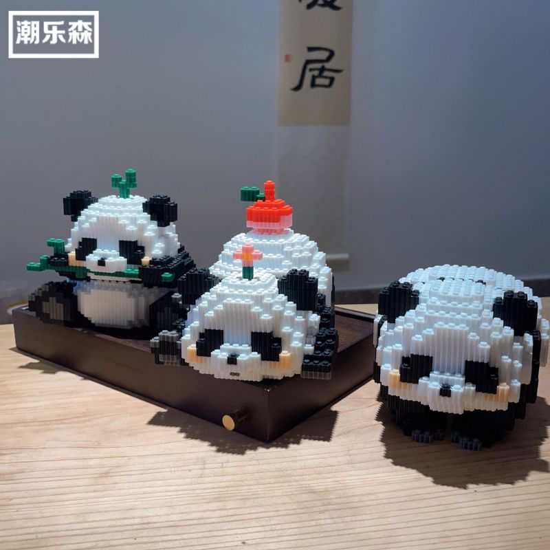 清仓超萌花花熊猫小颗粒兼容乐高积木玩具高难度摆件拼图女孩礼物