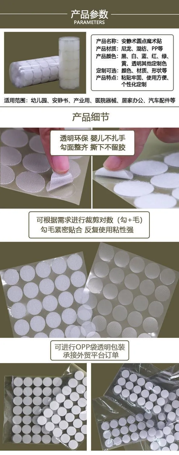 圆形背胶魔术贴幼儿园安静书贴亲子手工贴透明双面背胶自粘