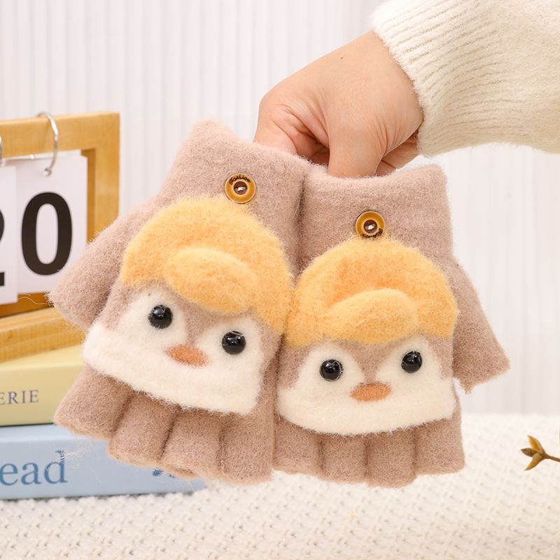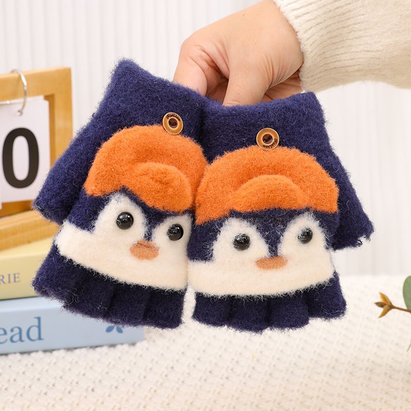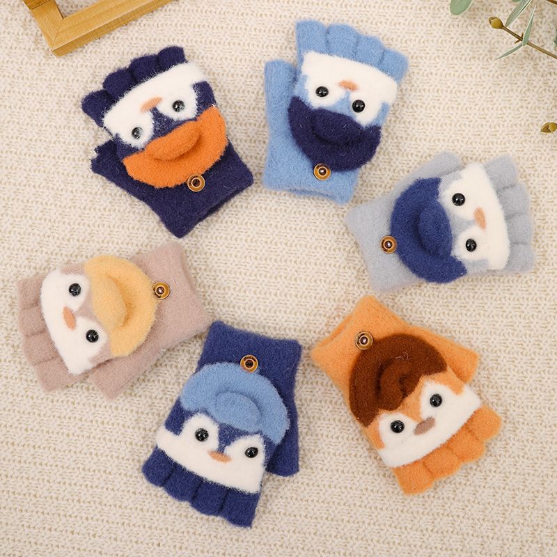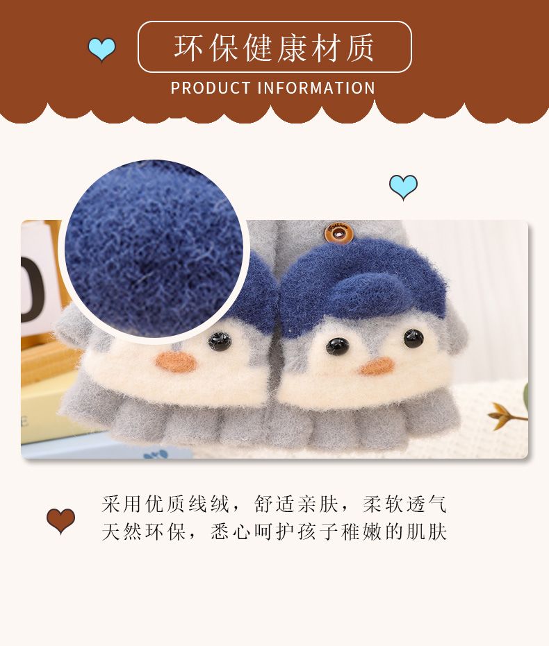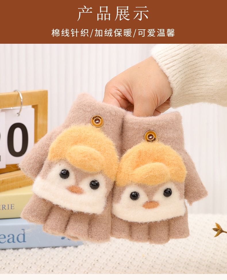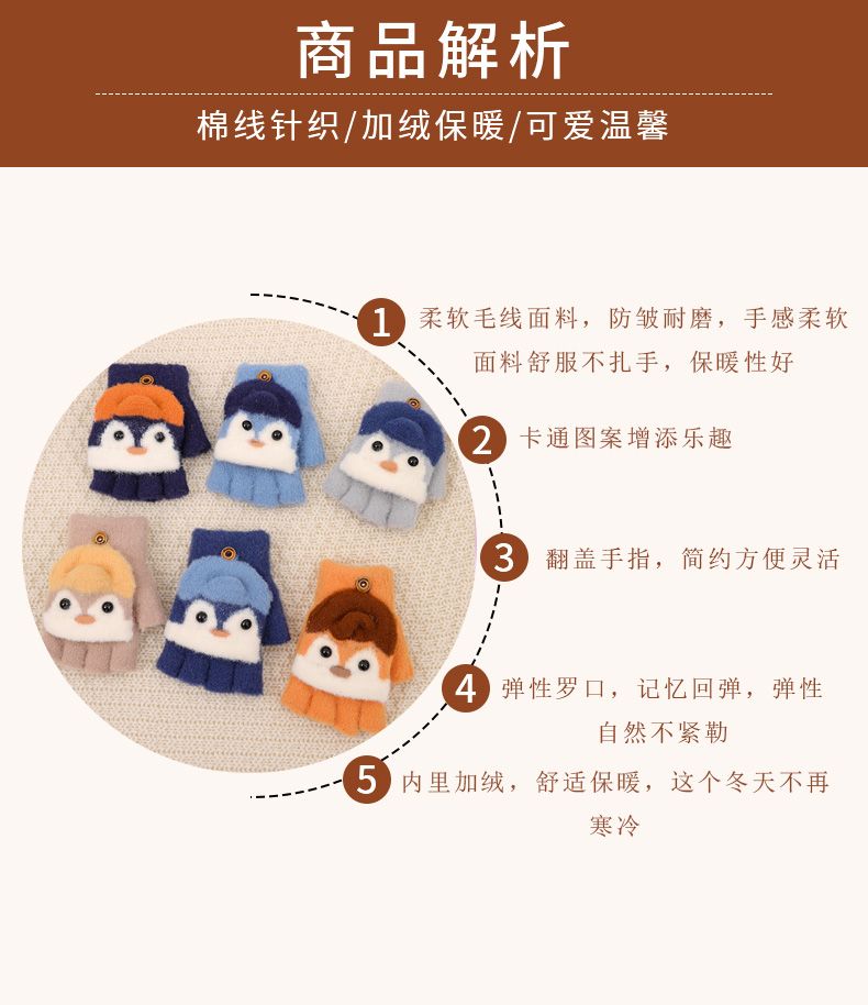 儿童手套冬季保暖学生加绒加厚翻盖手套半指露指针织毛线小孩手套