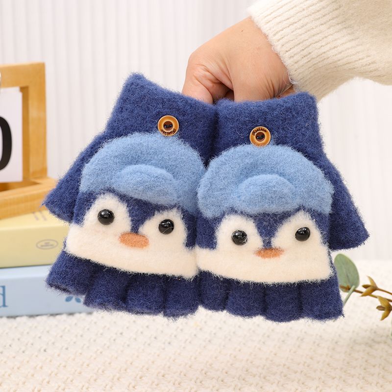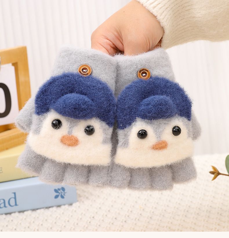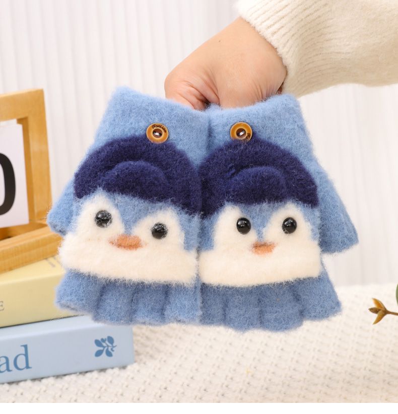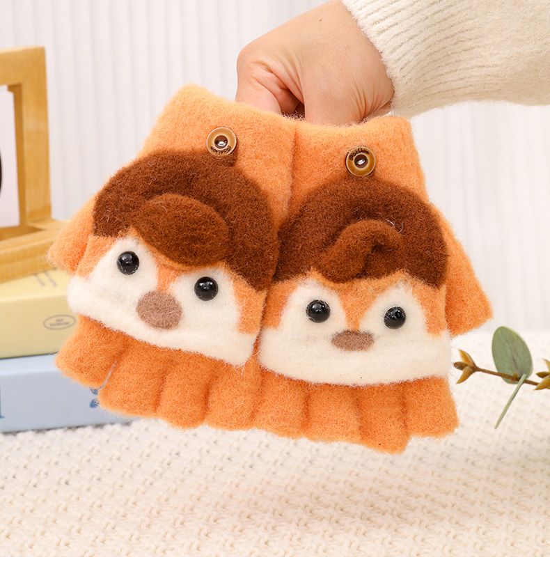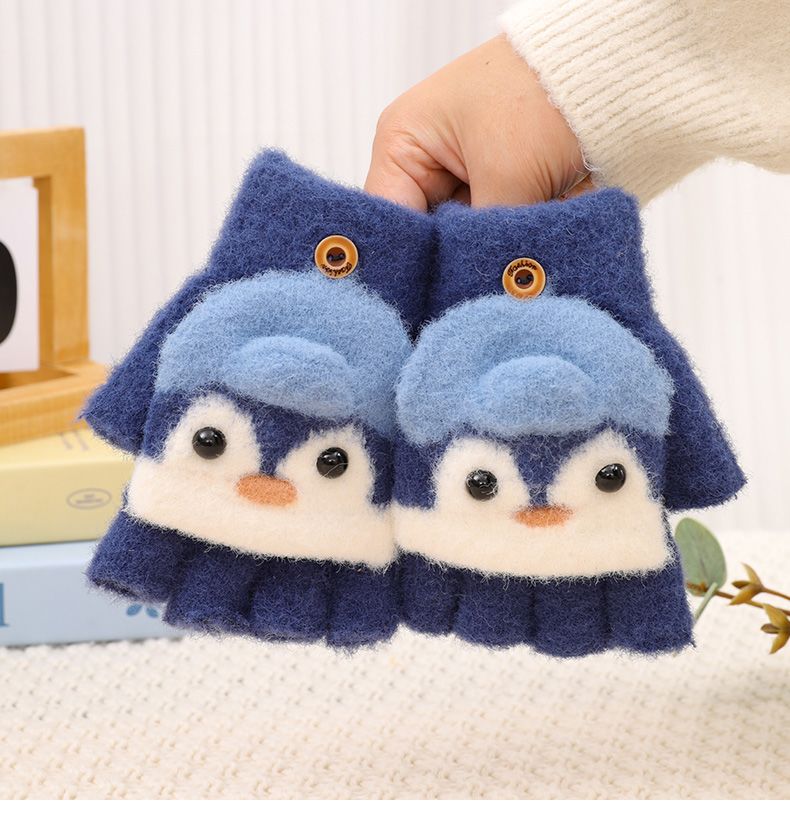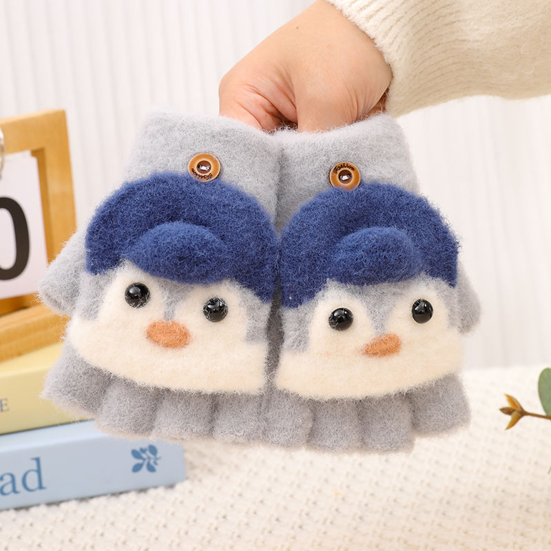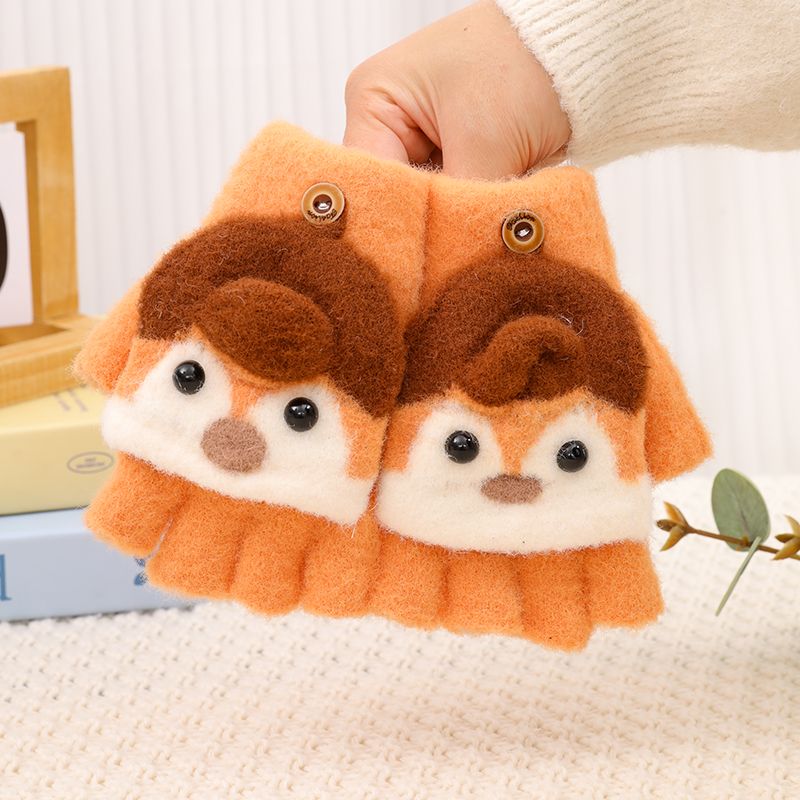 儿童手套冬季保暖学生加绒加厚翻盖手套半指露指针织毛线小孩手套
