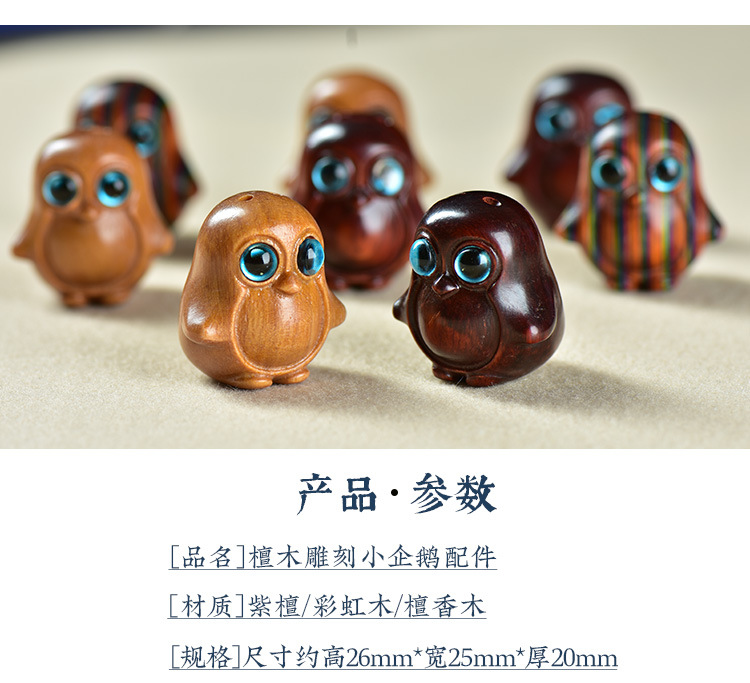 彩虹木可爱呆萌小企鹅文玩把件紫檀檀香木diy手机钥匙扣吊坠挂件