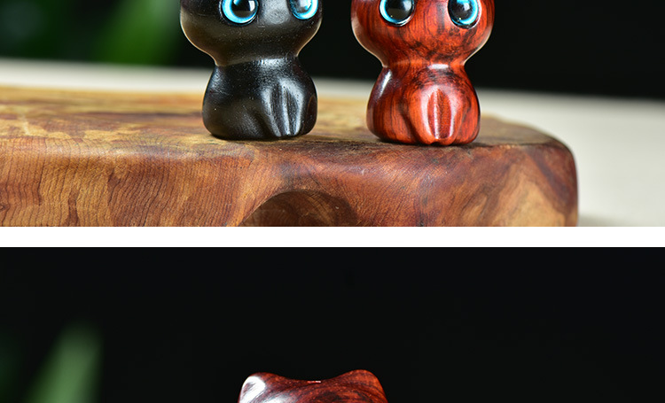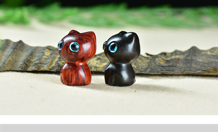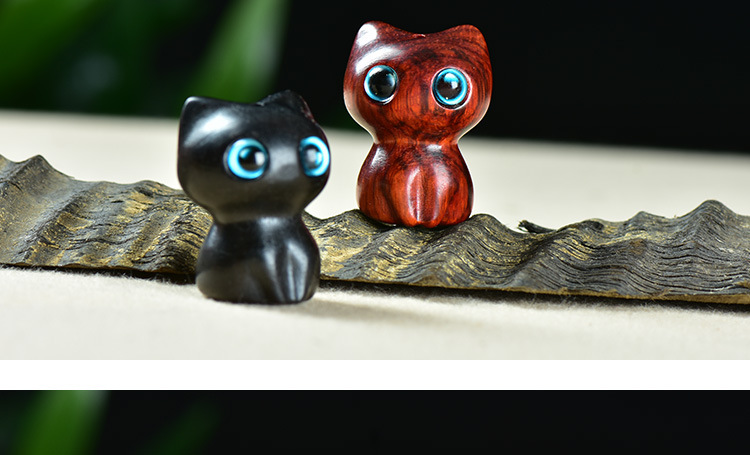 紫檀木黑檀雕刻大眼萌猫咪吊坠钥匙扣diy情侣包挂件文玩饰品配件