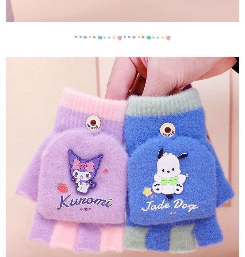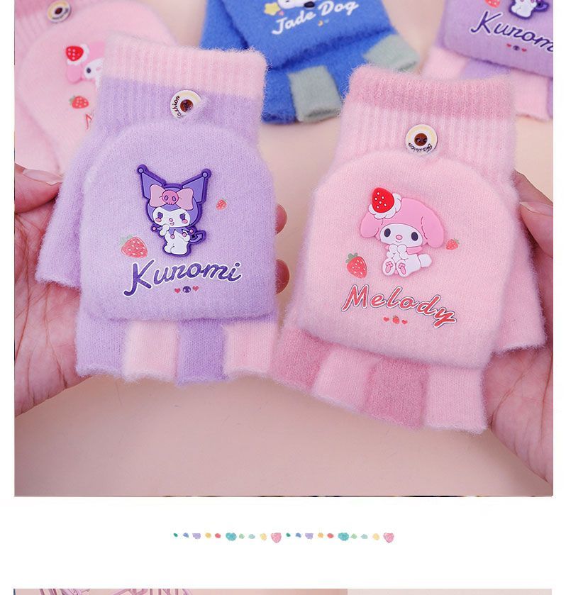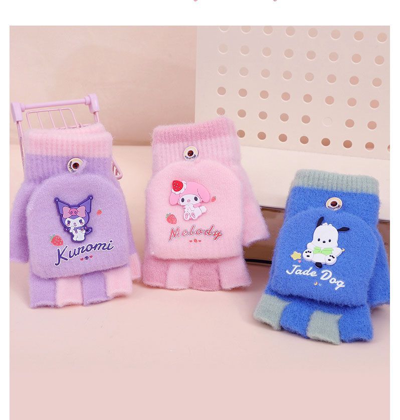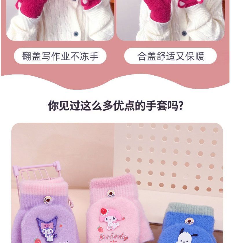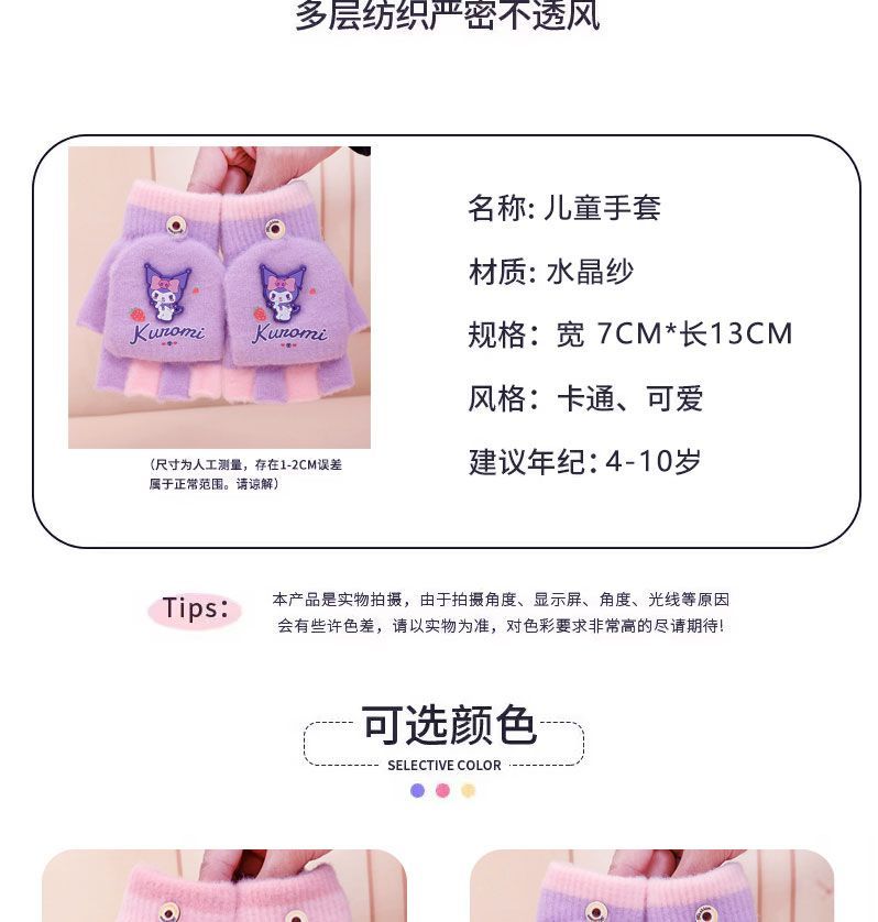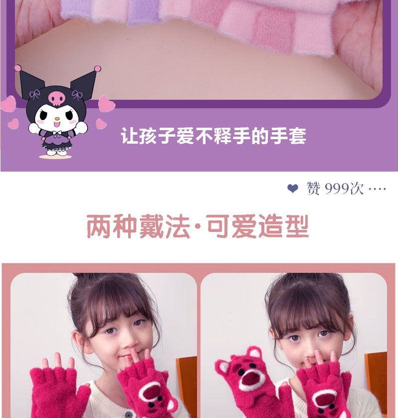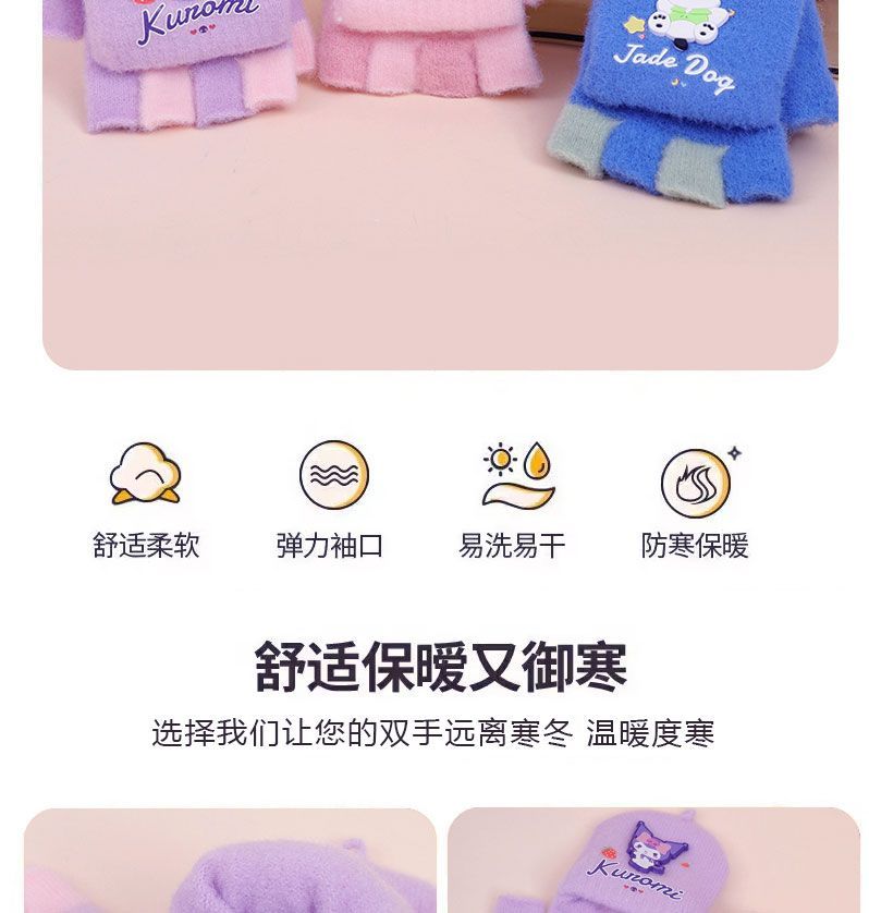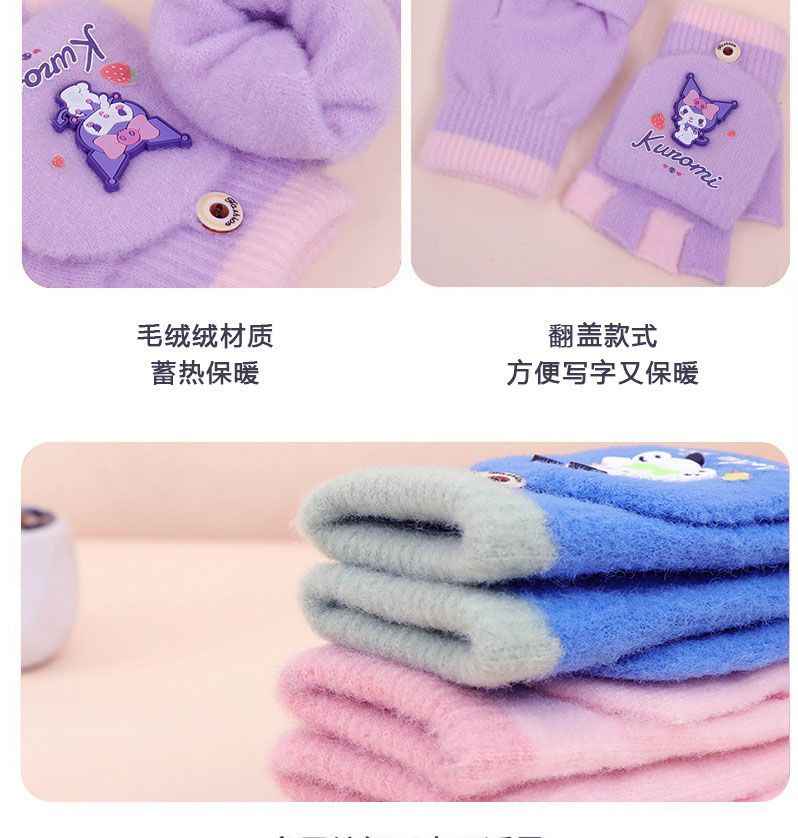 儿童手套秋冬季保暖可爱小孩卡通库洛米女童半指翻盖宝宝五指写字