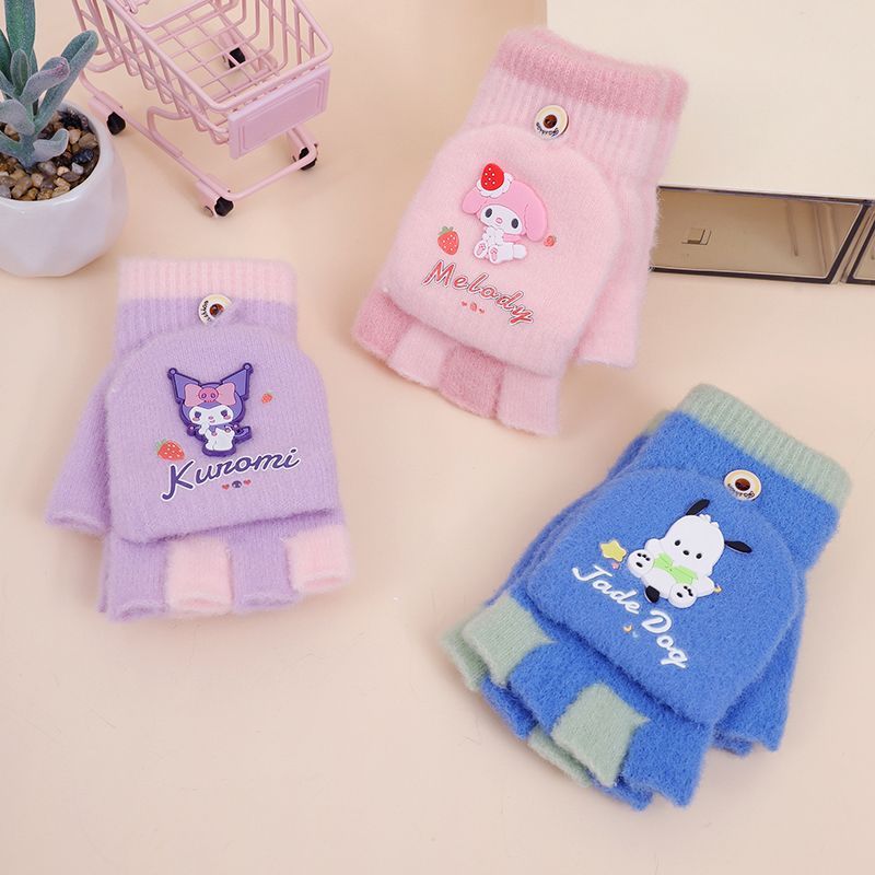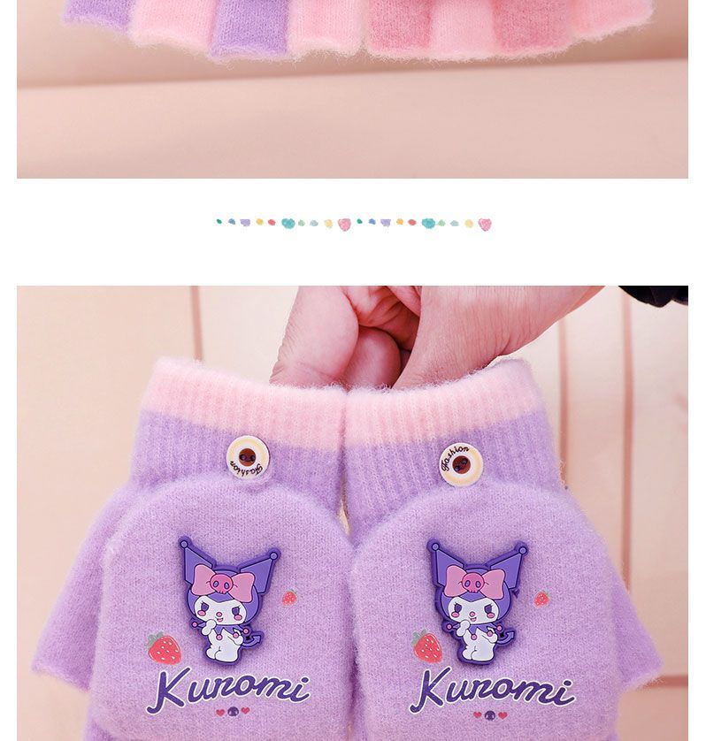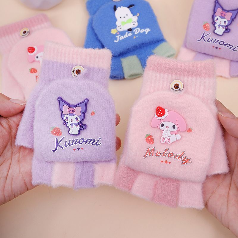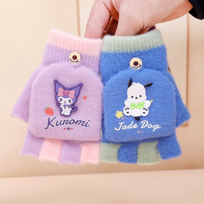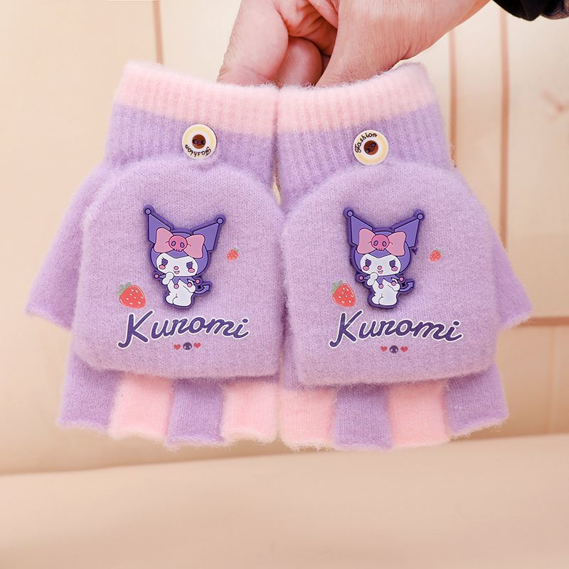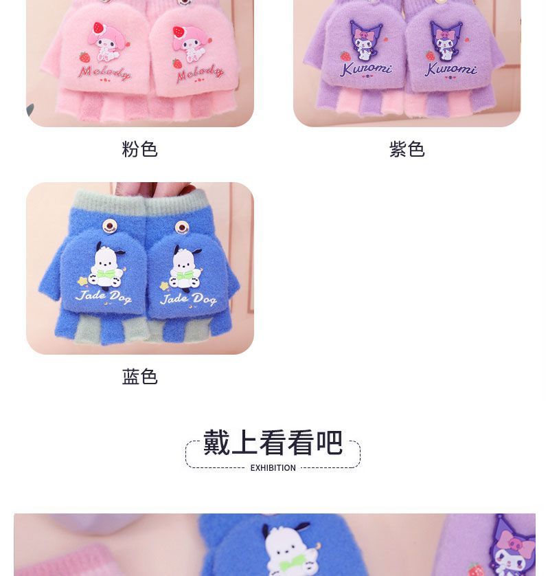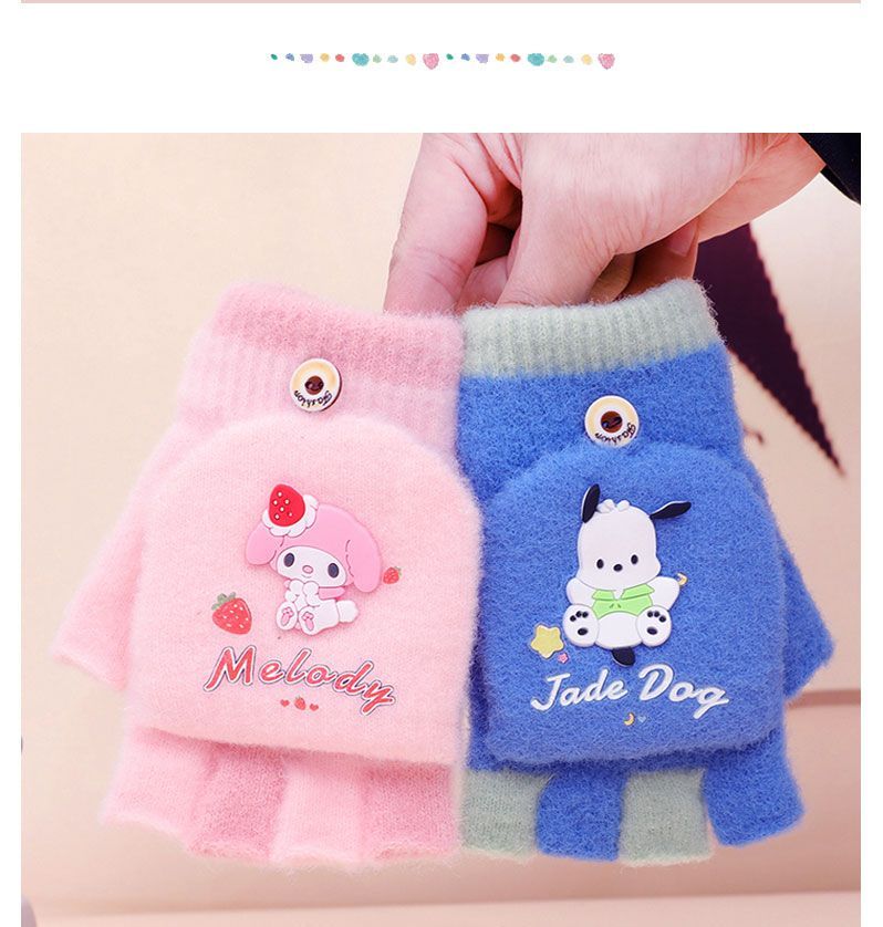 儿童手套秋冬季保暖可爱小孩卡通库洛米女童半指翻盖宝宝五指写字