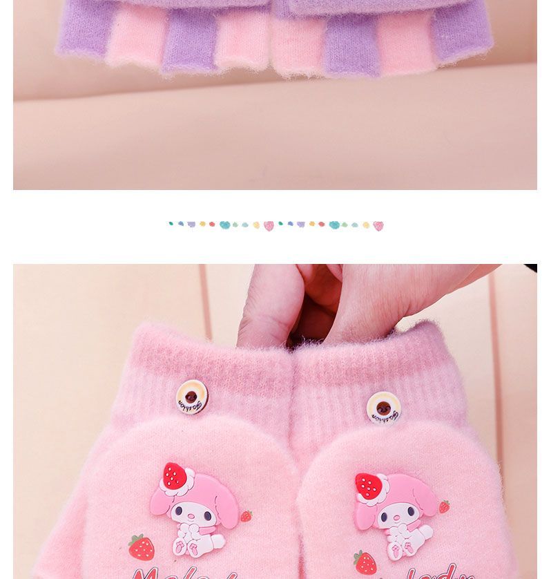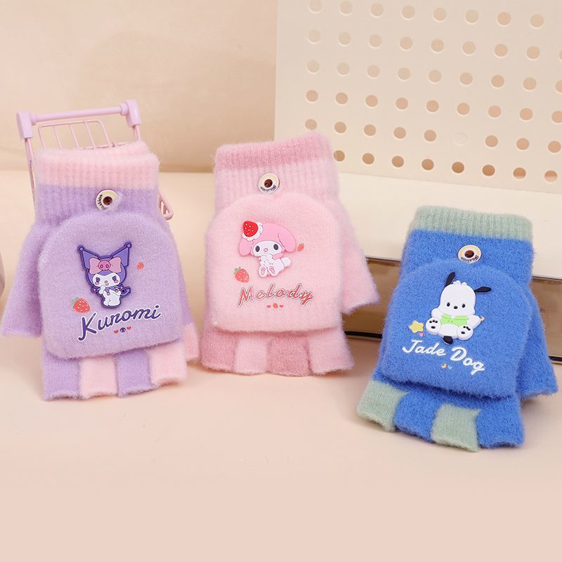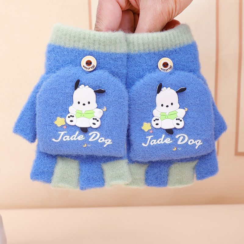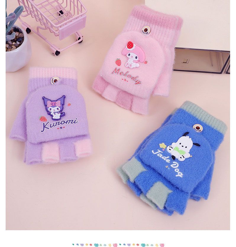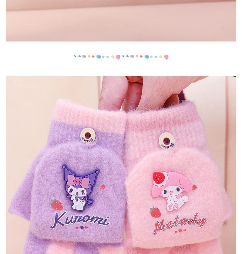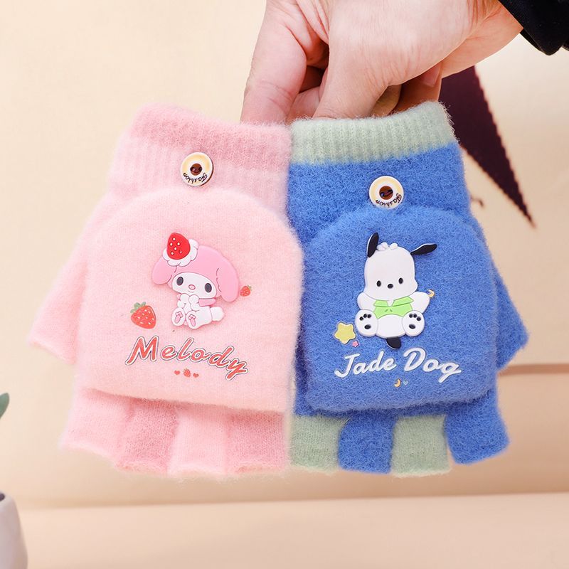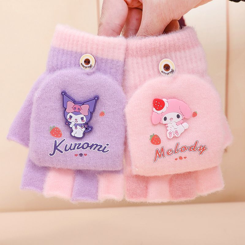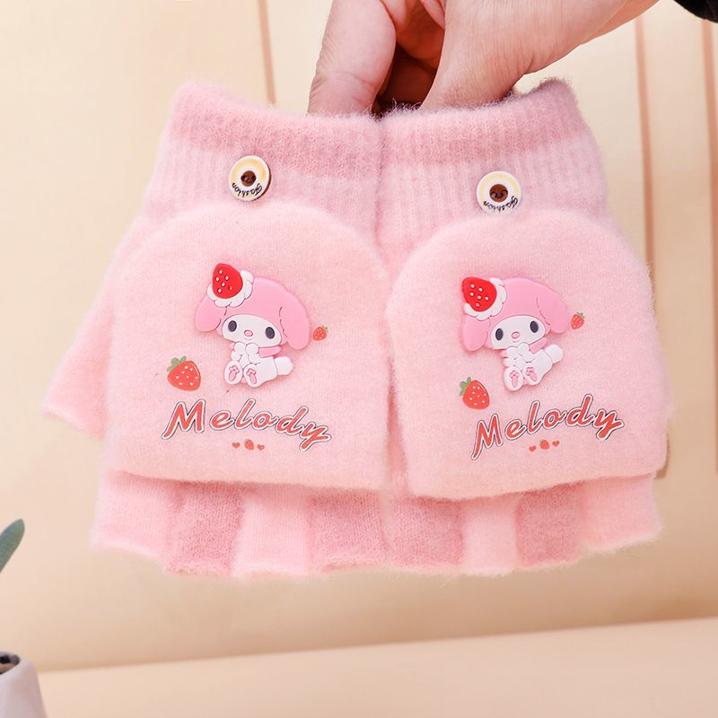 儿童手套秋冬季保暖可爱小孩卡通库洛米女童半指翻盖宝宝五指写字