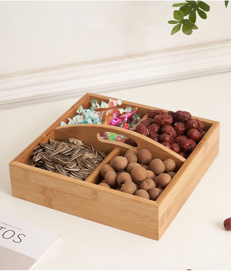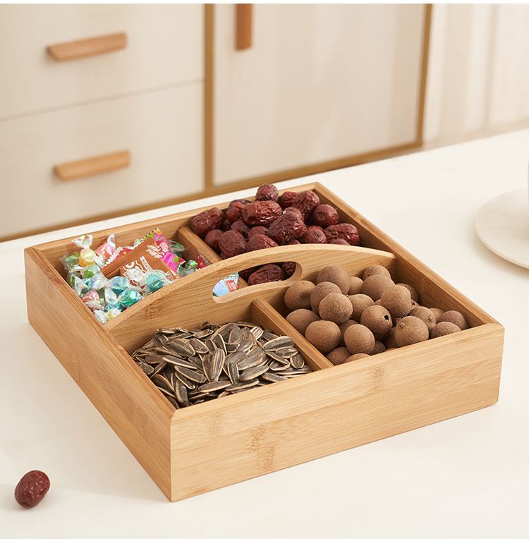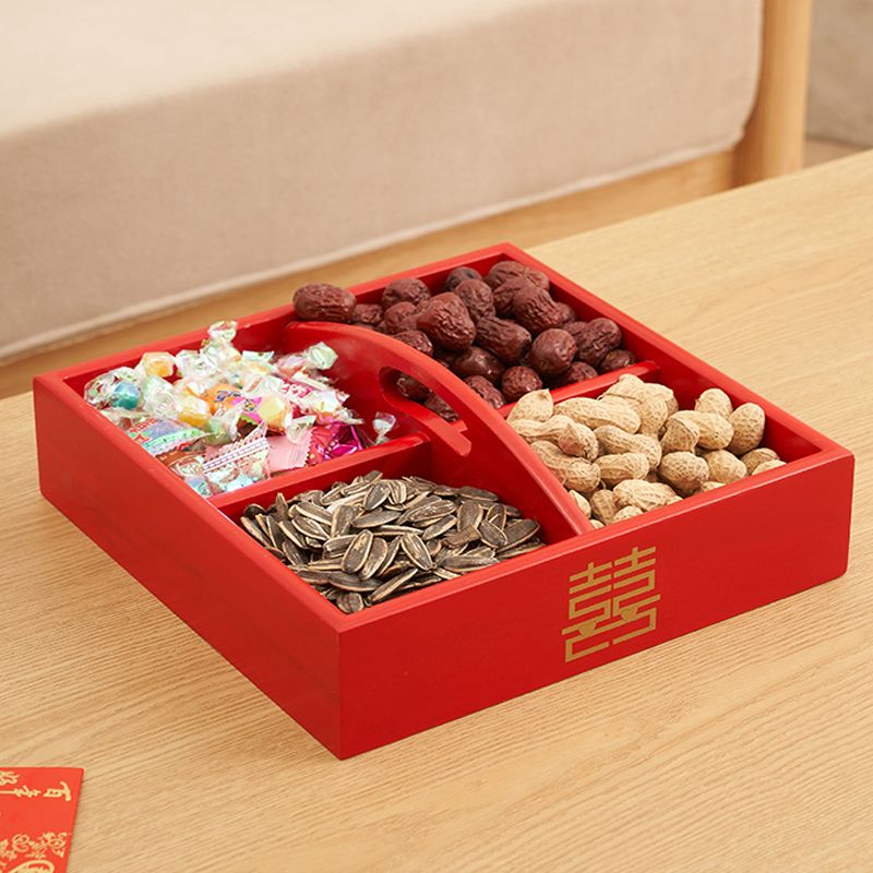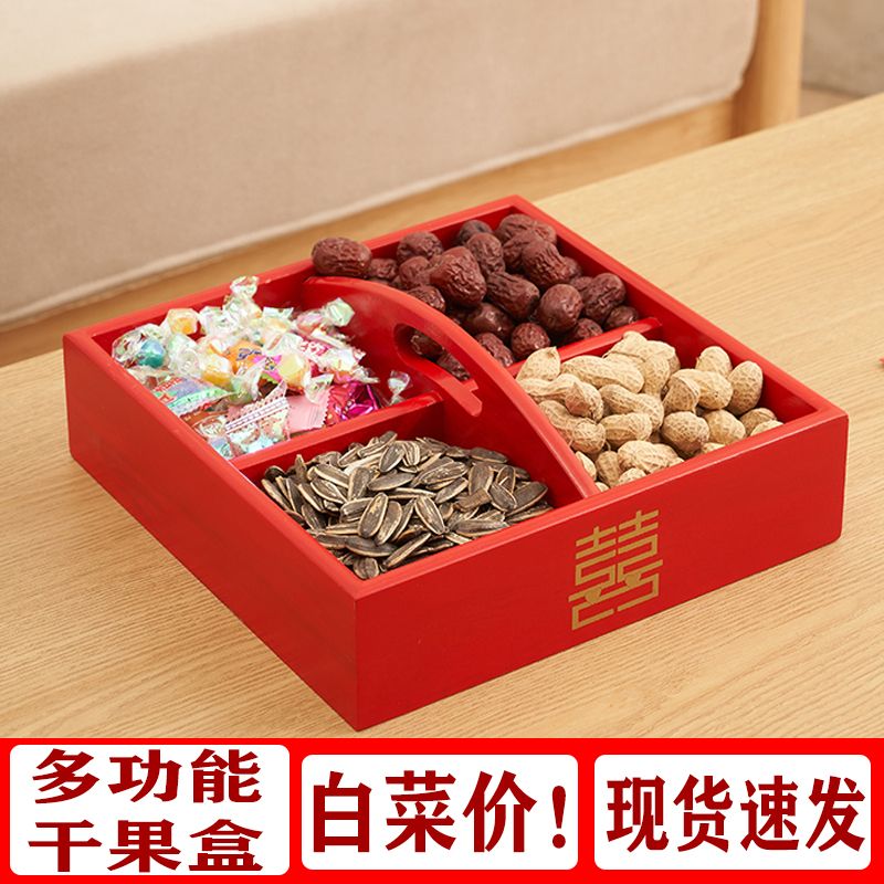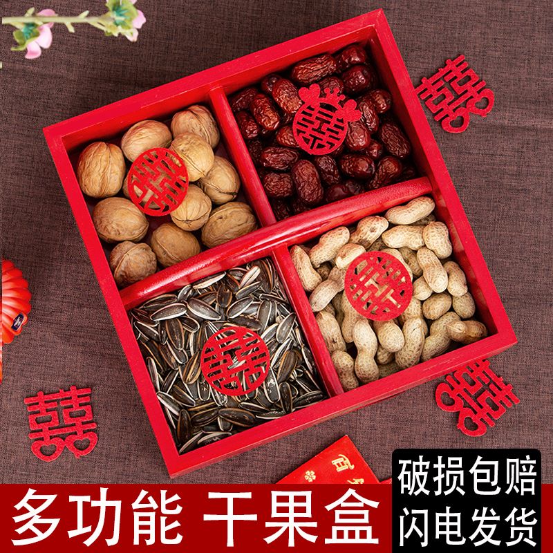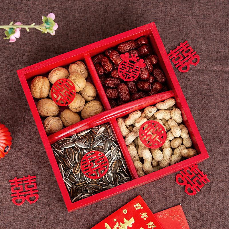 中式干果盘高档客厅点心盘订婚早生贵子四格盘结婚果盘创意干果盒