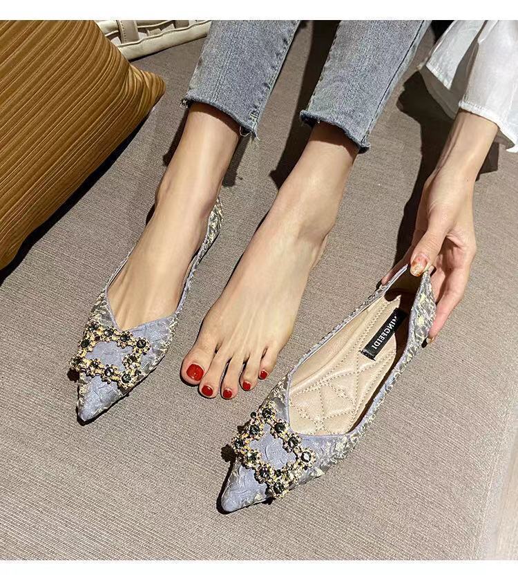 2022春季新款百搭四季鞋软底浅口尖头大码平底单鞋温柔仙女晚晚鞋