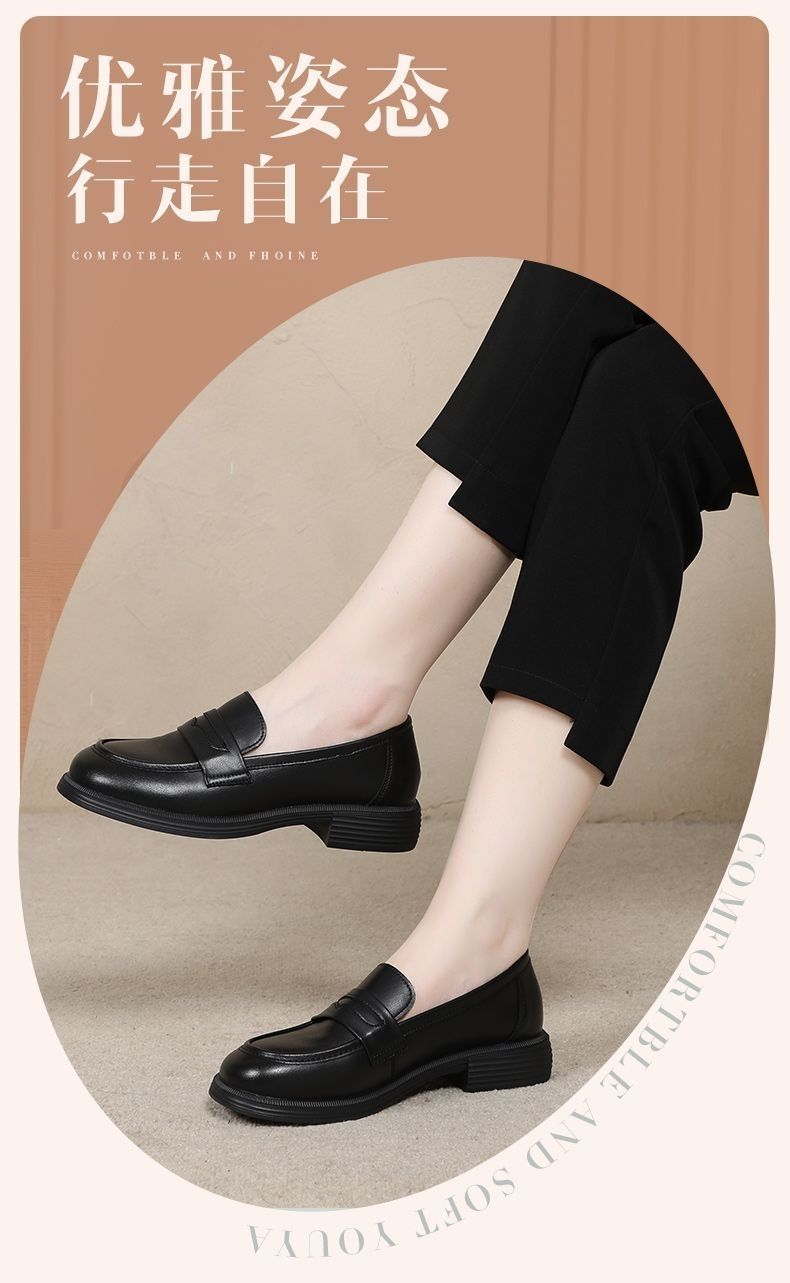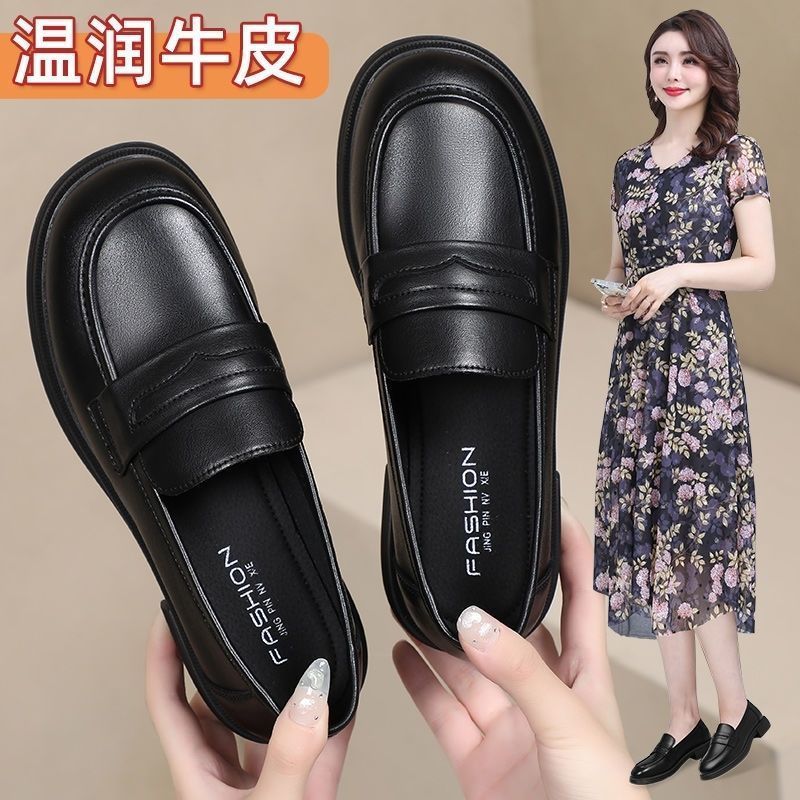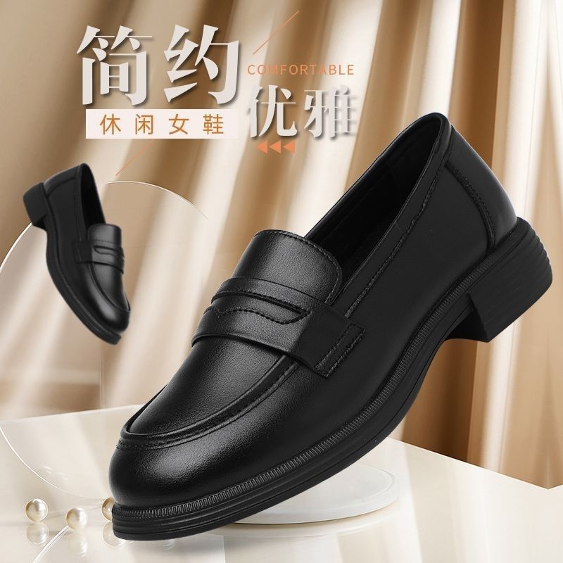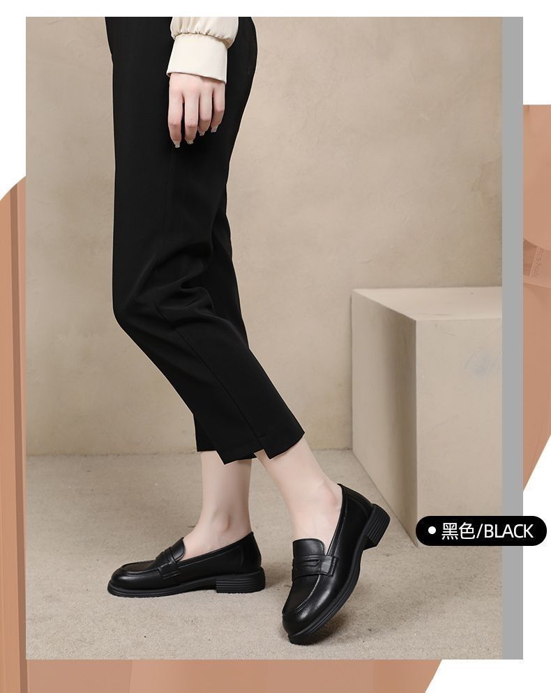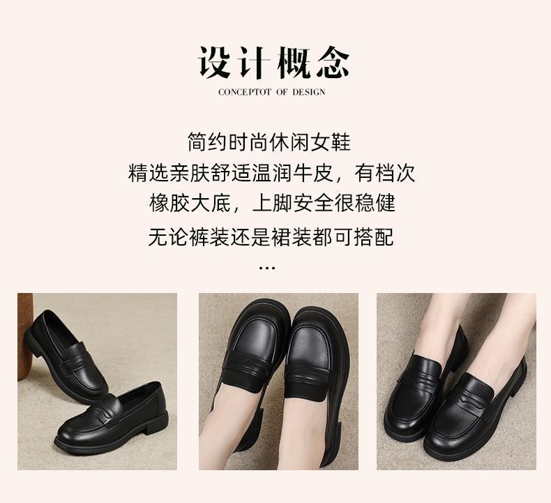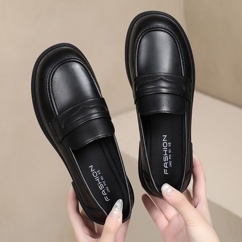 2024春秋新款乐福鞋圆头一脚蹬厚底英伦风小皮鞋女士休闲百搭单鞋