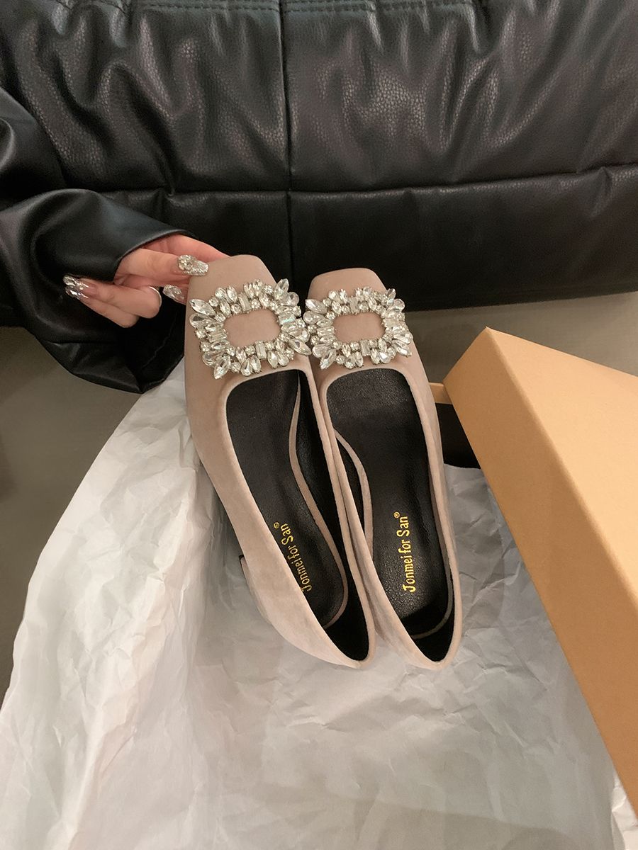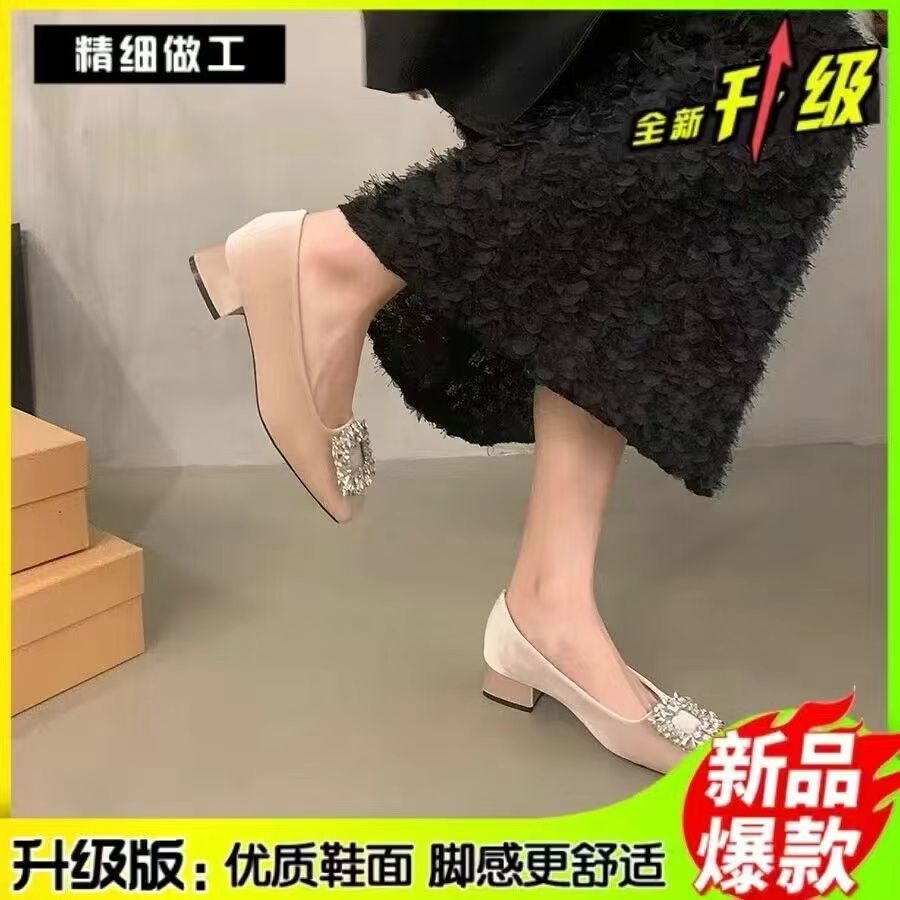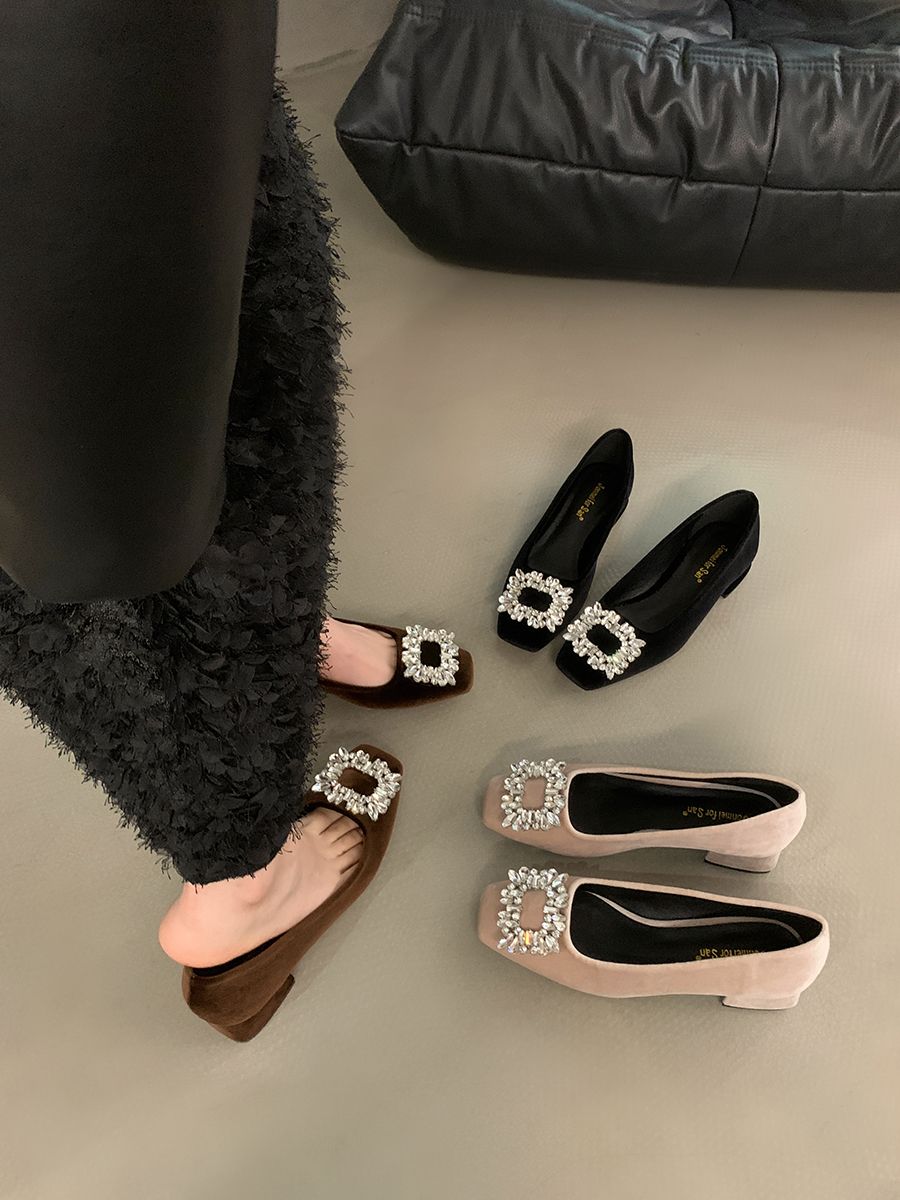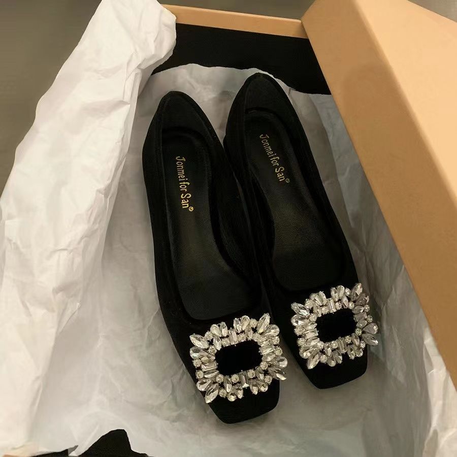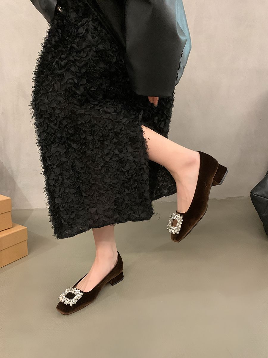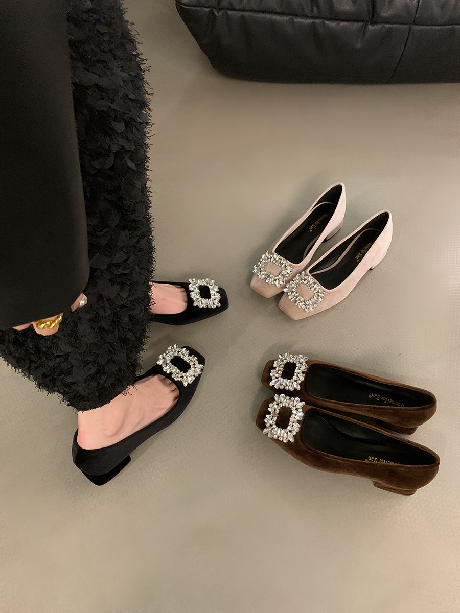 粗跟法式水钻气质单鞋女鞋子2025新款春秋季黑色方头高级感通勤鞋
