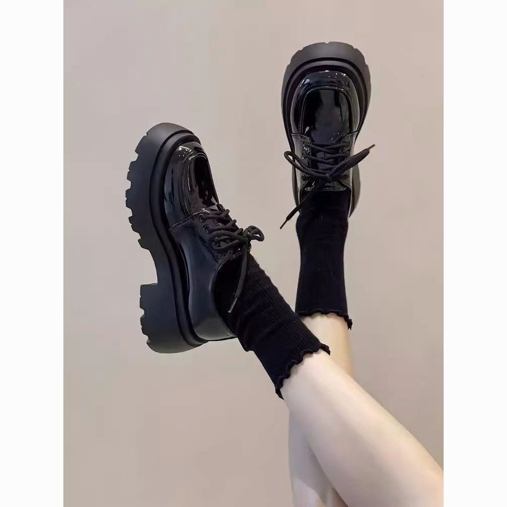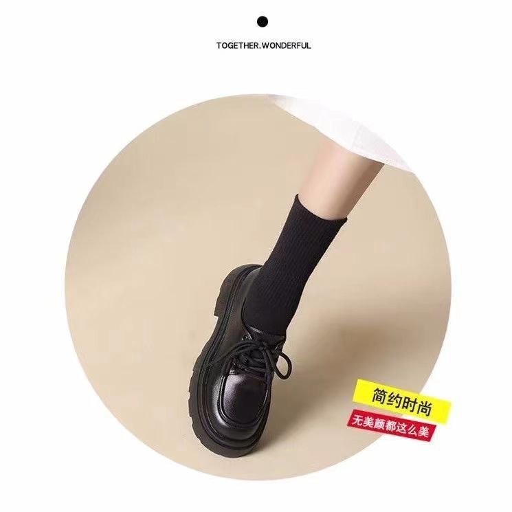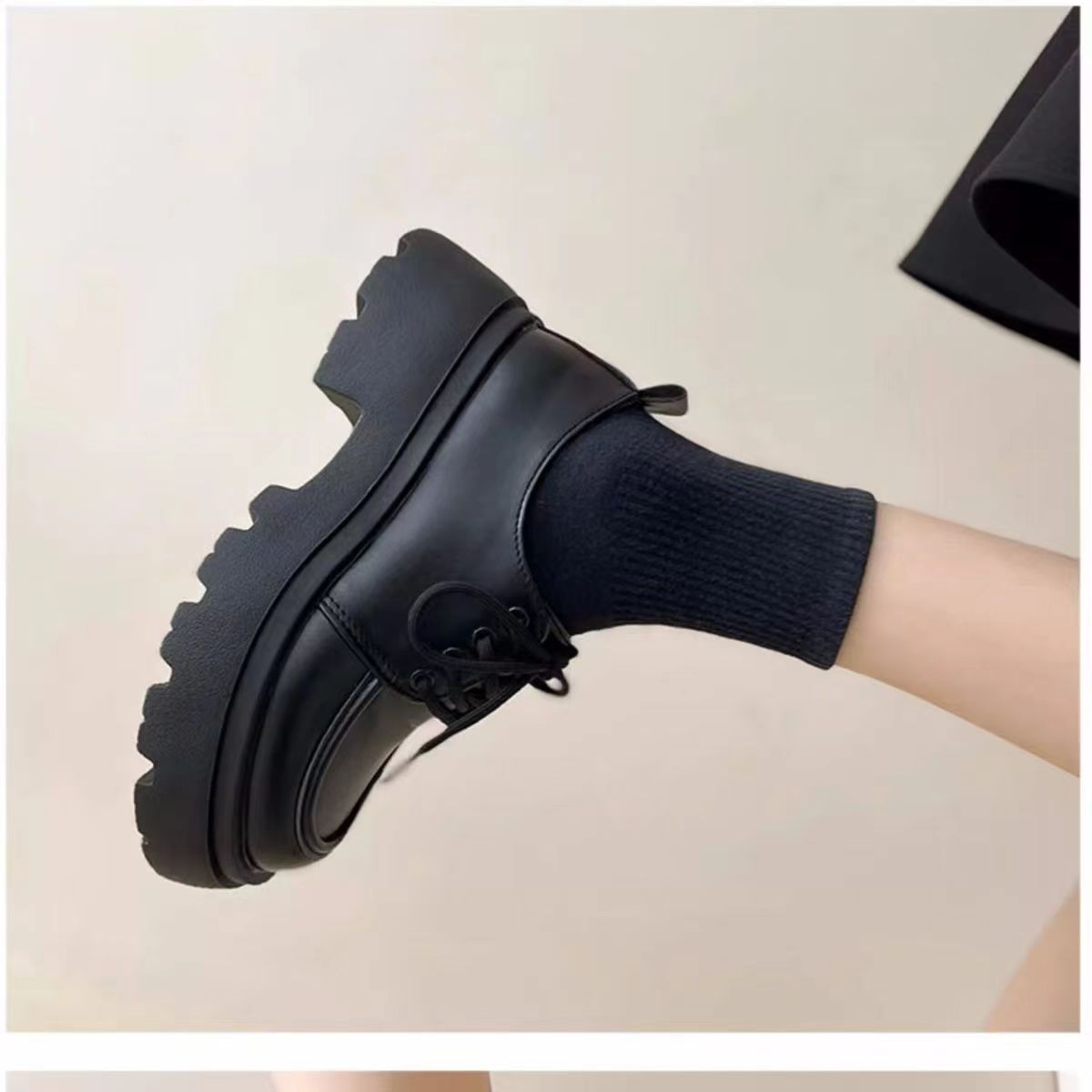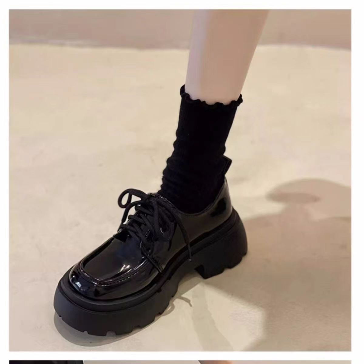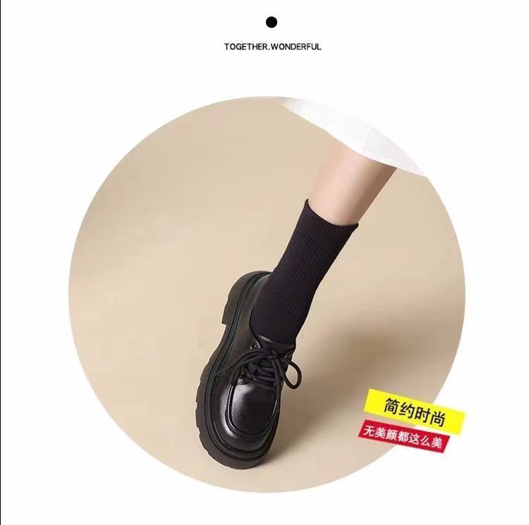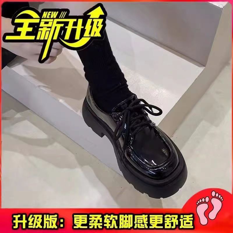 YPXW 英伦风厚底小皮鞋女2023新款秋百搭黑色jk单鞋松糕乐福ins潮