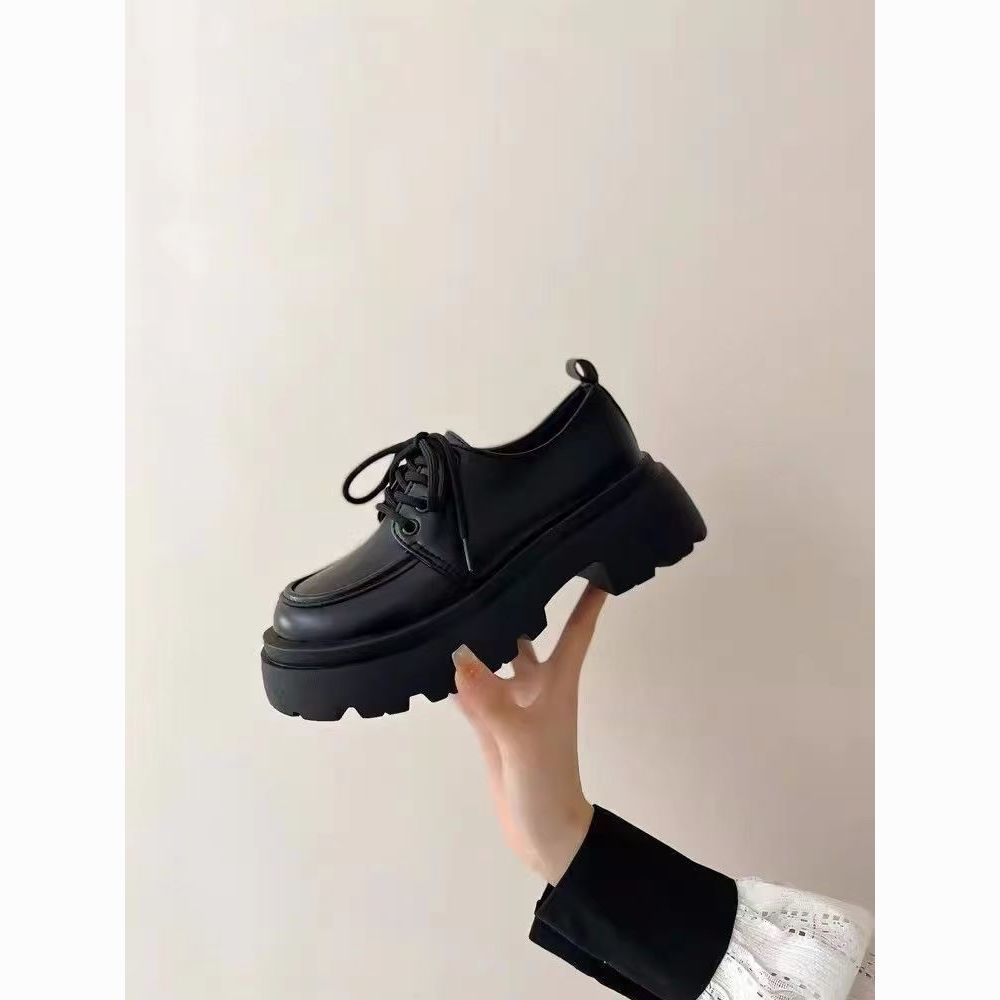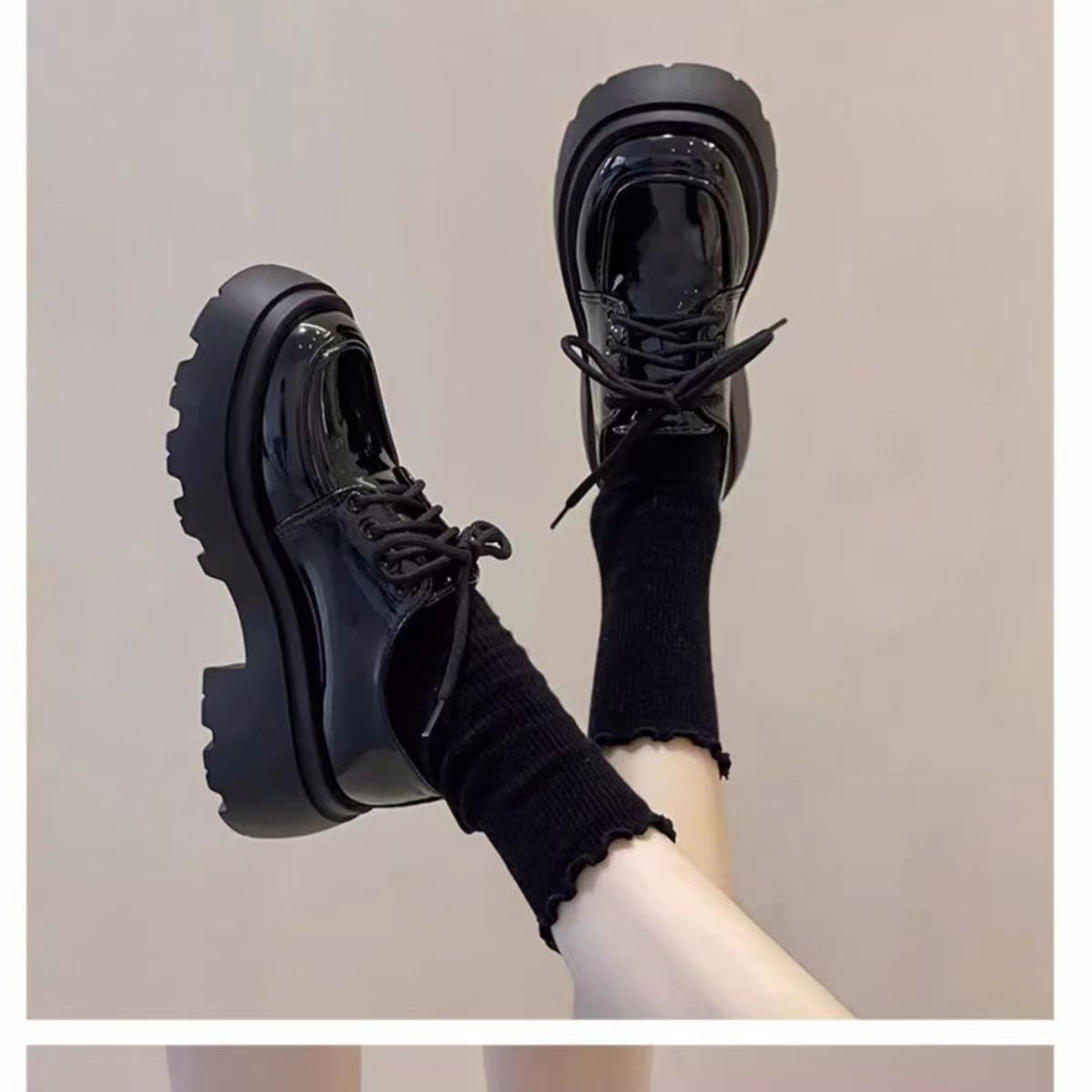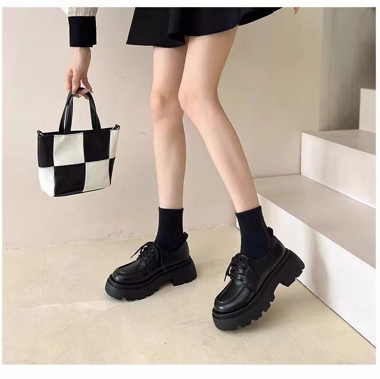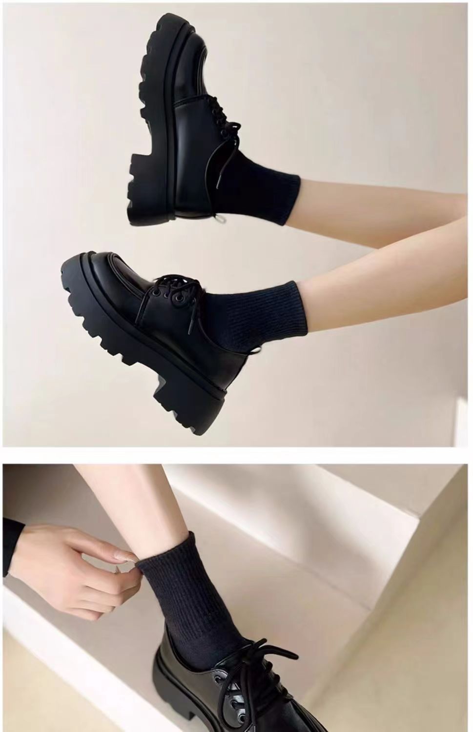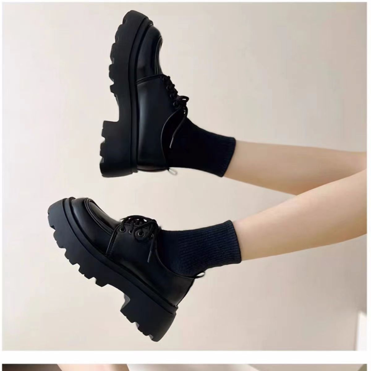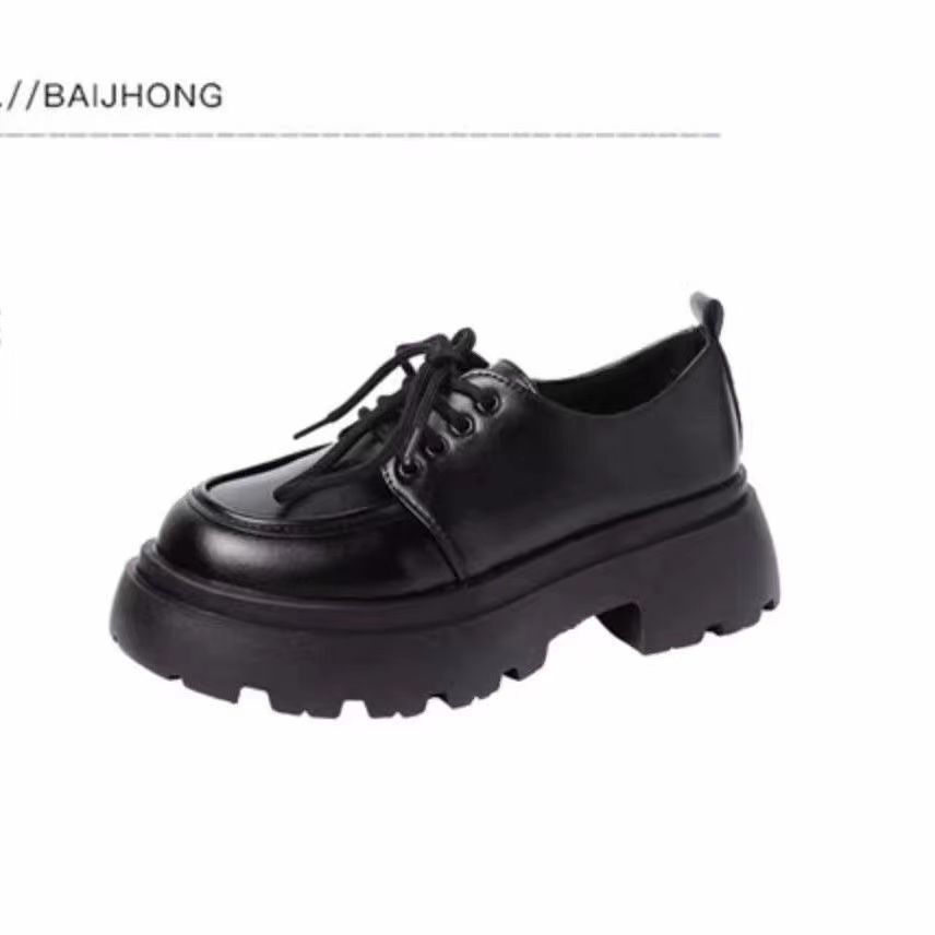 YPXW 英伦风厚底小皮鞋女2023新款秋百搭黑色jk单鞋松糕乐福ins潮