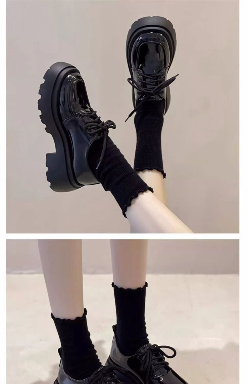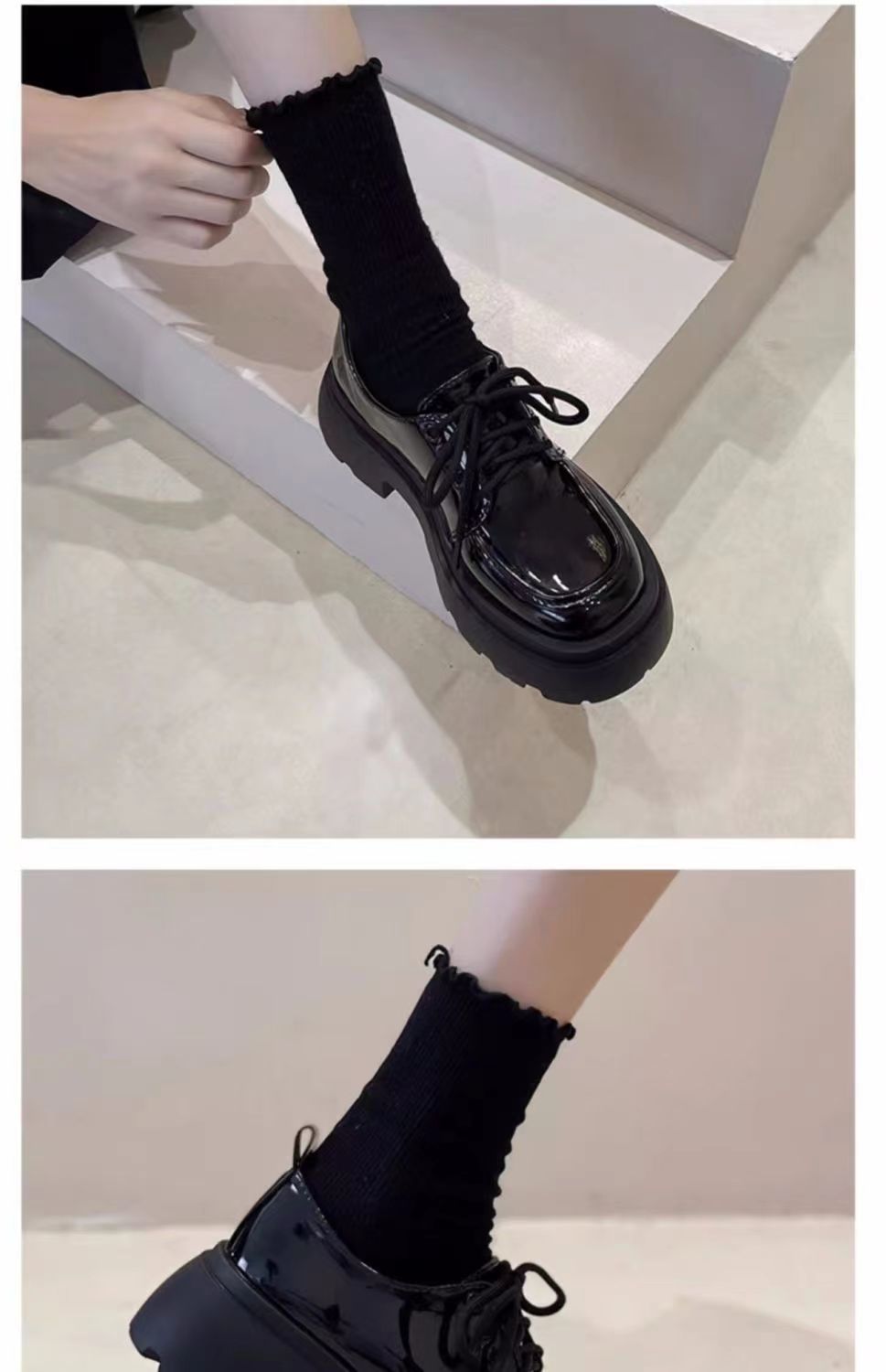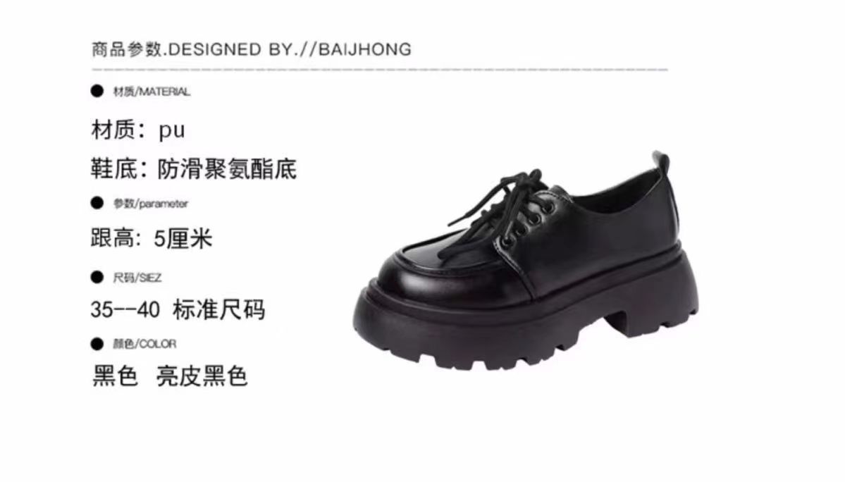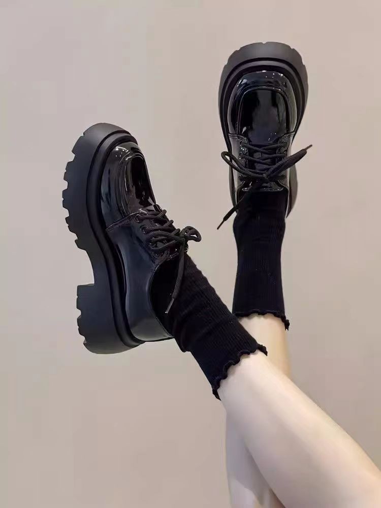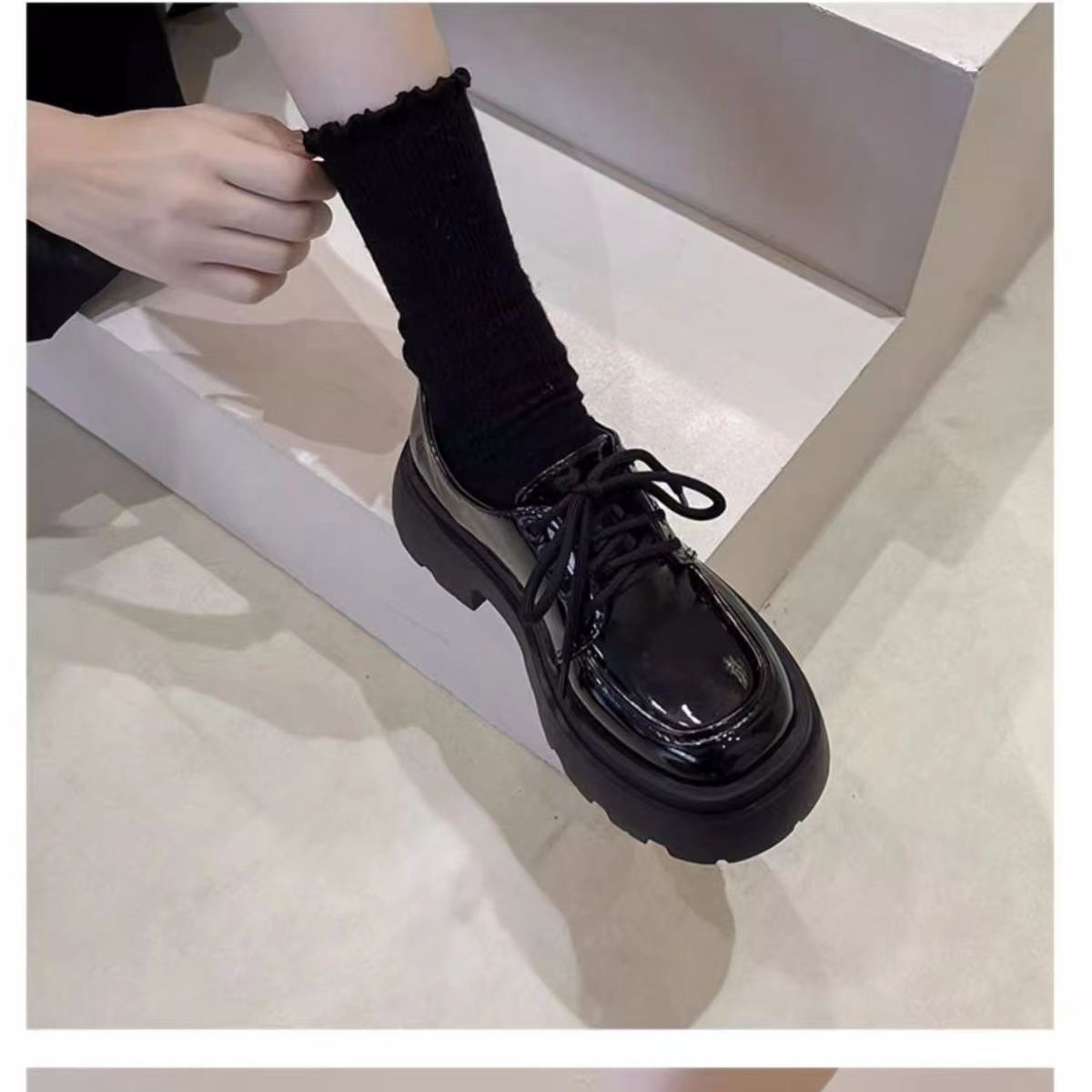YPXW 英伦风厚底小皮鞋女2023新款秋百搭黑色jk单鞋松糕乐福ins潮