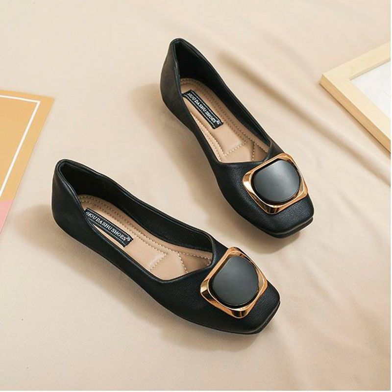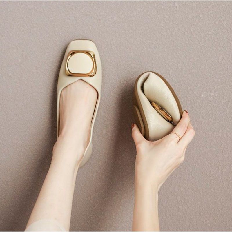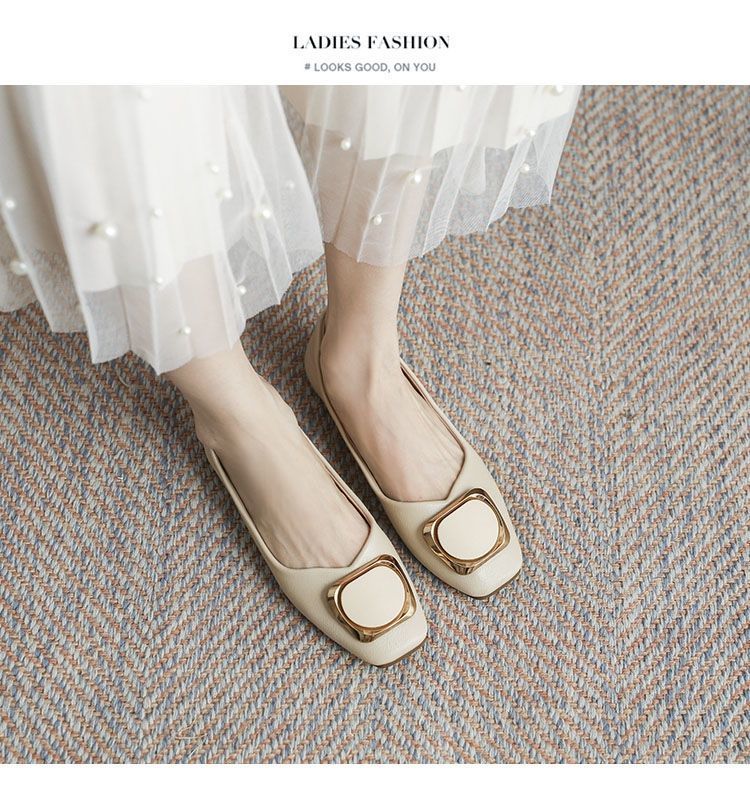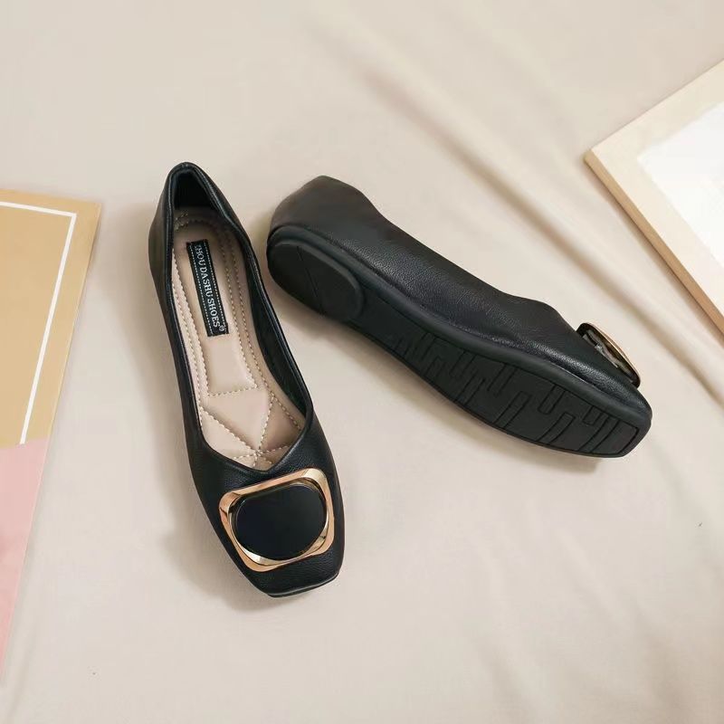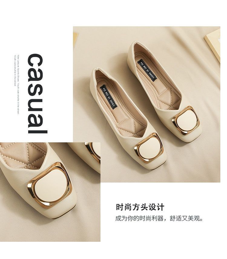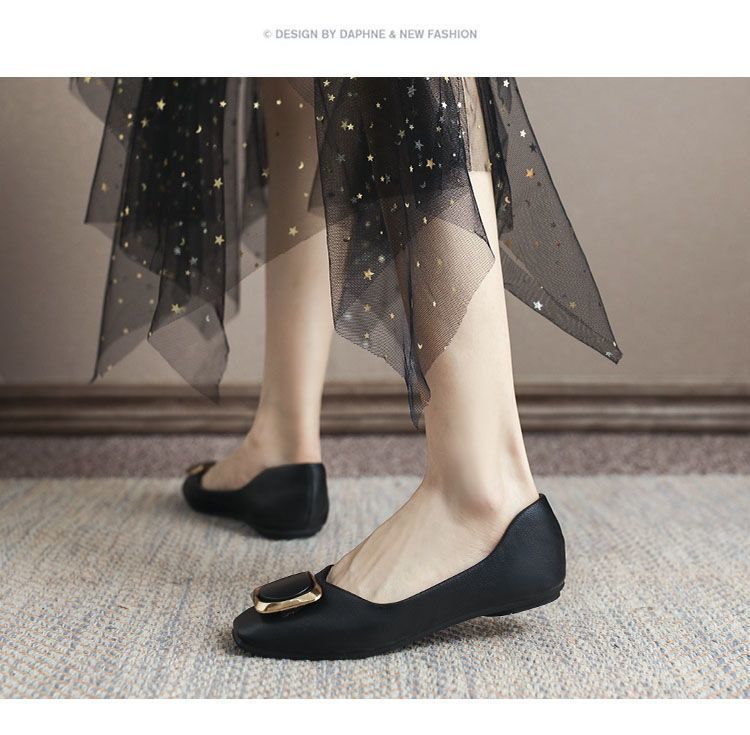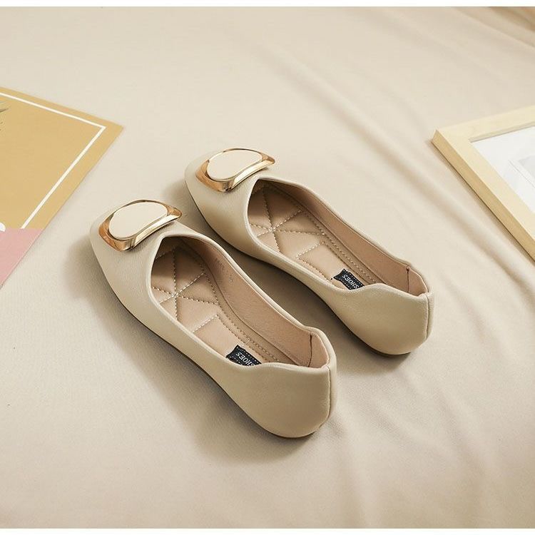 2024新款韩版网红单鞋女春夏浅口仙女方头软底平底瓢鞋豆豆单鞋女